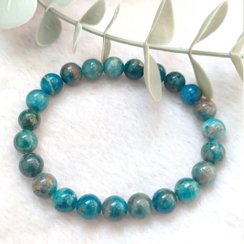 Blue Apatite Round Beaded Bracelet 8MM Stretch Bracelet