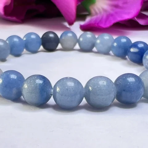 Blue Angelite Stone Round Beaded Bracelet 8MM Help to Relieve Tension, Anger and Stress Stretch Bracelet