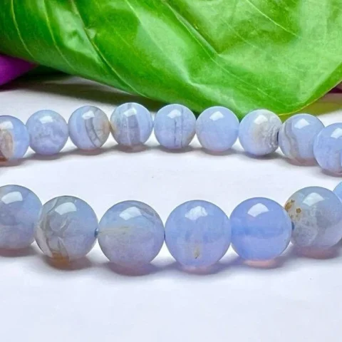 Blue lace Agate Stone Round Bead Bracelet 8mm