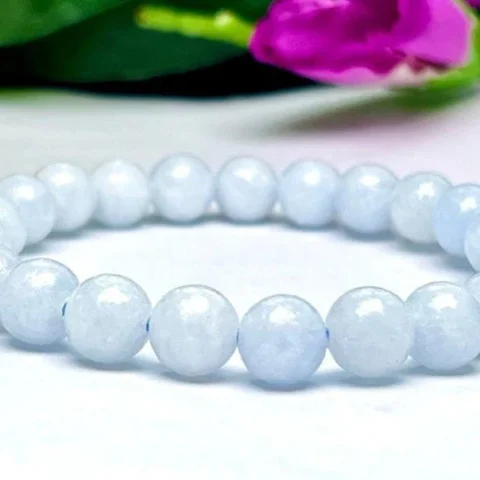Blue Calcite Stone Round Beaded Bracelet 8MM Stretch Bracelet