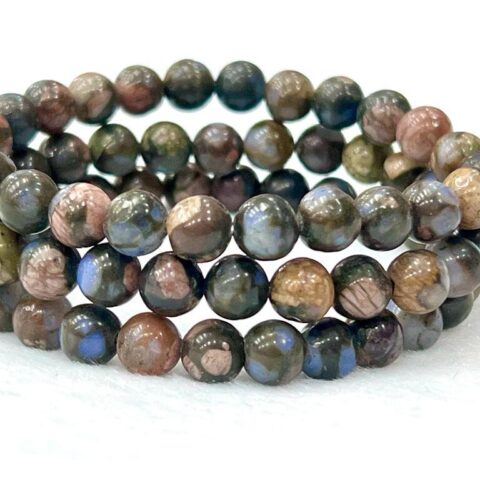 Blue Liberite Quesera Stone Round Beaded Bracelet 10 MM Stretch Bracelet