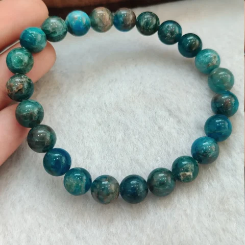 Blue Apatite Round Beaded Bracelet 8MM Stretch Bracelet
