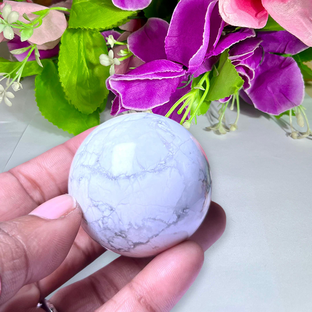 4 CM Howlite Stone Sphere Ball Orb With Wooden Stand