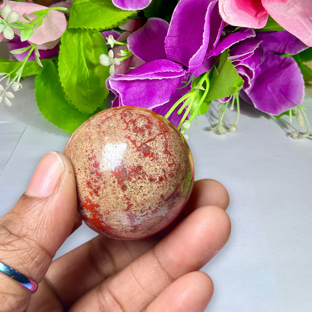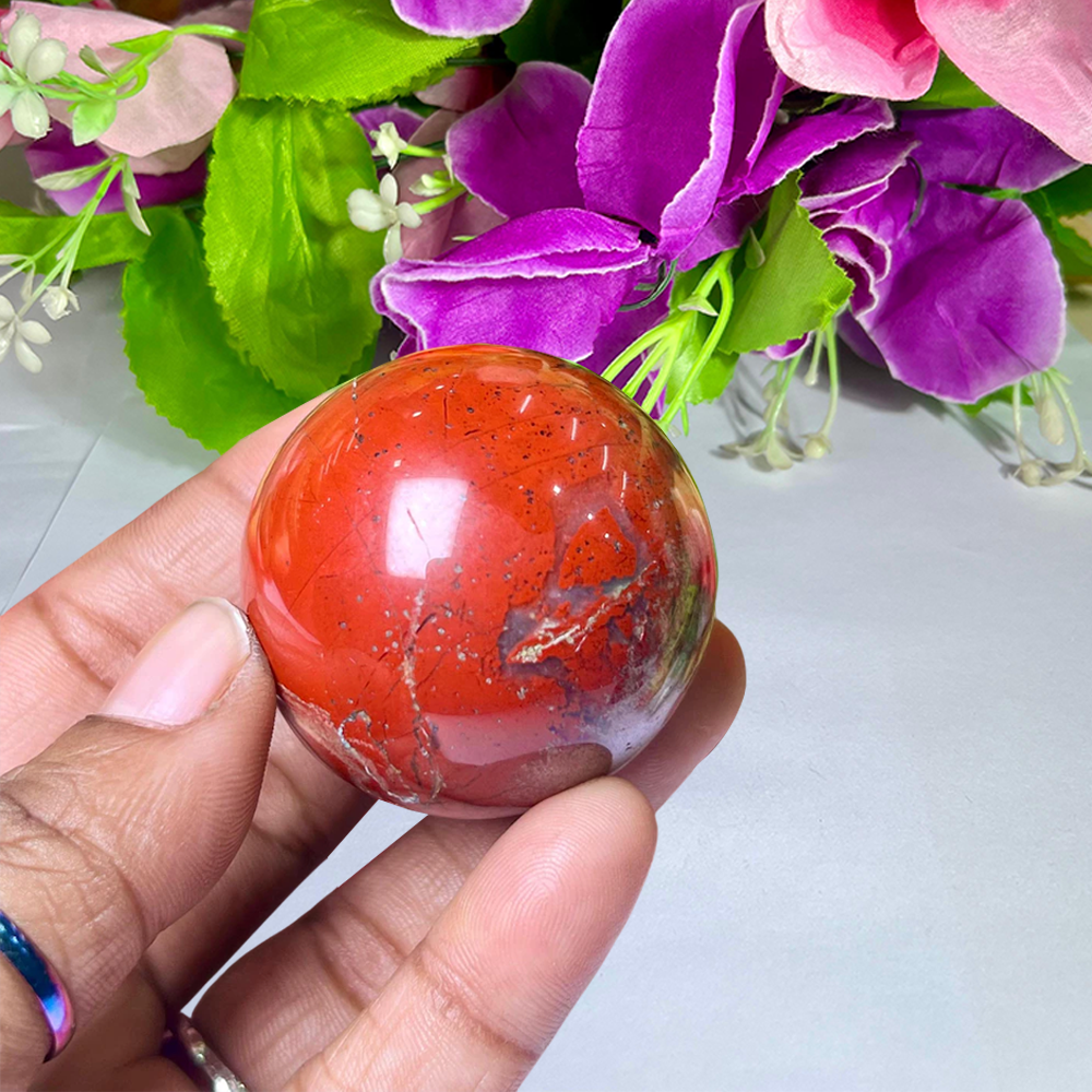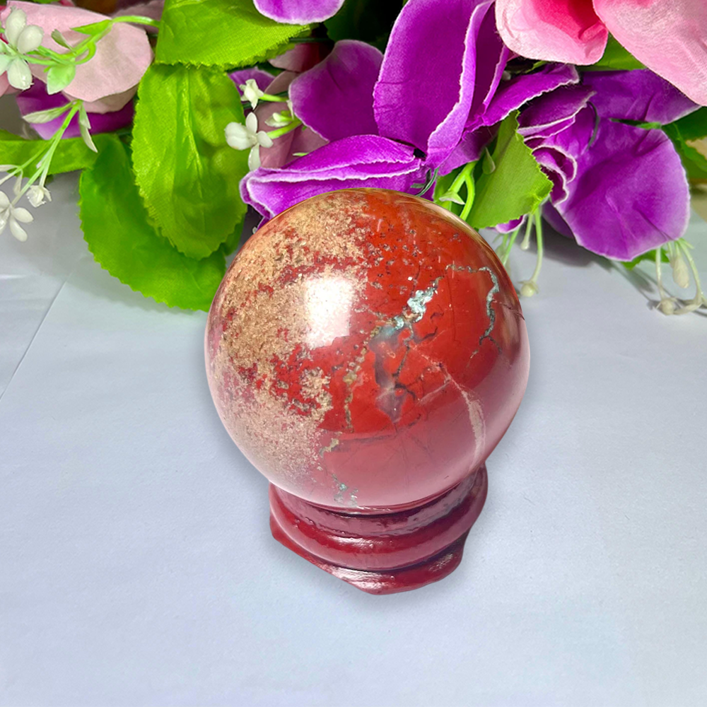 4 CM Red Jasper Stone Sphere Ball Orb With Wooden Stand