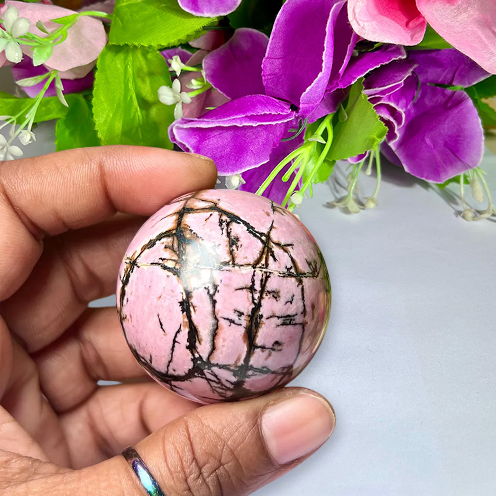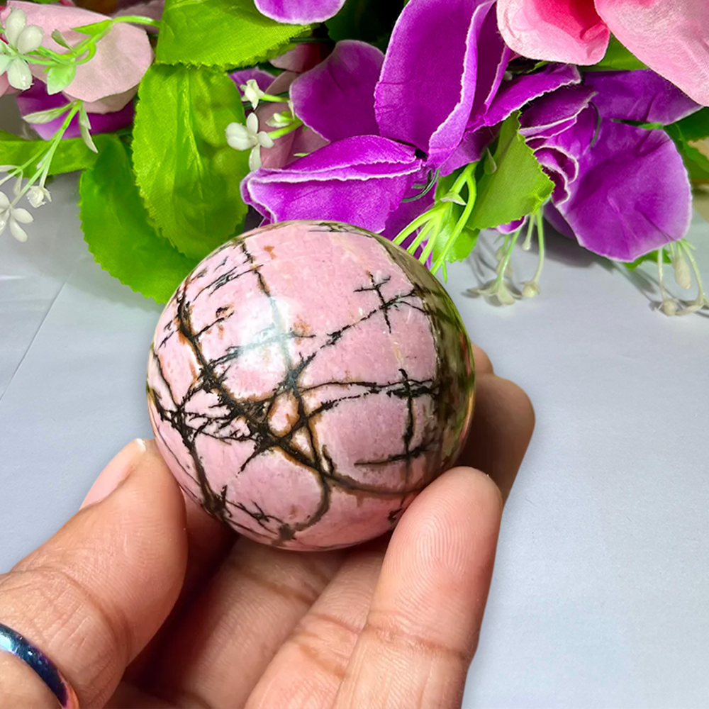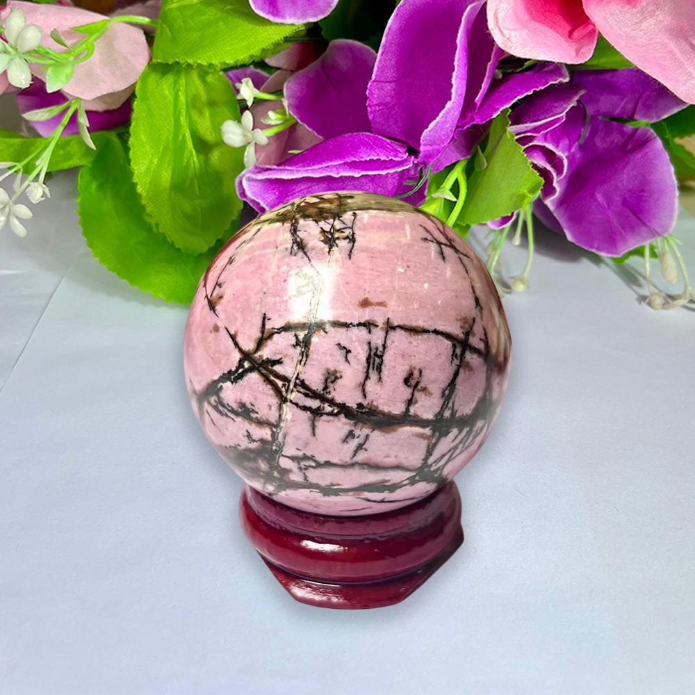4 CM Rhodonite Stone Sphere Ball Orb With Wooden Stand