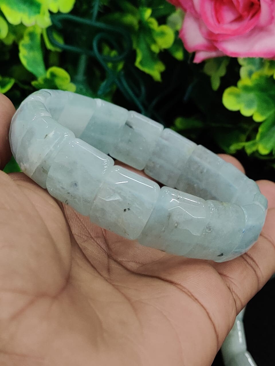 Aquamarine Stone rectangle Beaded Bracelet 15 MM