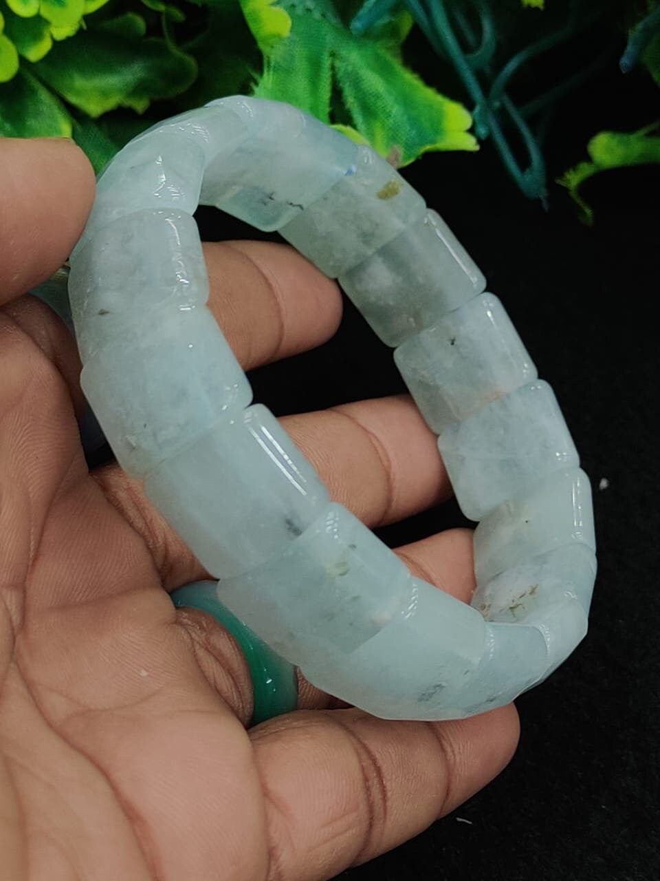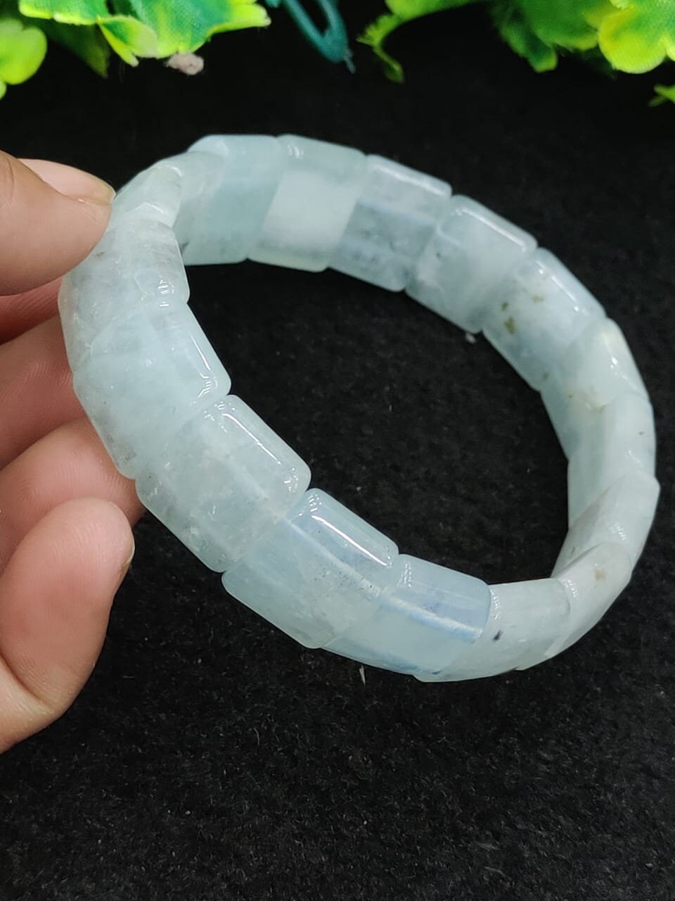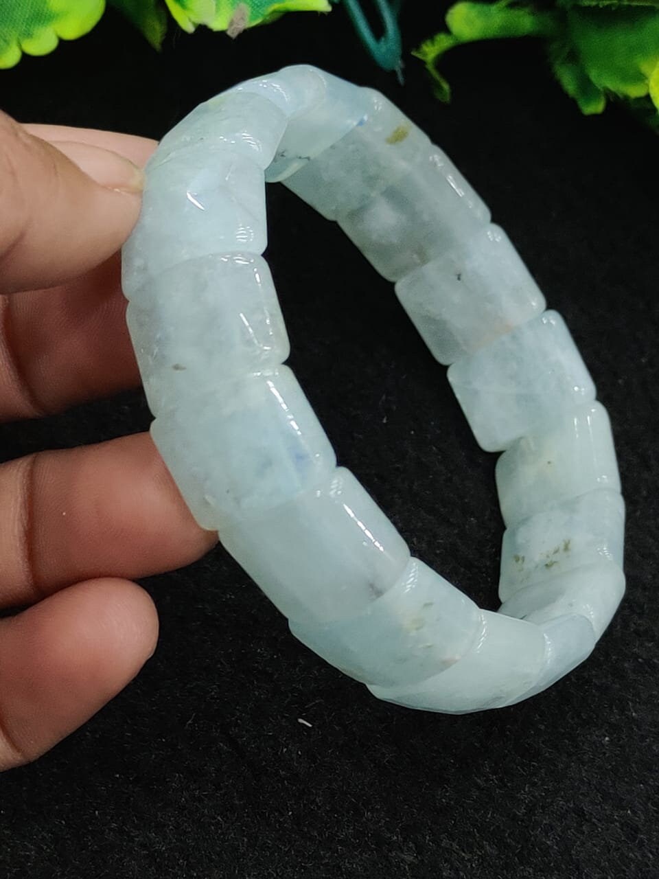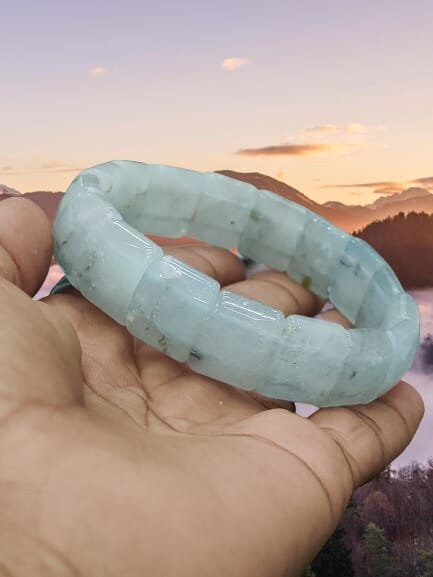 Aquamarine Stone rectangle Beaded Bracelet 15 MM Bracelet For Anxiety & Stress Relief Stretch Bracelet
