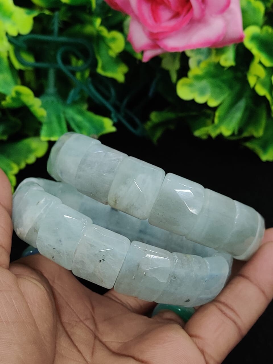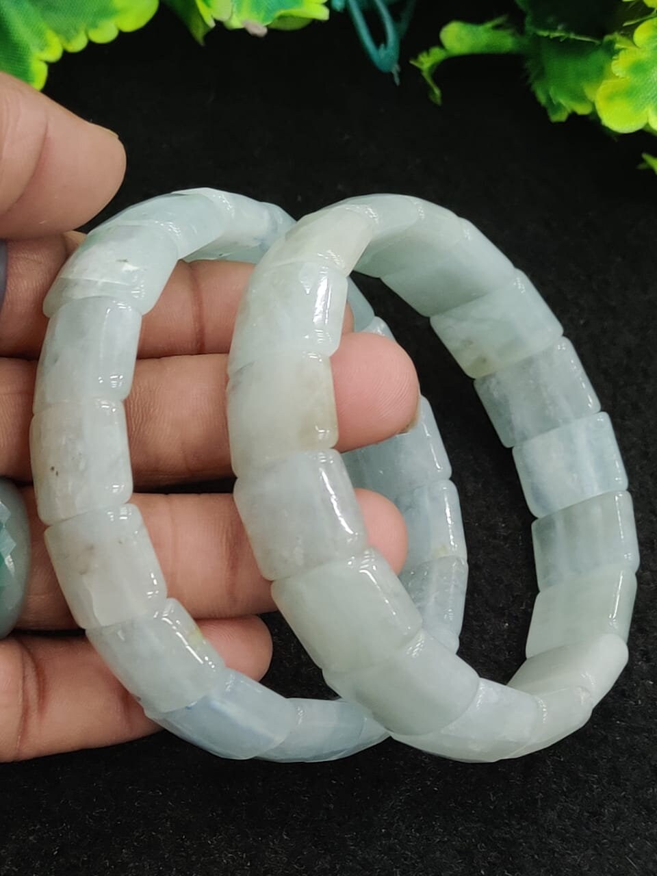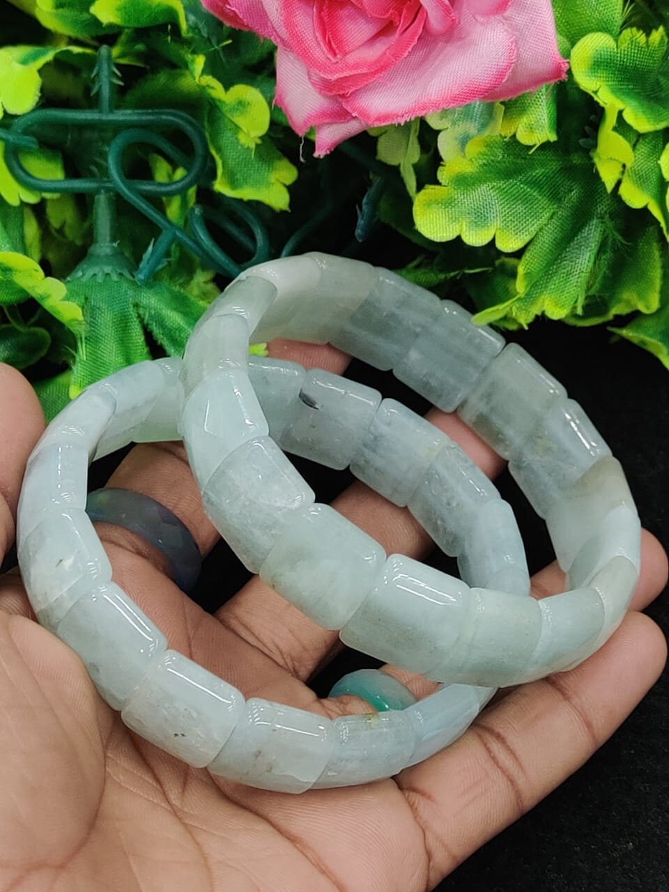 Aquamarine Stone rectangle Beaded Bracelet 15 MM Bracelet For Anxiety & Stress Relief Stretch Bracelet