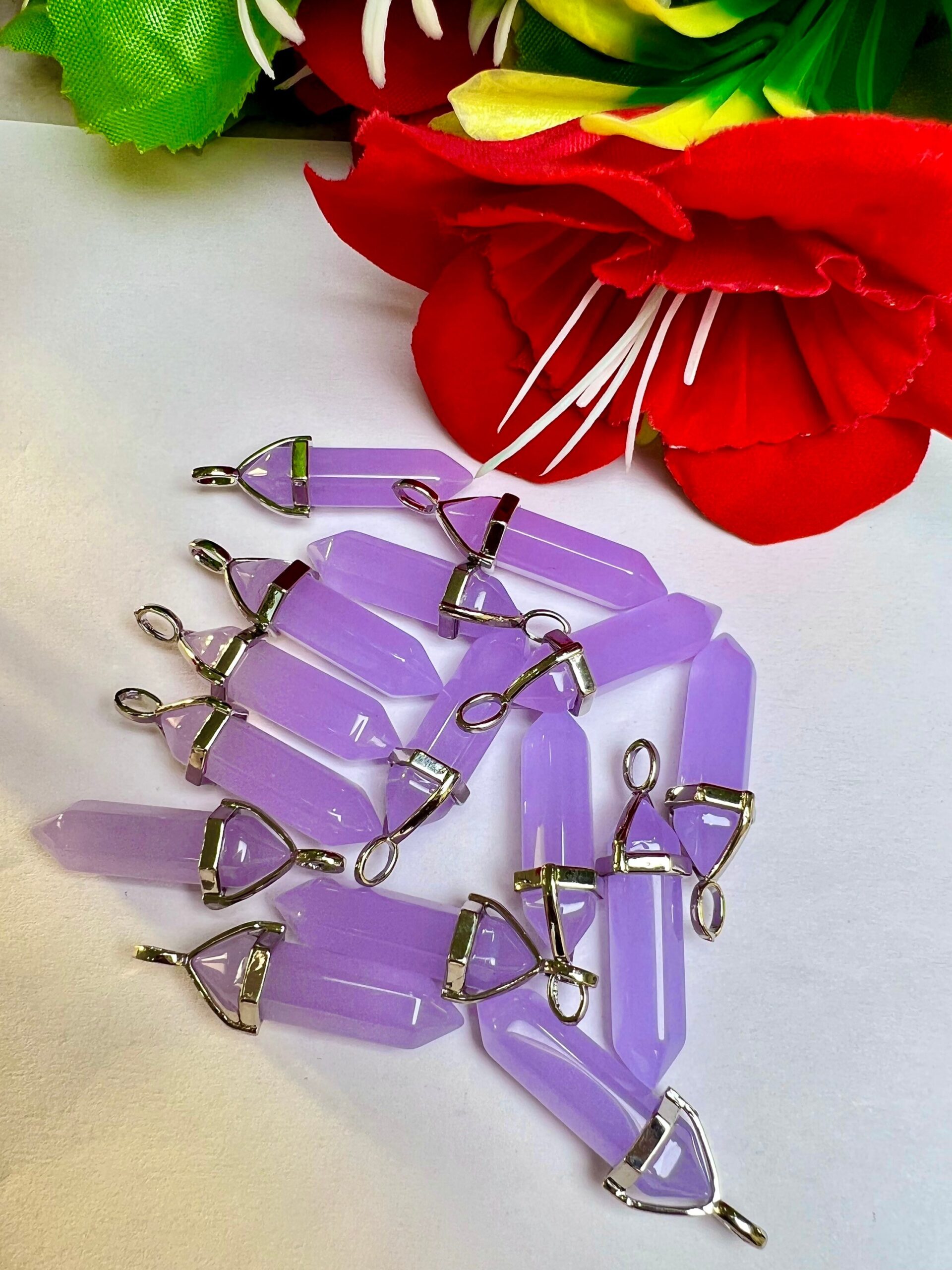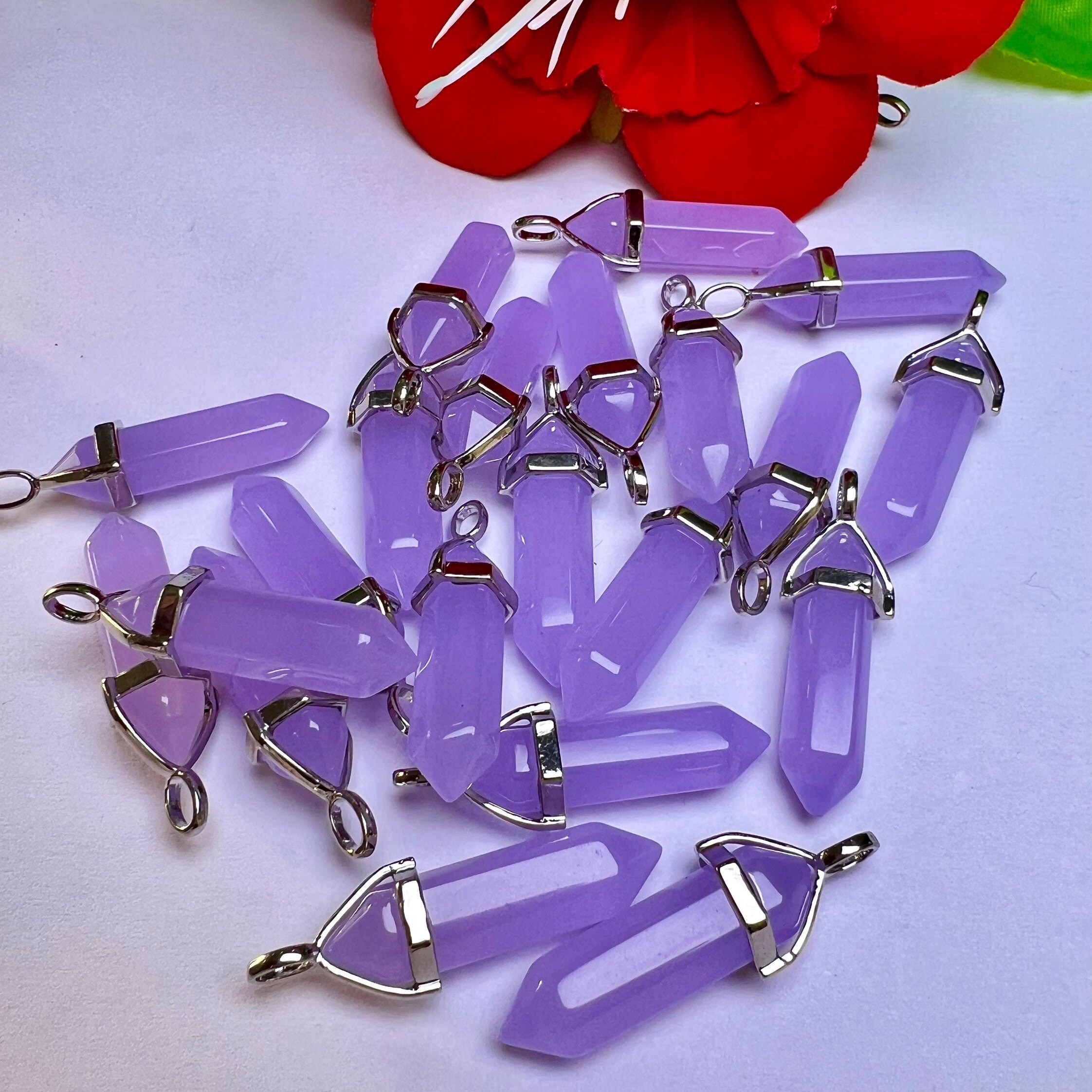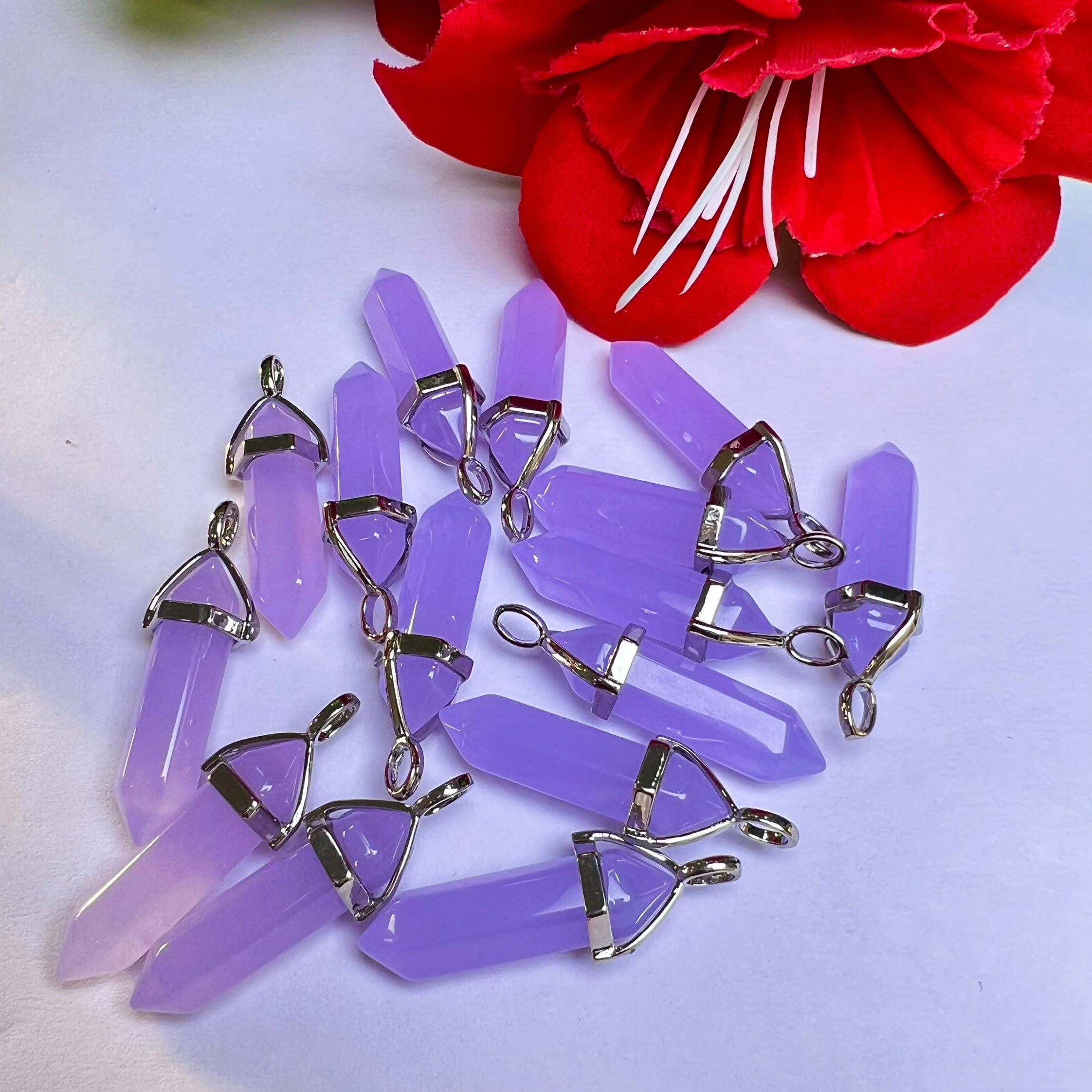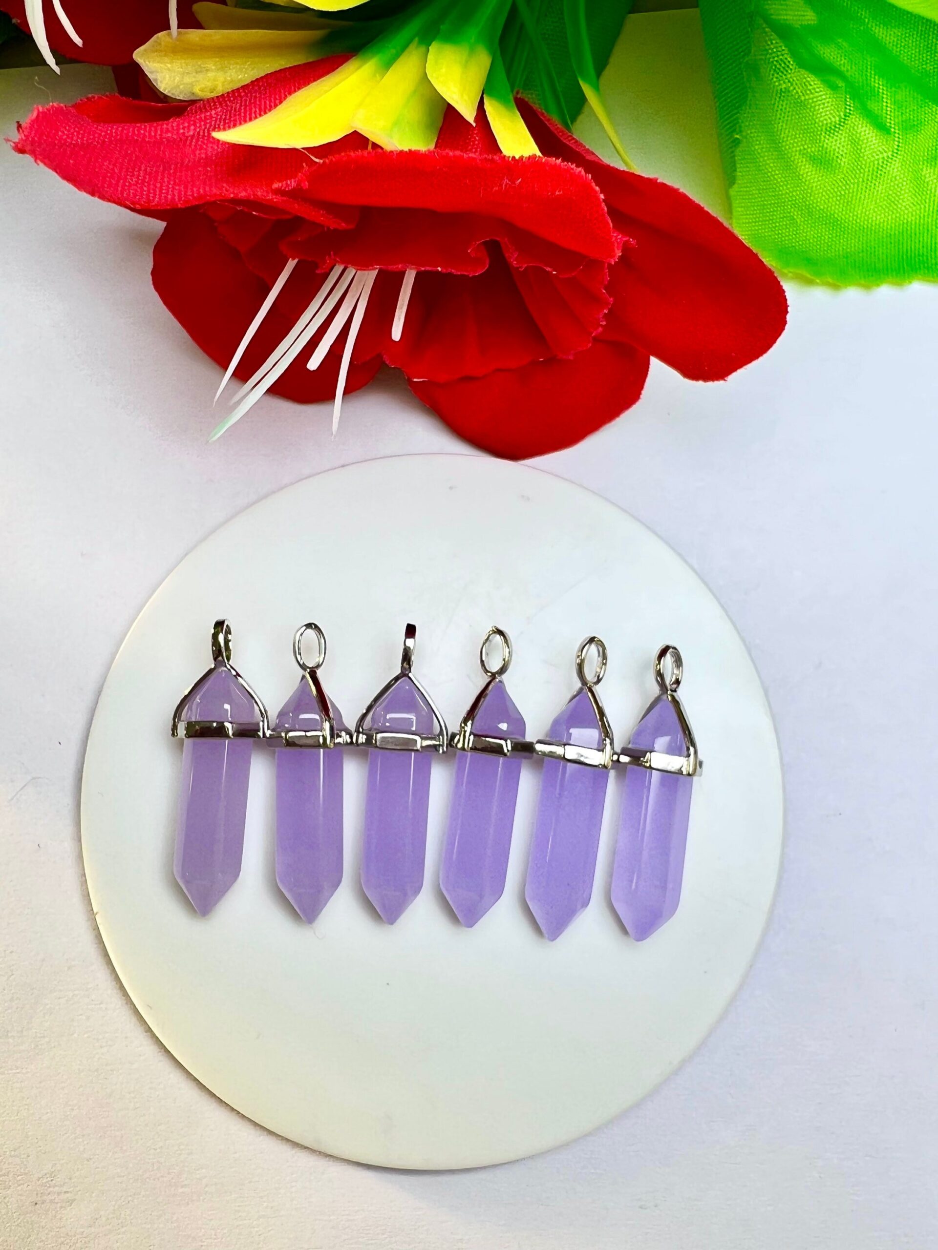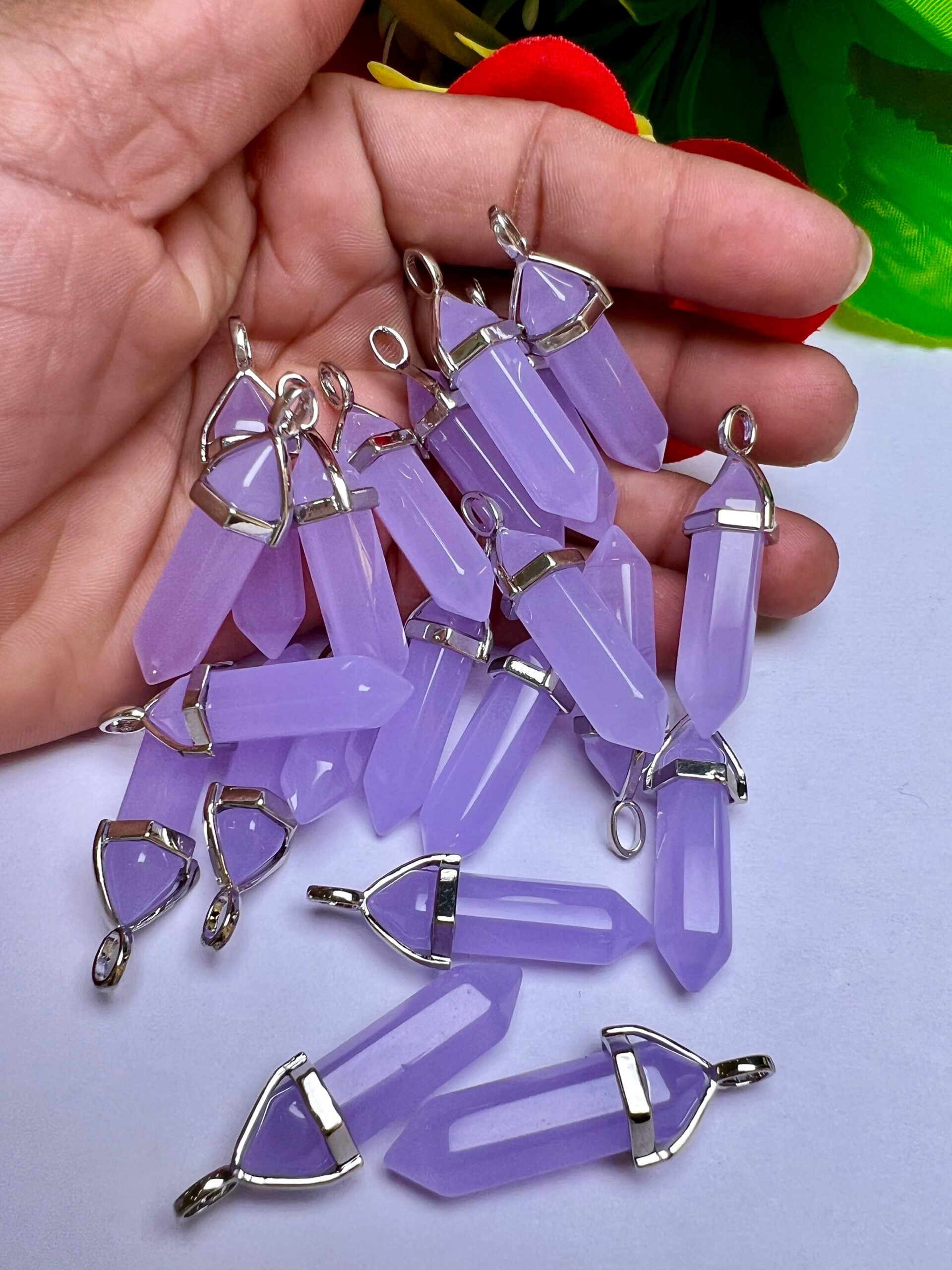 Blue Chalcedony Stone Healing Double Terminated Point Pendant With Silver Plated Bail Natural stone Pencil Point Pendant