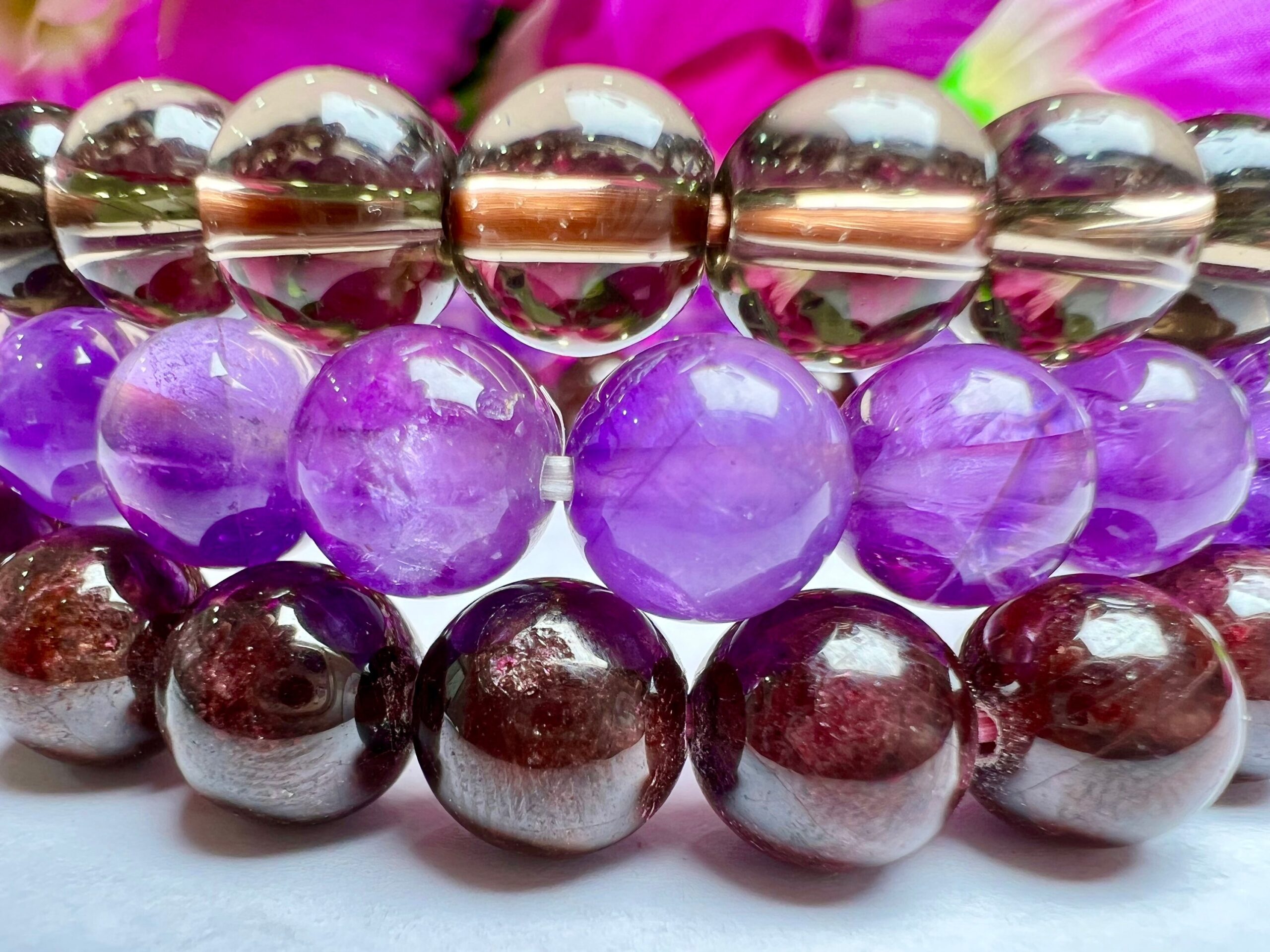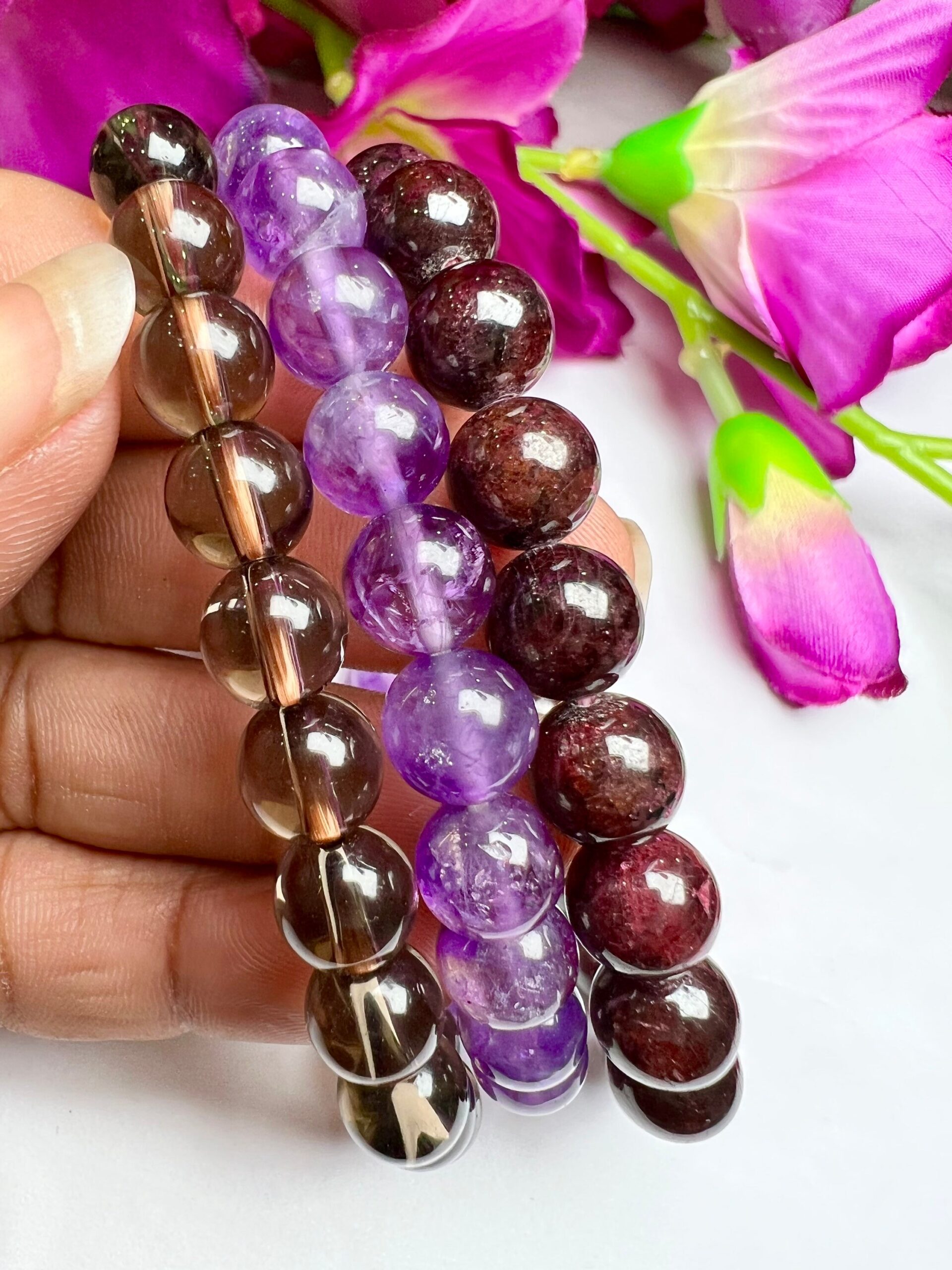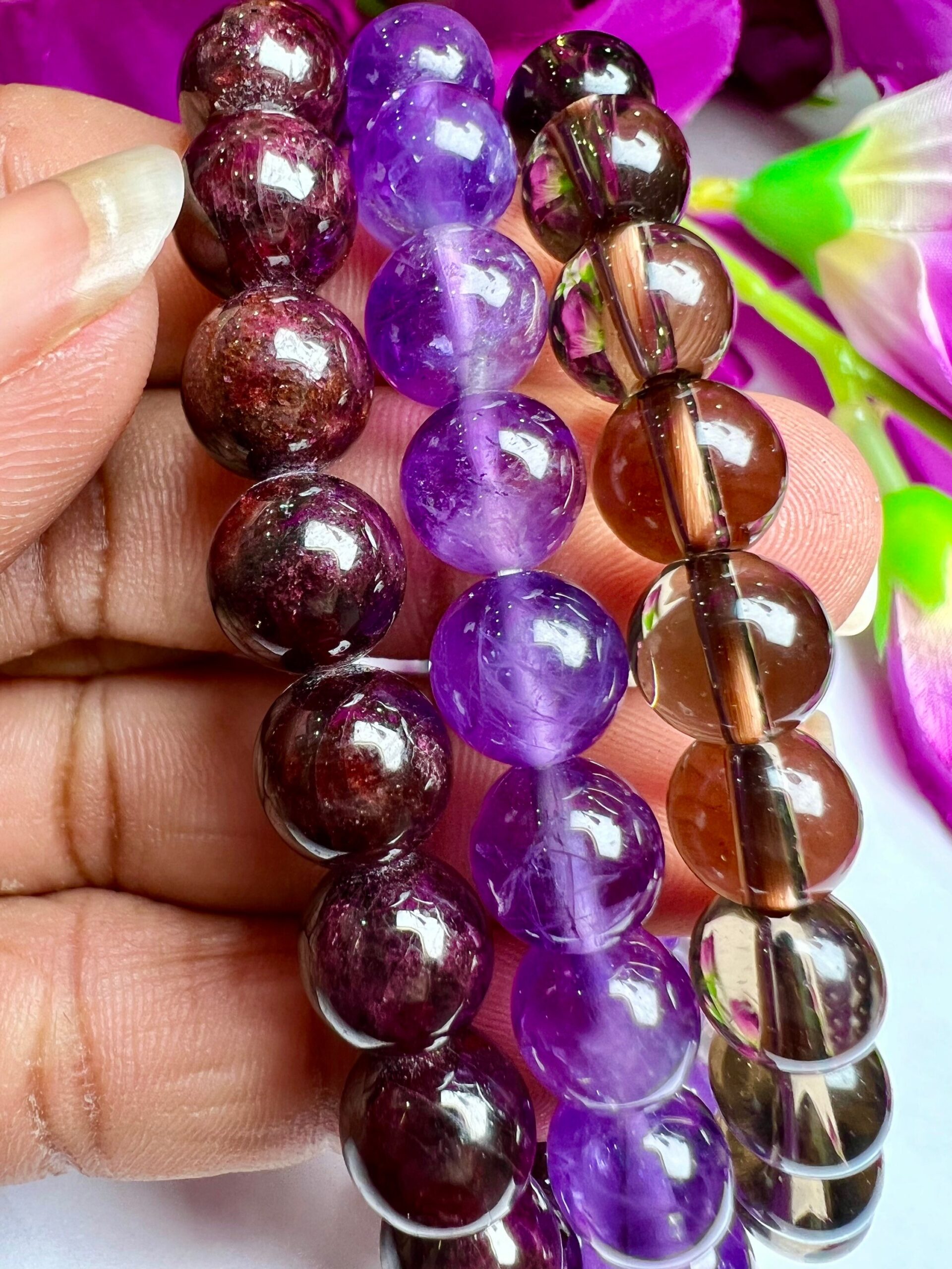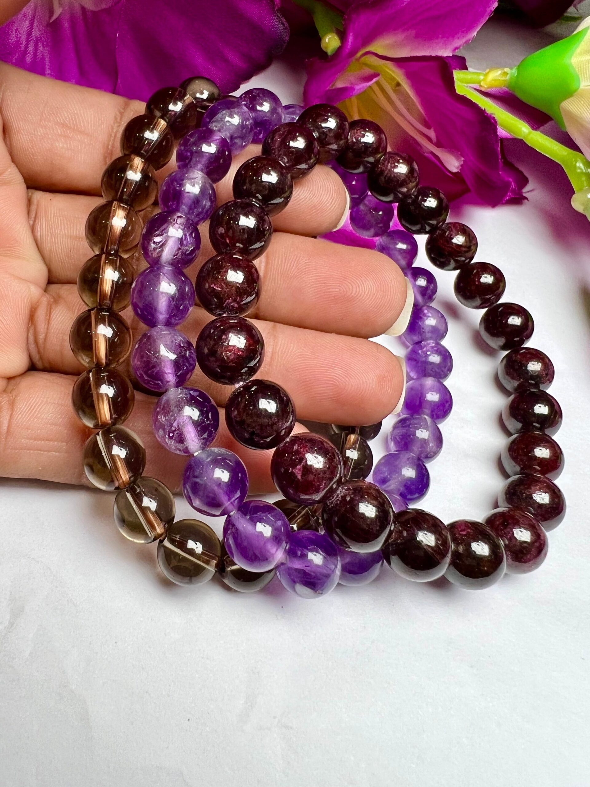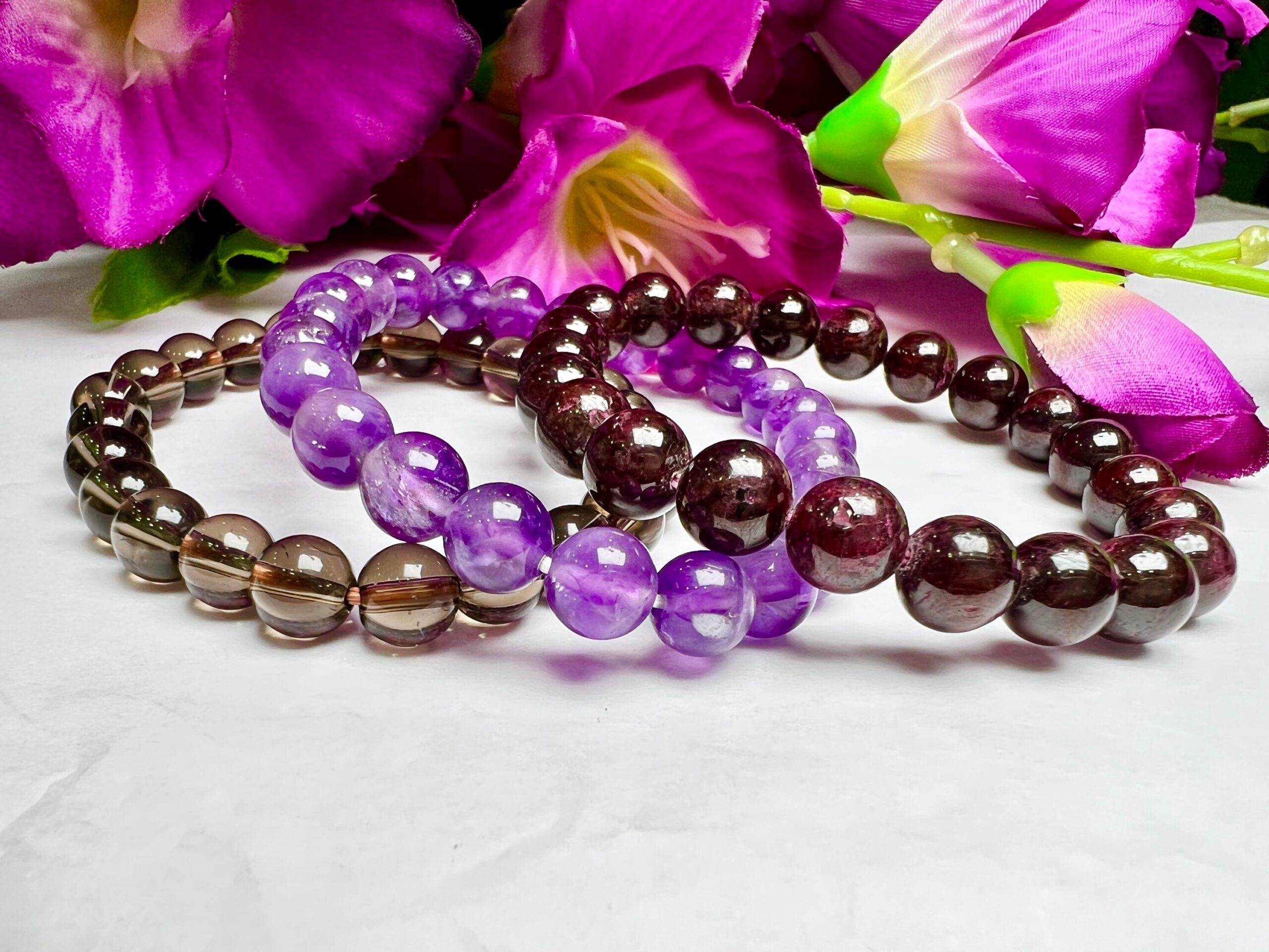 CAPRICORN Bracelet Amethyst , Smoky Quartz , Garnet Pack Zodiac Horoscope Astrology December January Birthday Set 7.5 inch 8mm