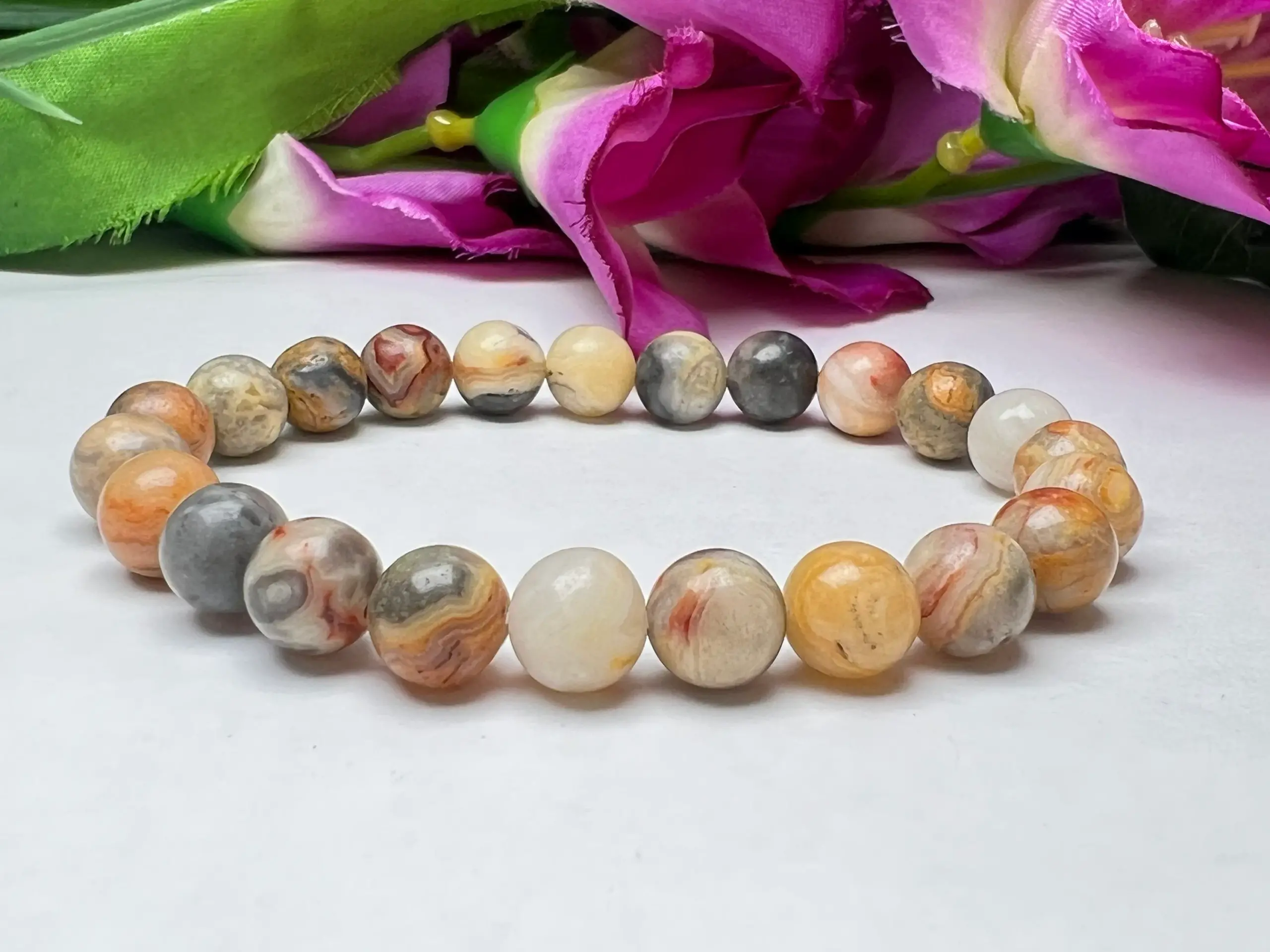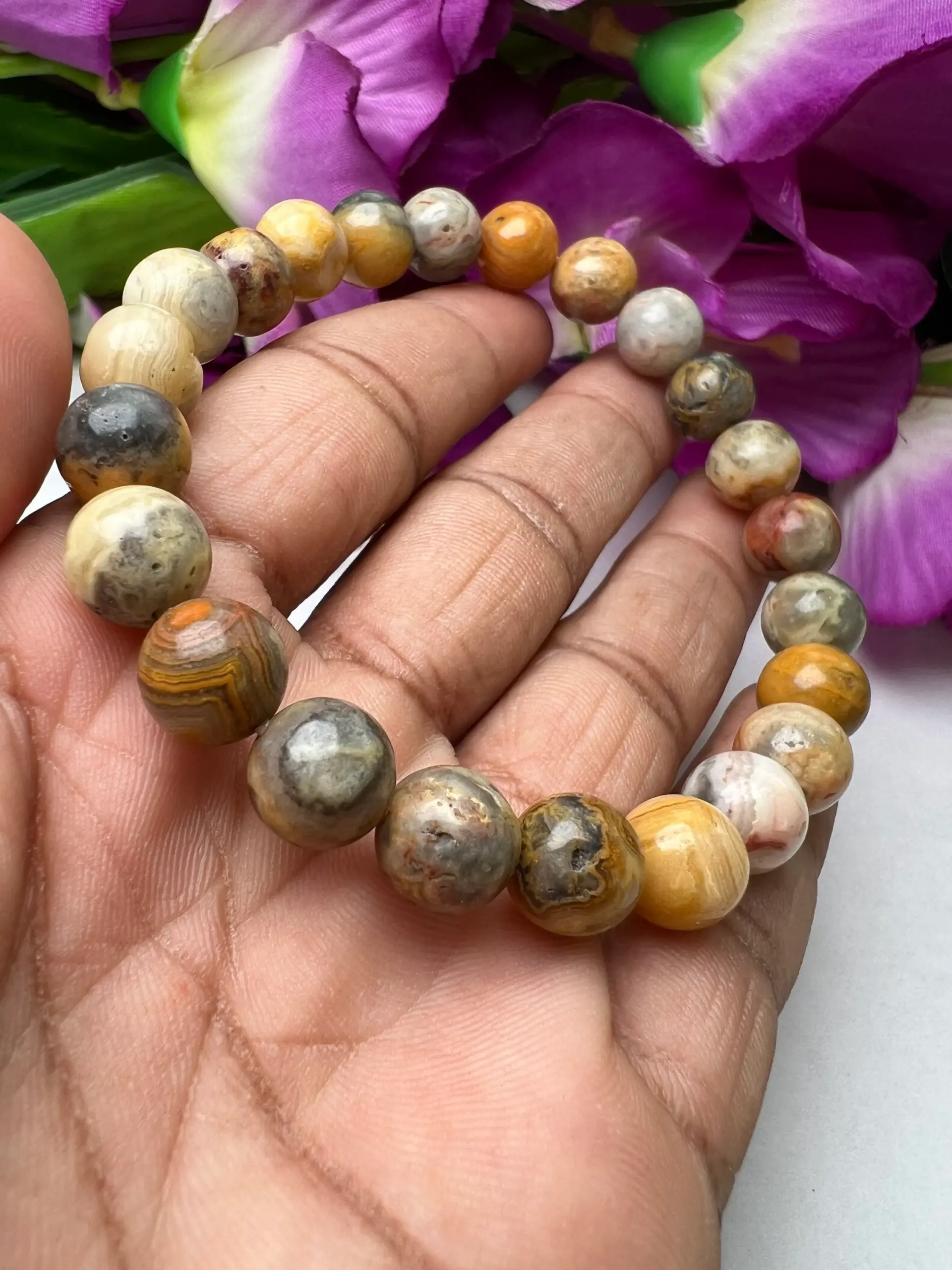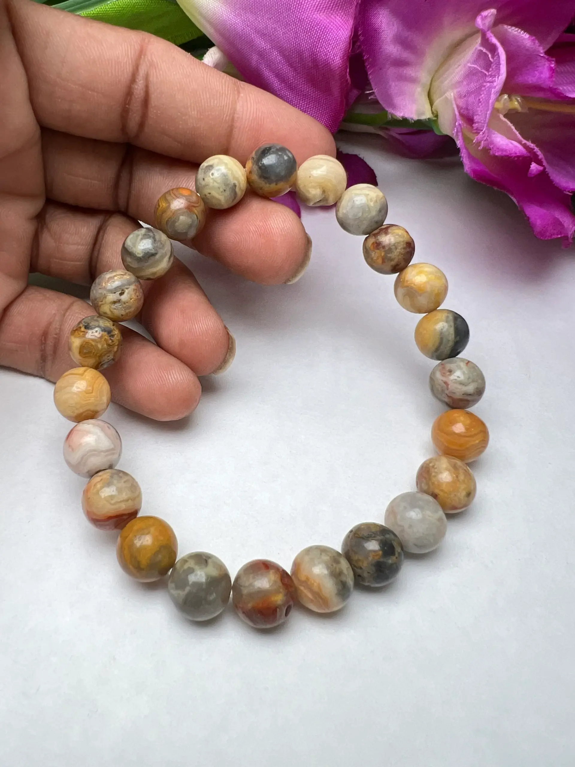 Crazy lace Agate Stone Round Beaded Bracelet 8 MM Stretch Bracelet