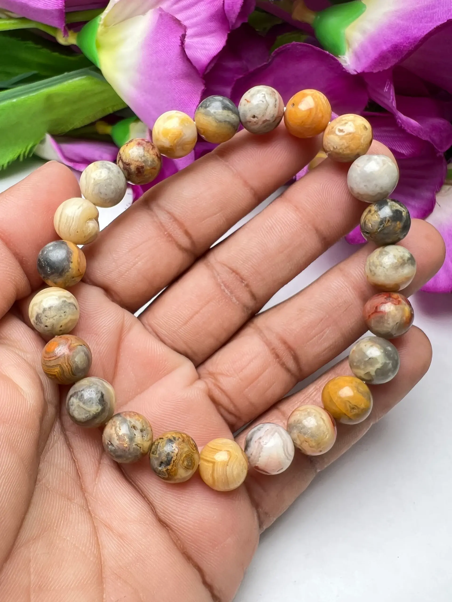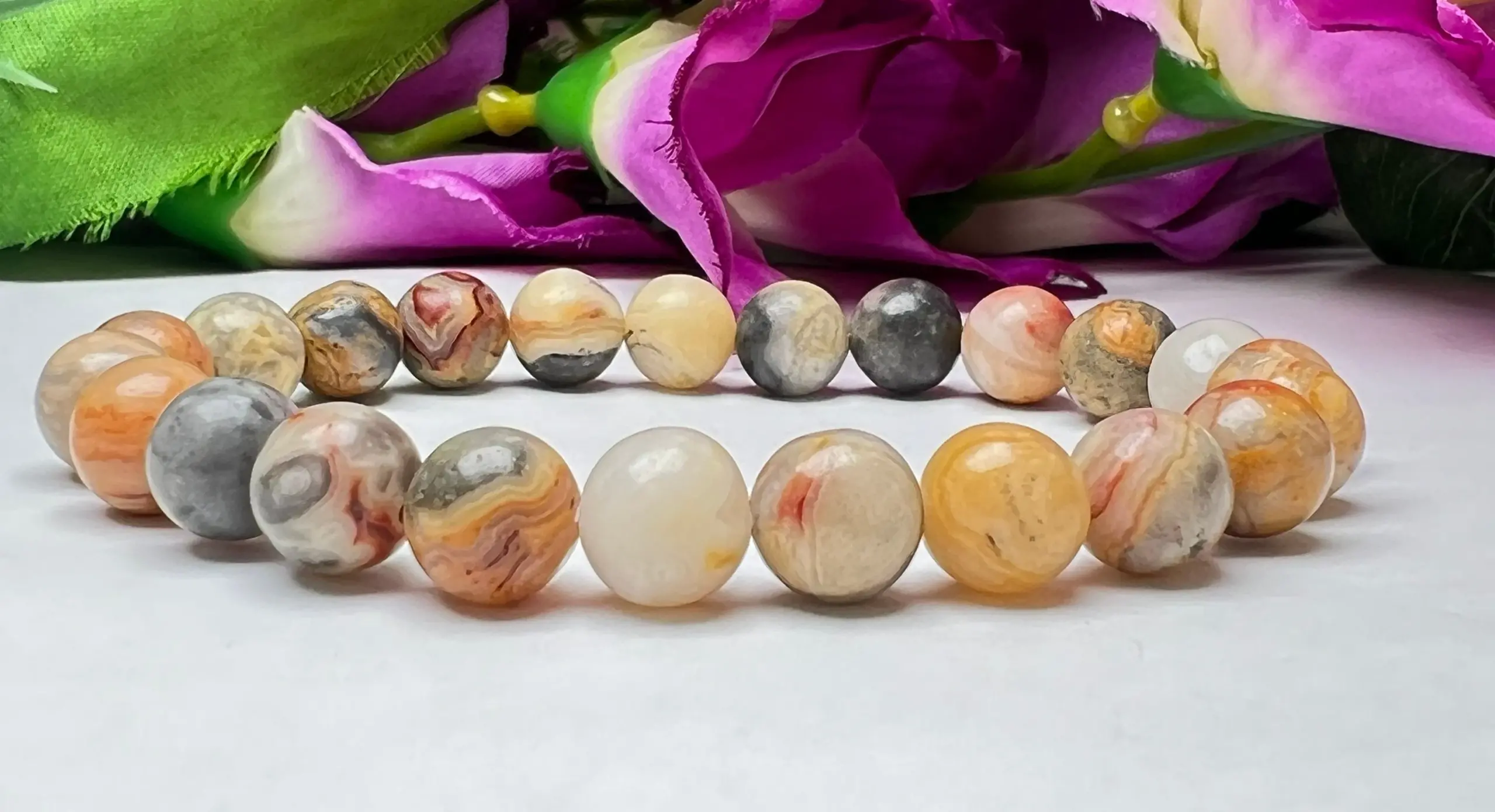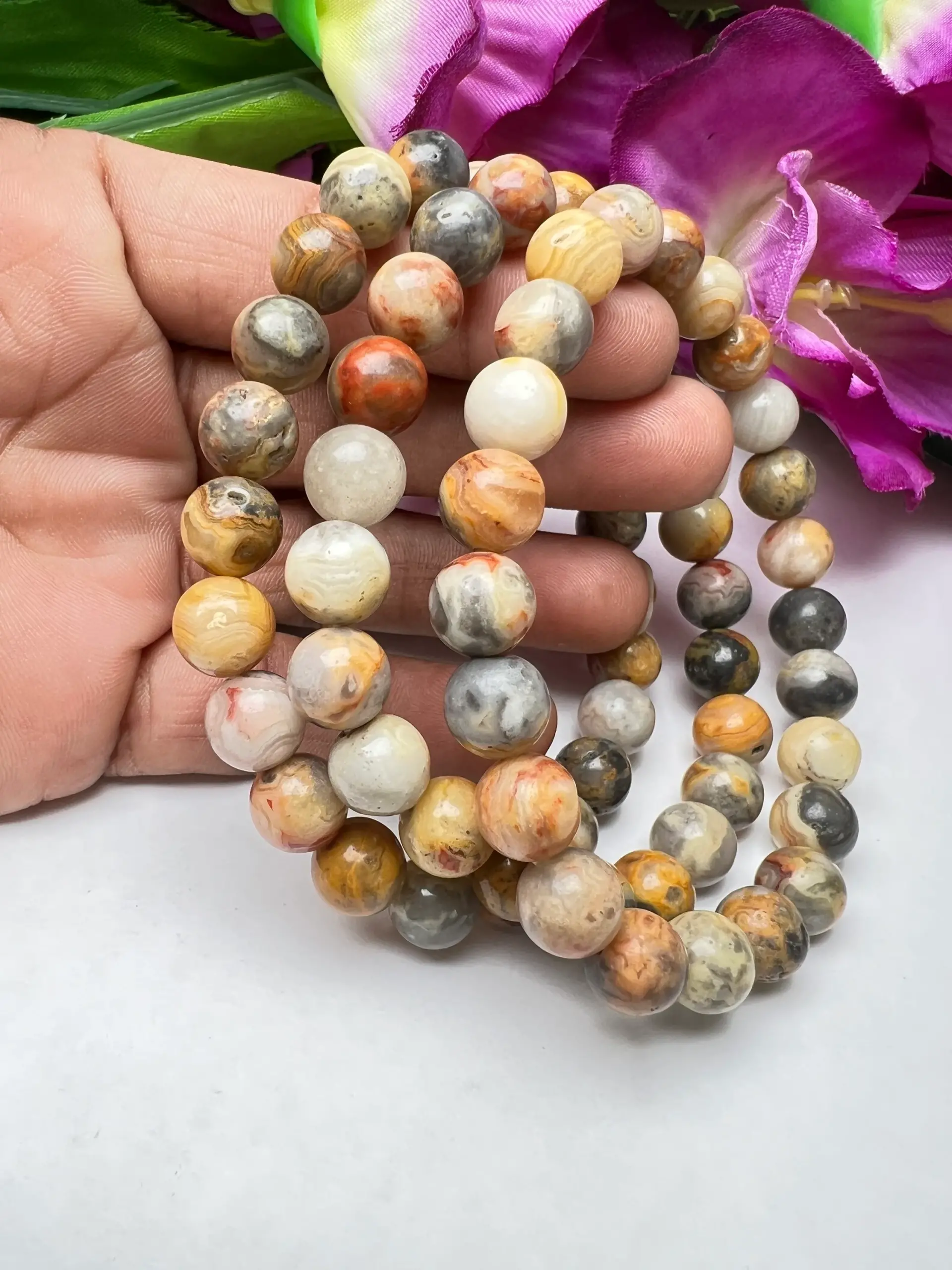 Crazy lace Agate Stone Round Beaded Bracelet 8 MM Stretch Bracelet