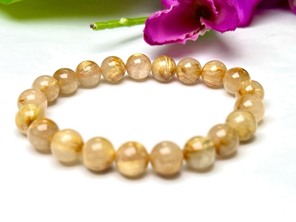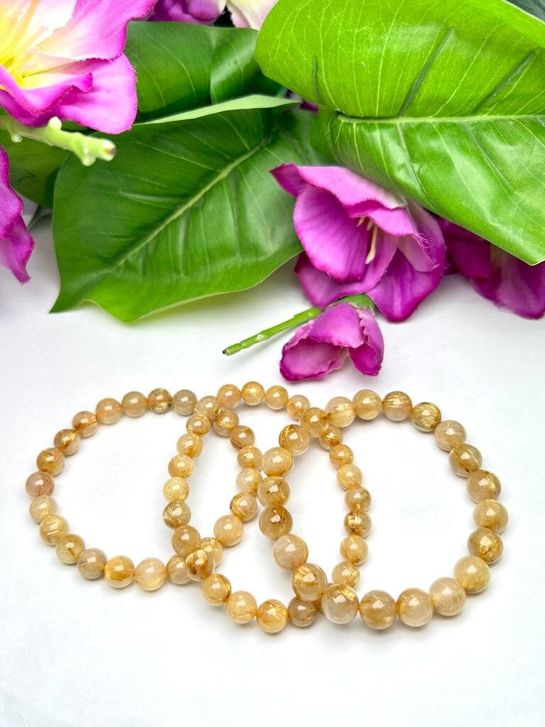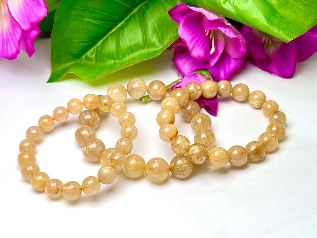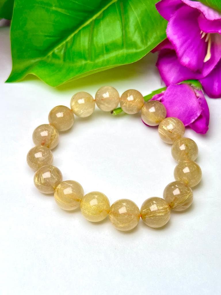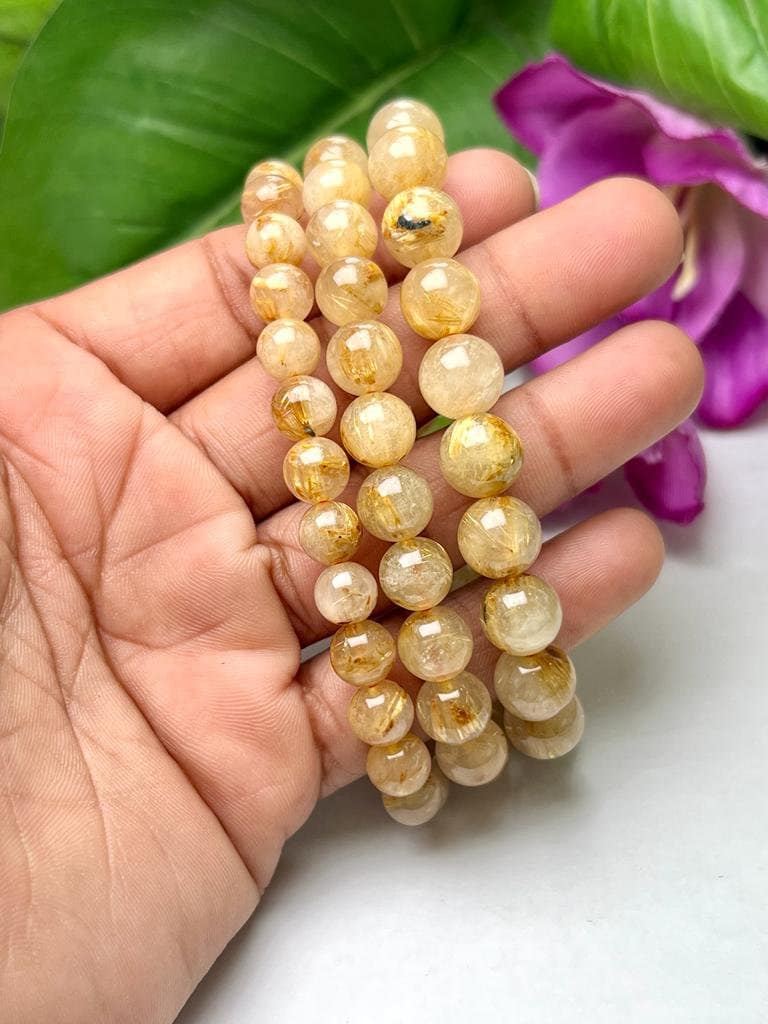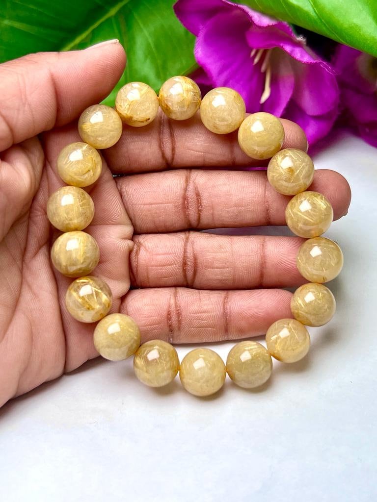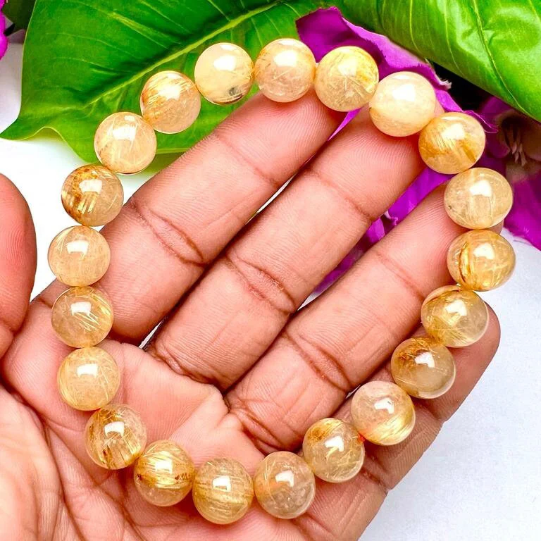 Golden Rutile Stone Round Beaded Bracelet 10 MM