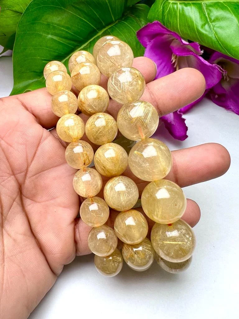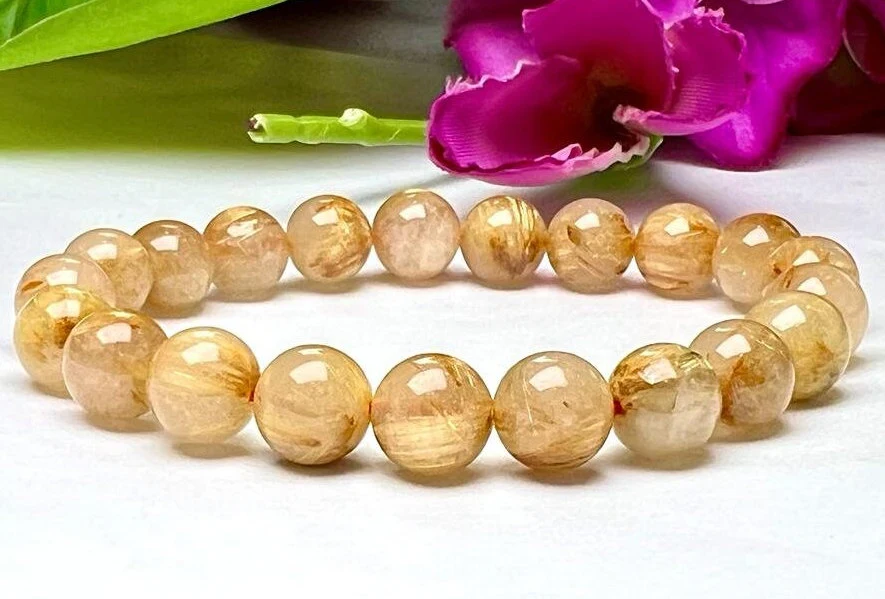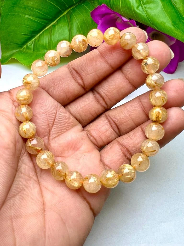Golden Rutile Stone Round Beaded Bracelet 8 MM