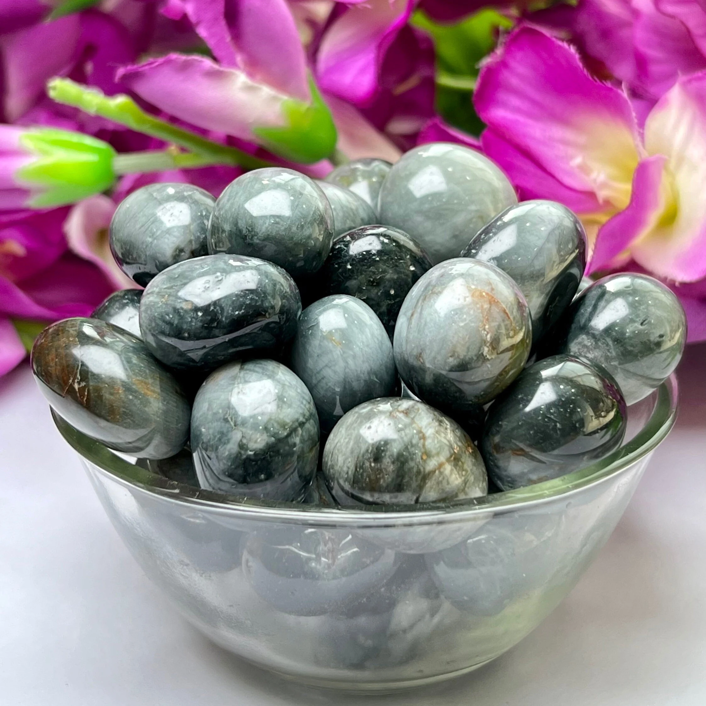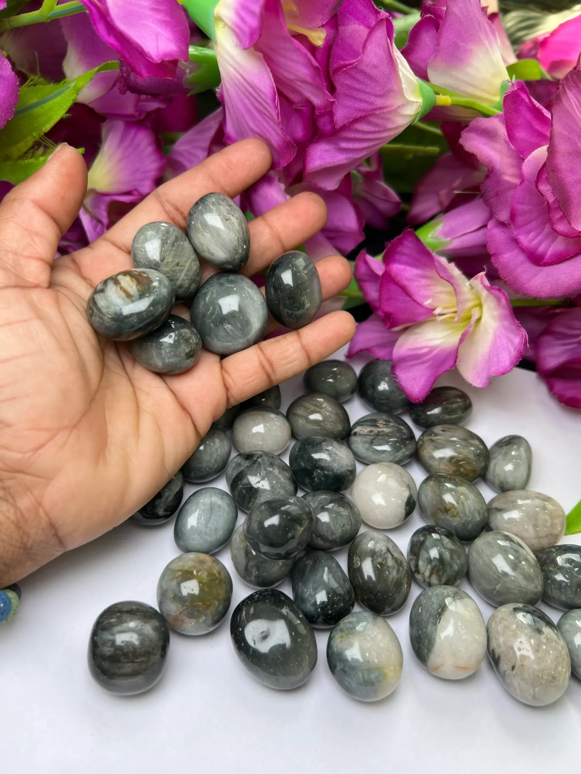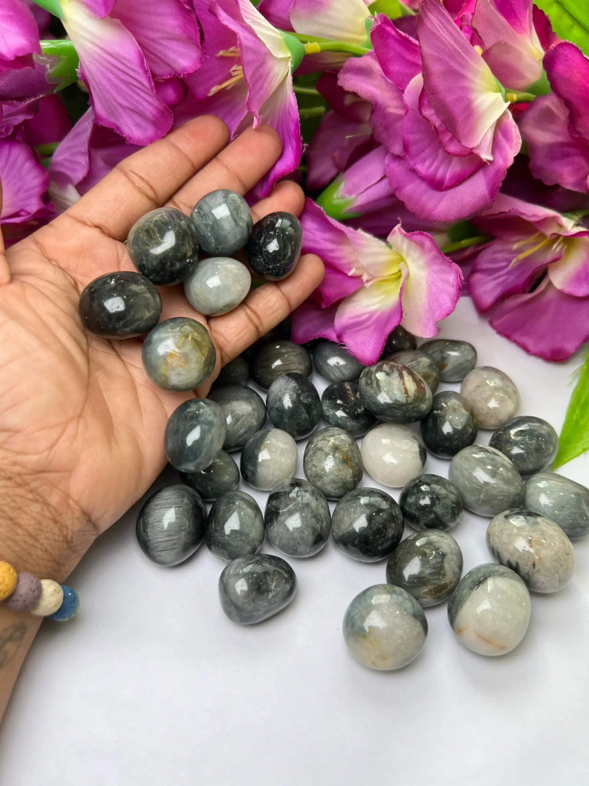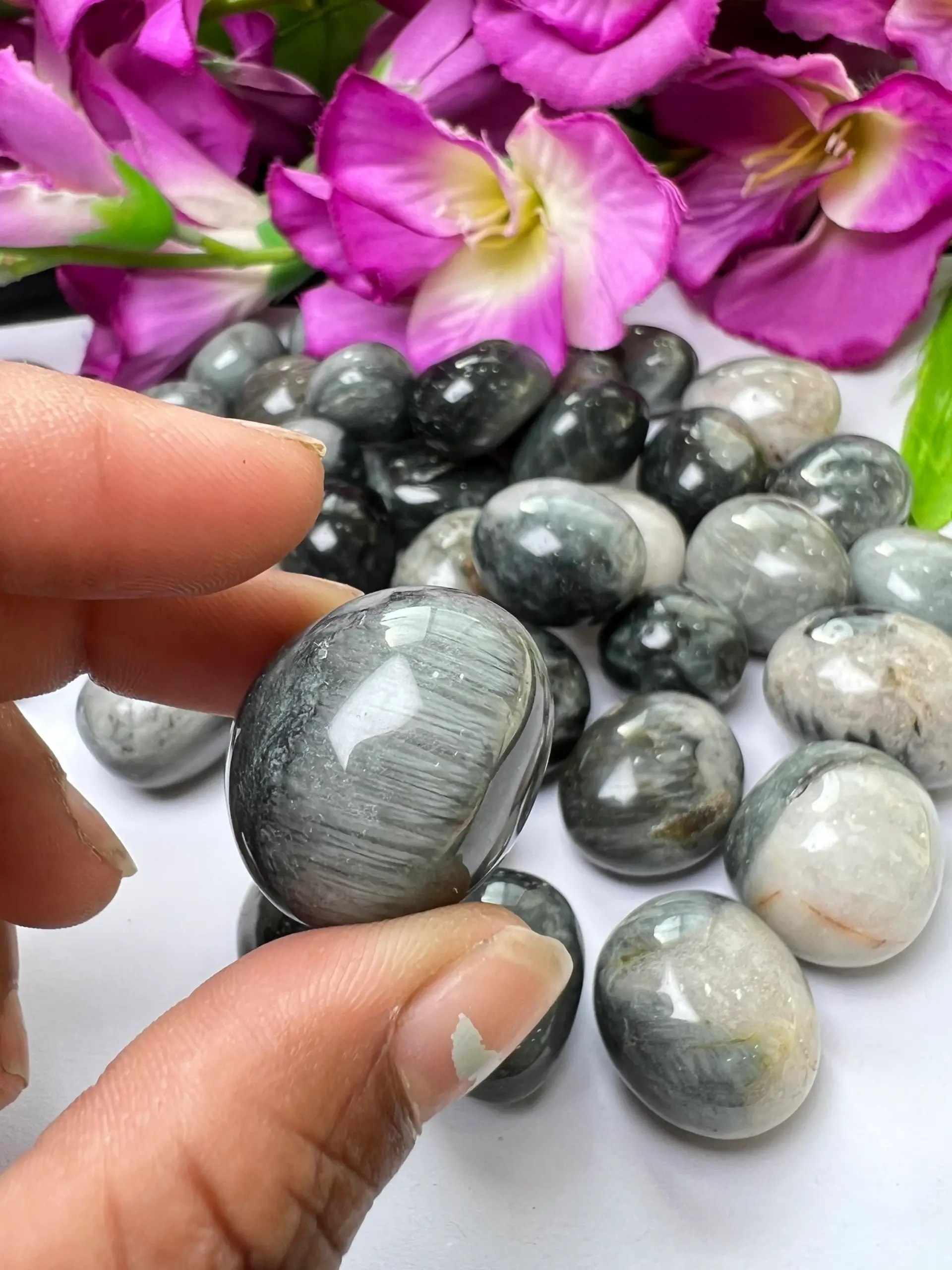 Gray Cat’s Eye Tumbled Stones Healing Crystals in pack sizes of 1,3,5, and 10 Pieces Quality AAAAA +++++