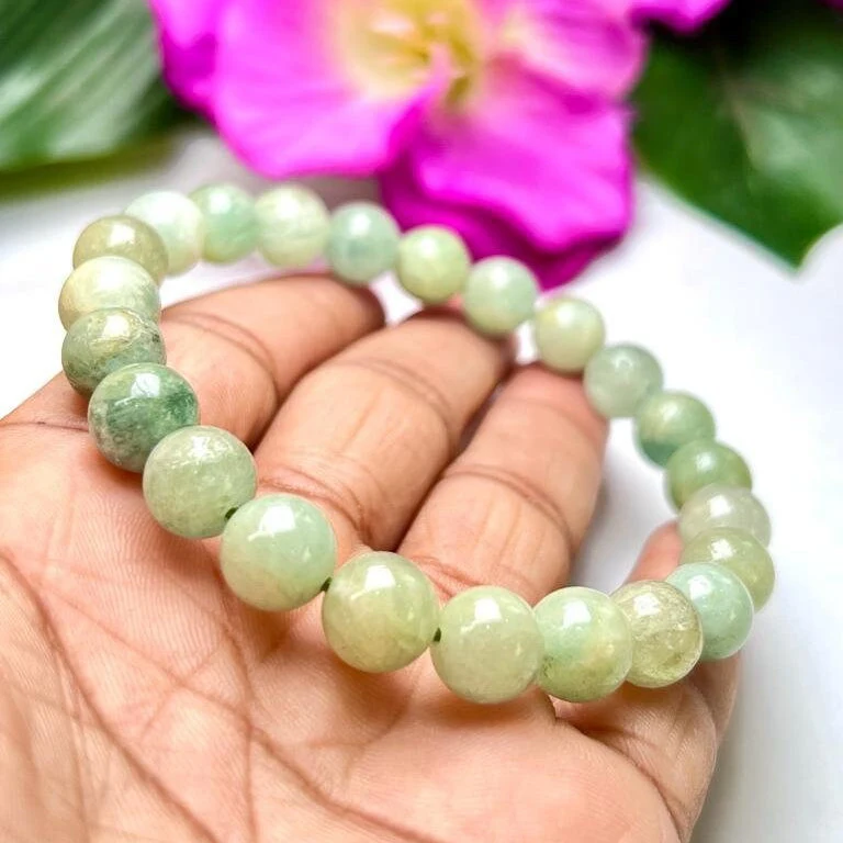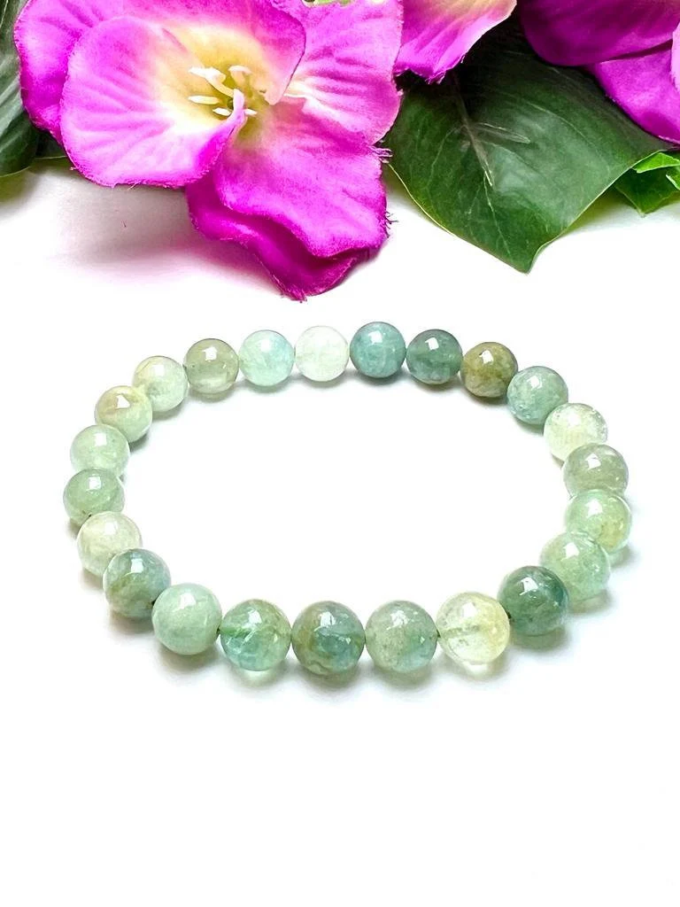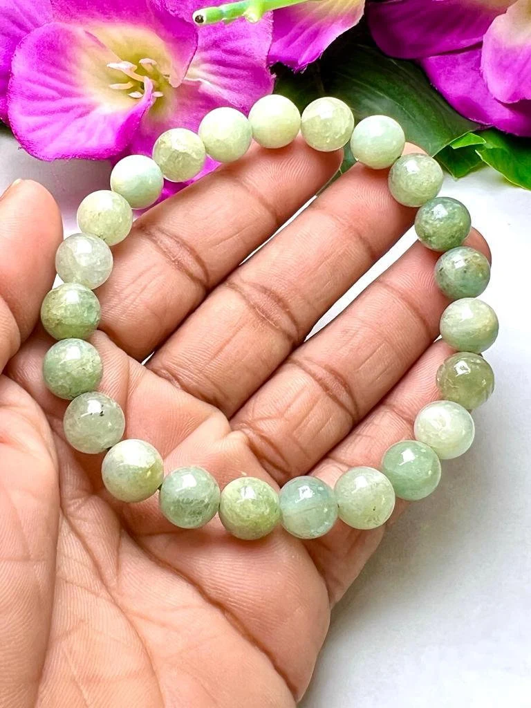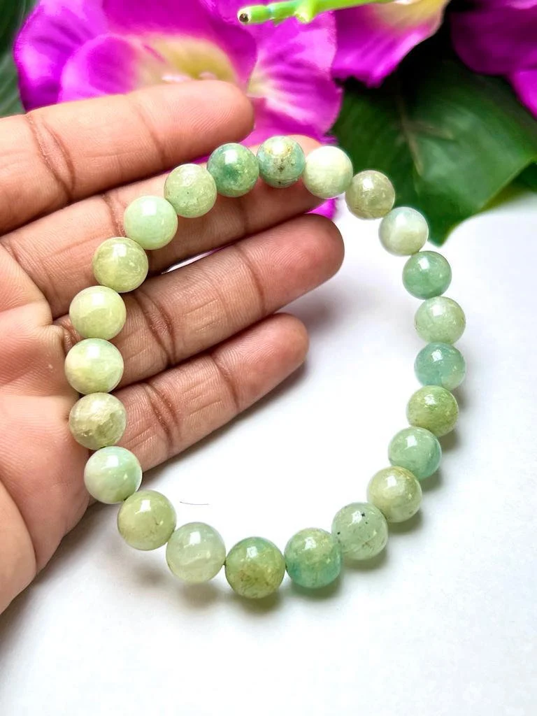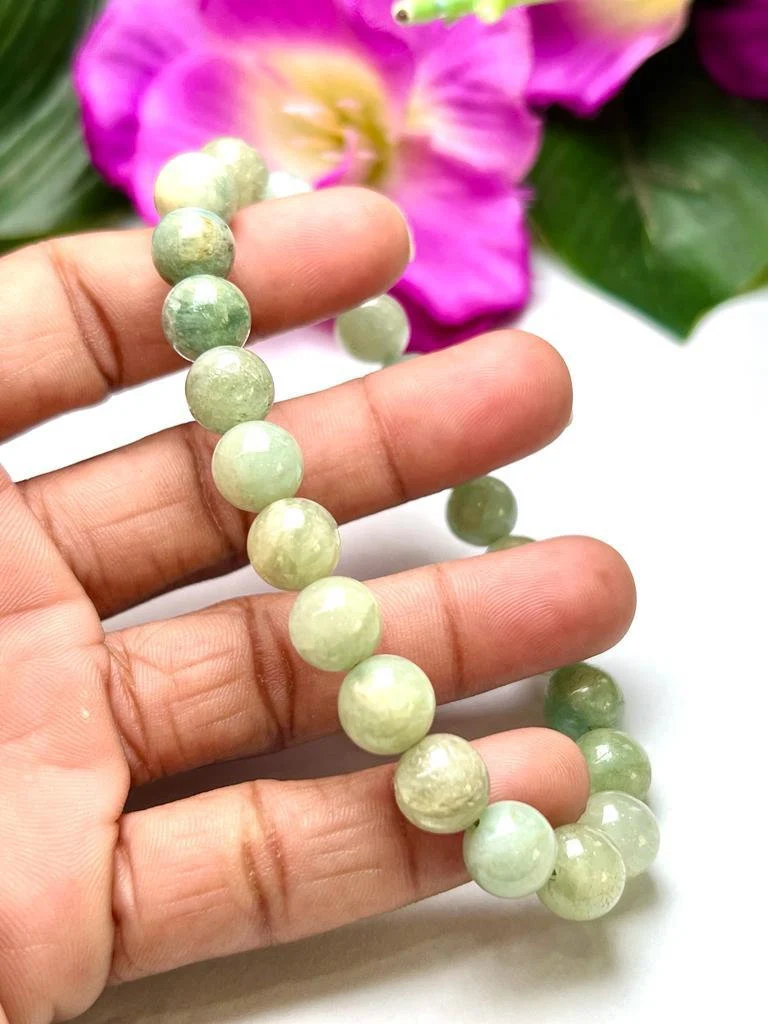 Green Beryl Crystal Stone Round Beaded Bracelet 8 MM Stretch Bracelet