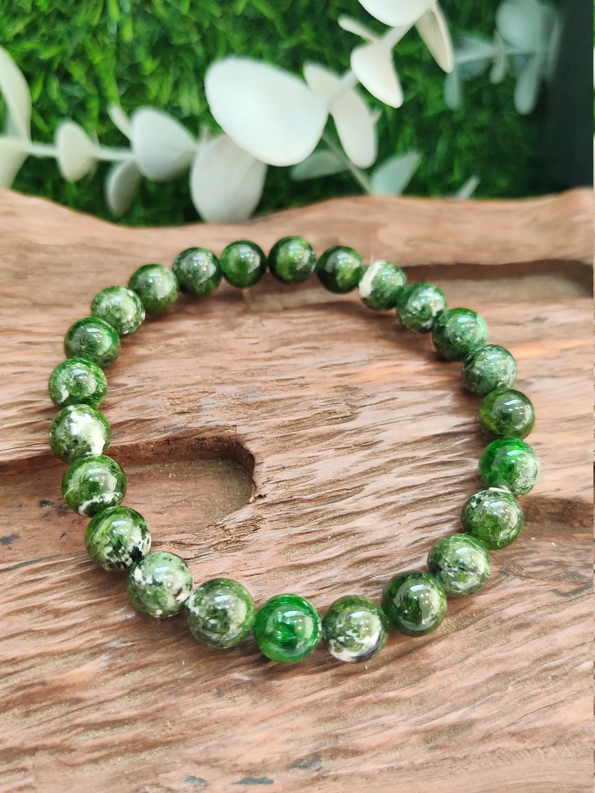 Green Diopside Round Beaded Bracelet 8MM Stretch Bracelet