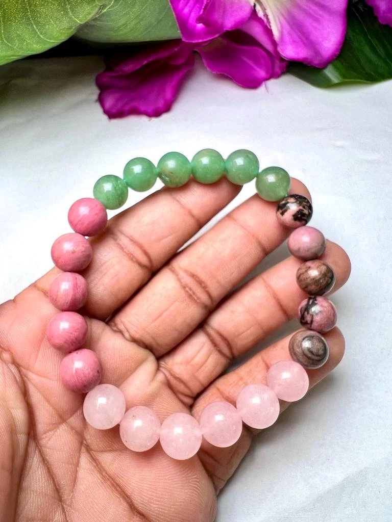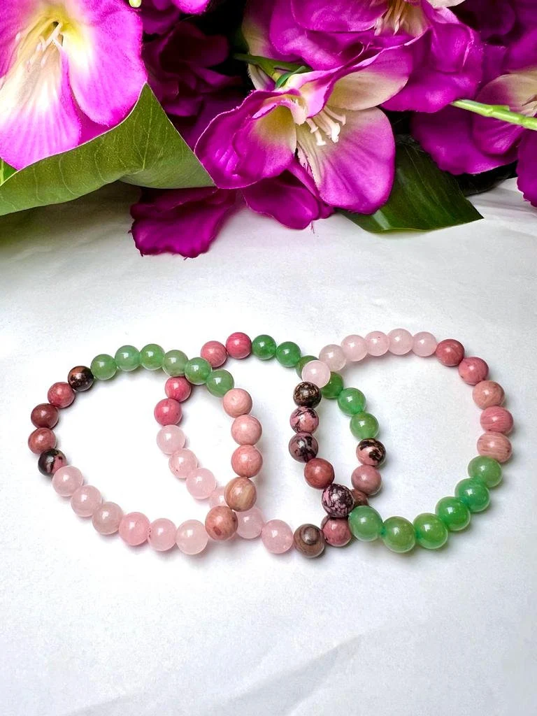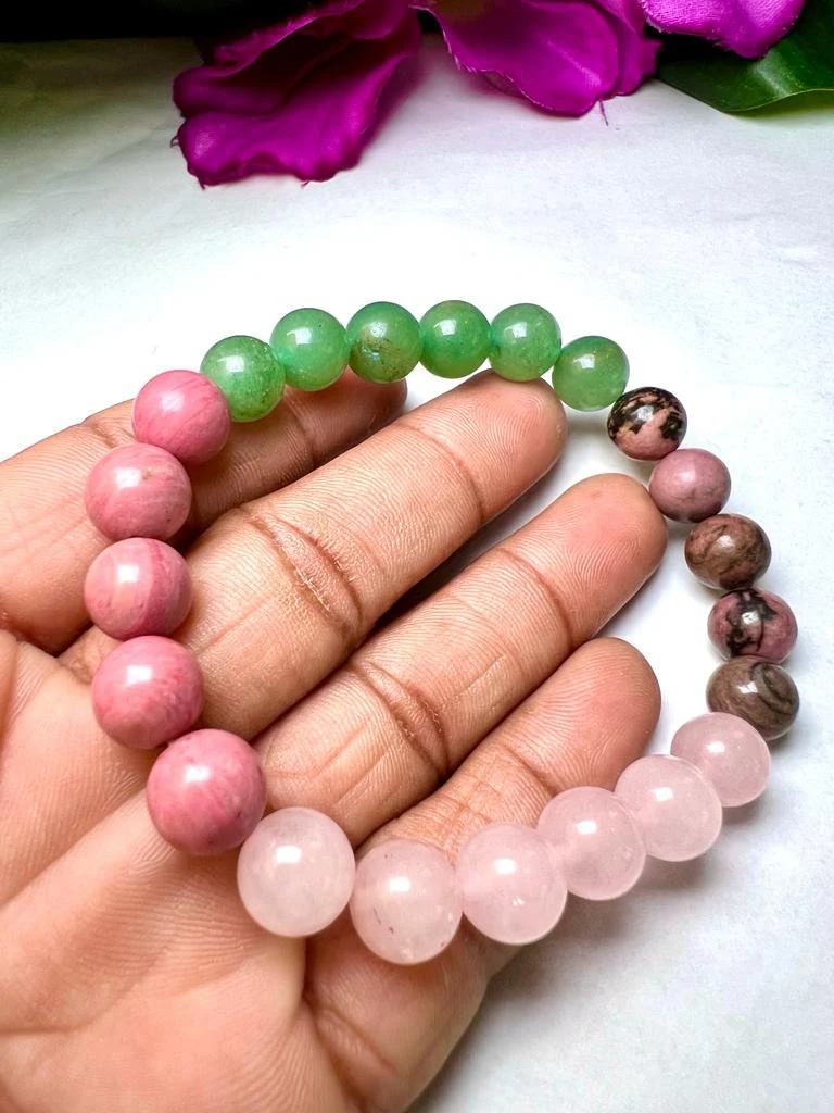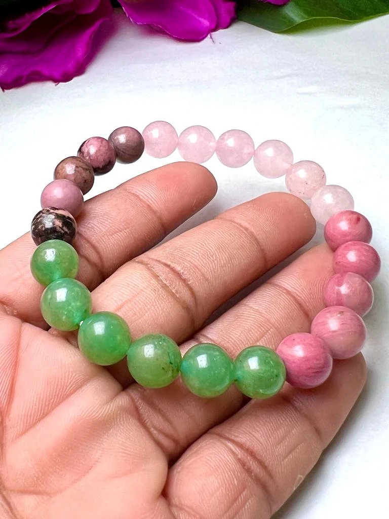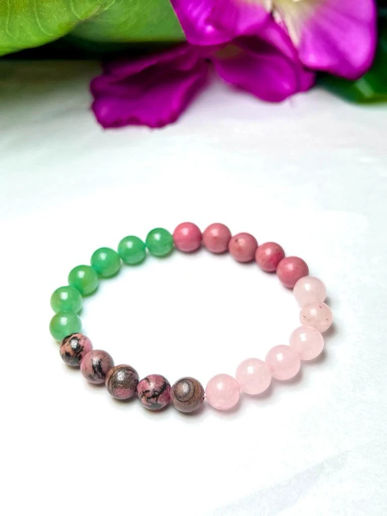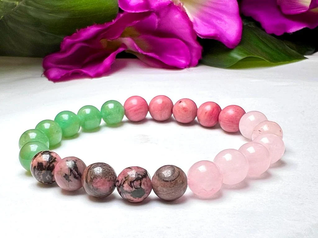 HEART Chakra Natural Stone Crystal Bracelet 8mm Rhodocrosite, Rhodonite, Green Aventurine, Rose Quartz Gemstone Healing Bracelet