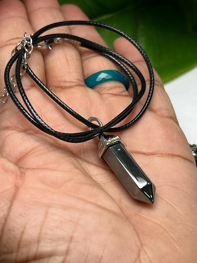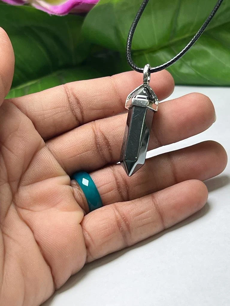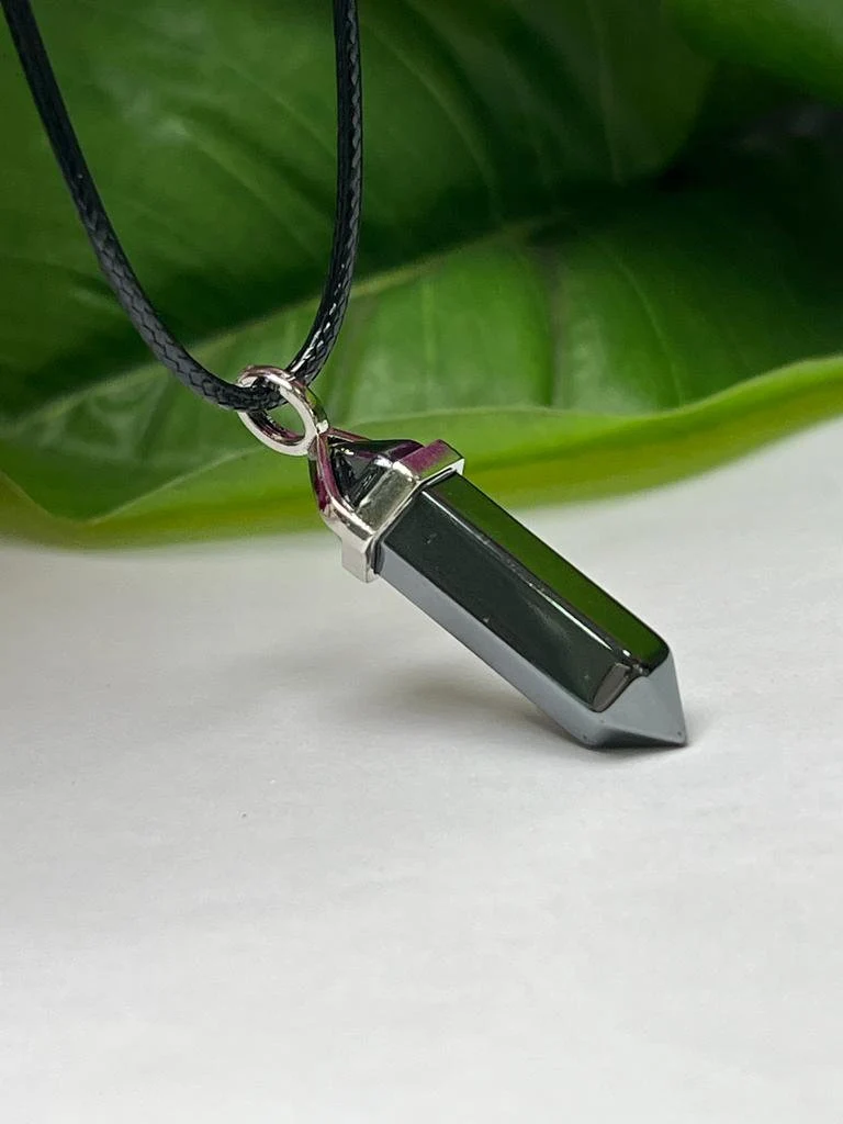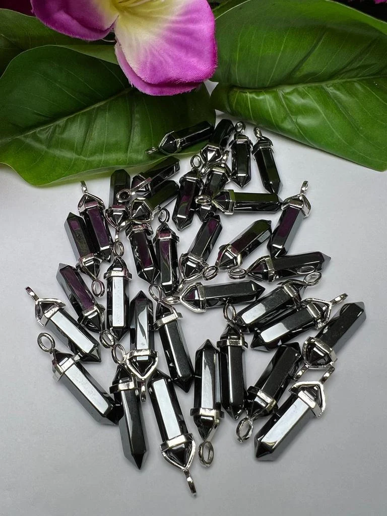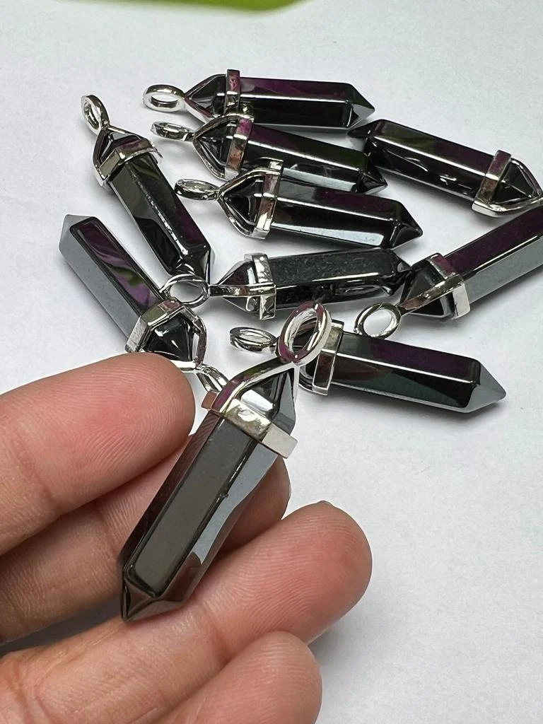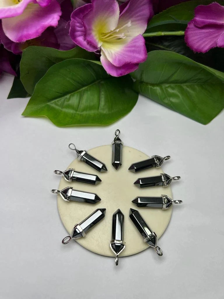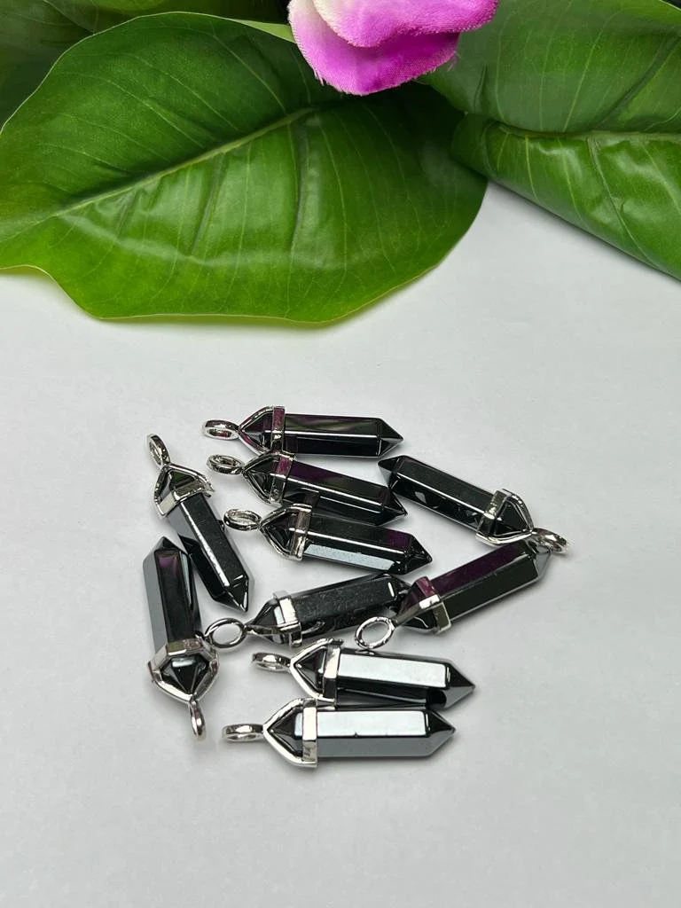 Hematite Stone Healing Double Terminated Point Pendant With Silver Plated Bail Natural stone Pencil Point Pendant