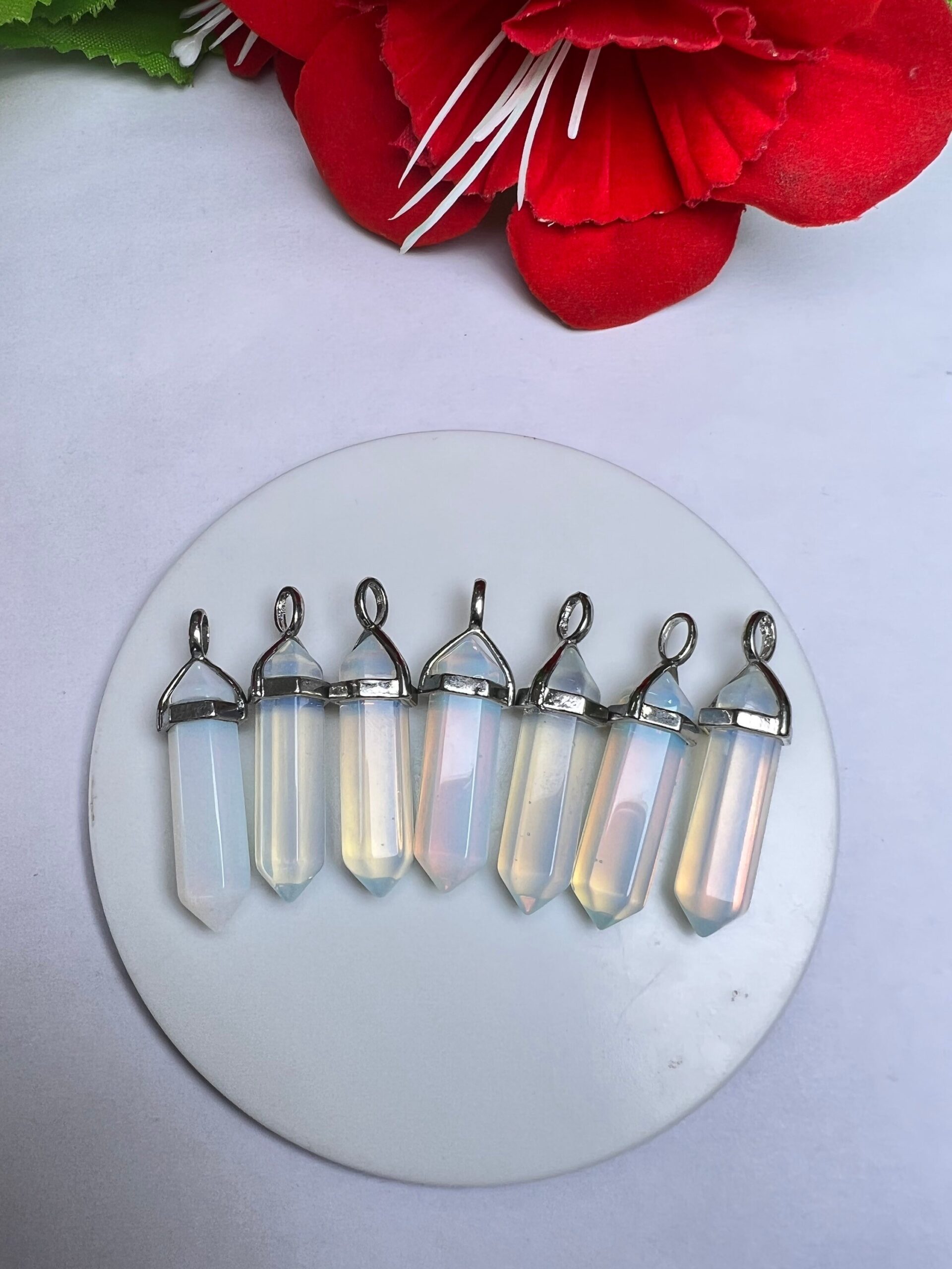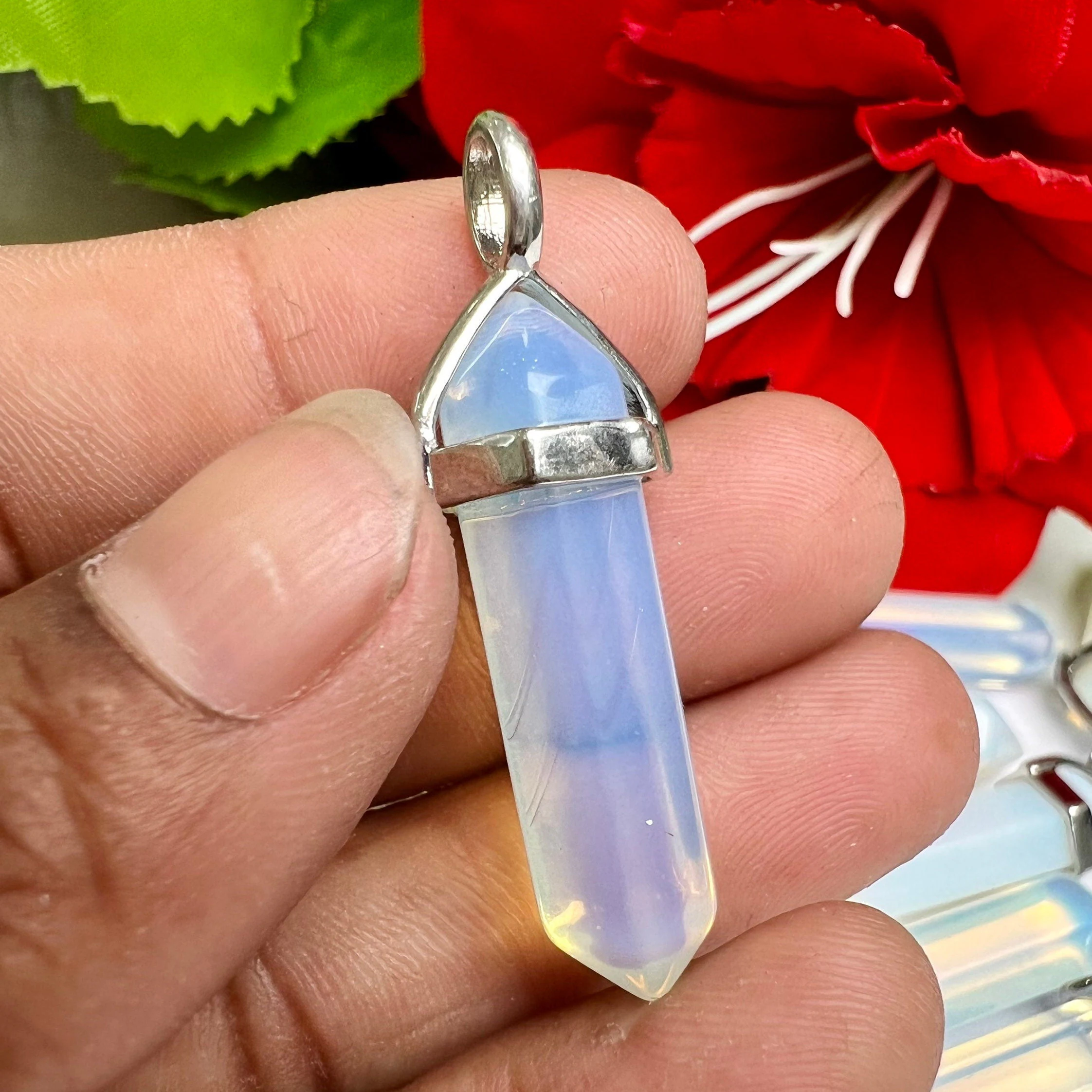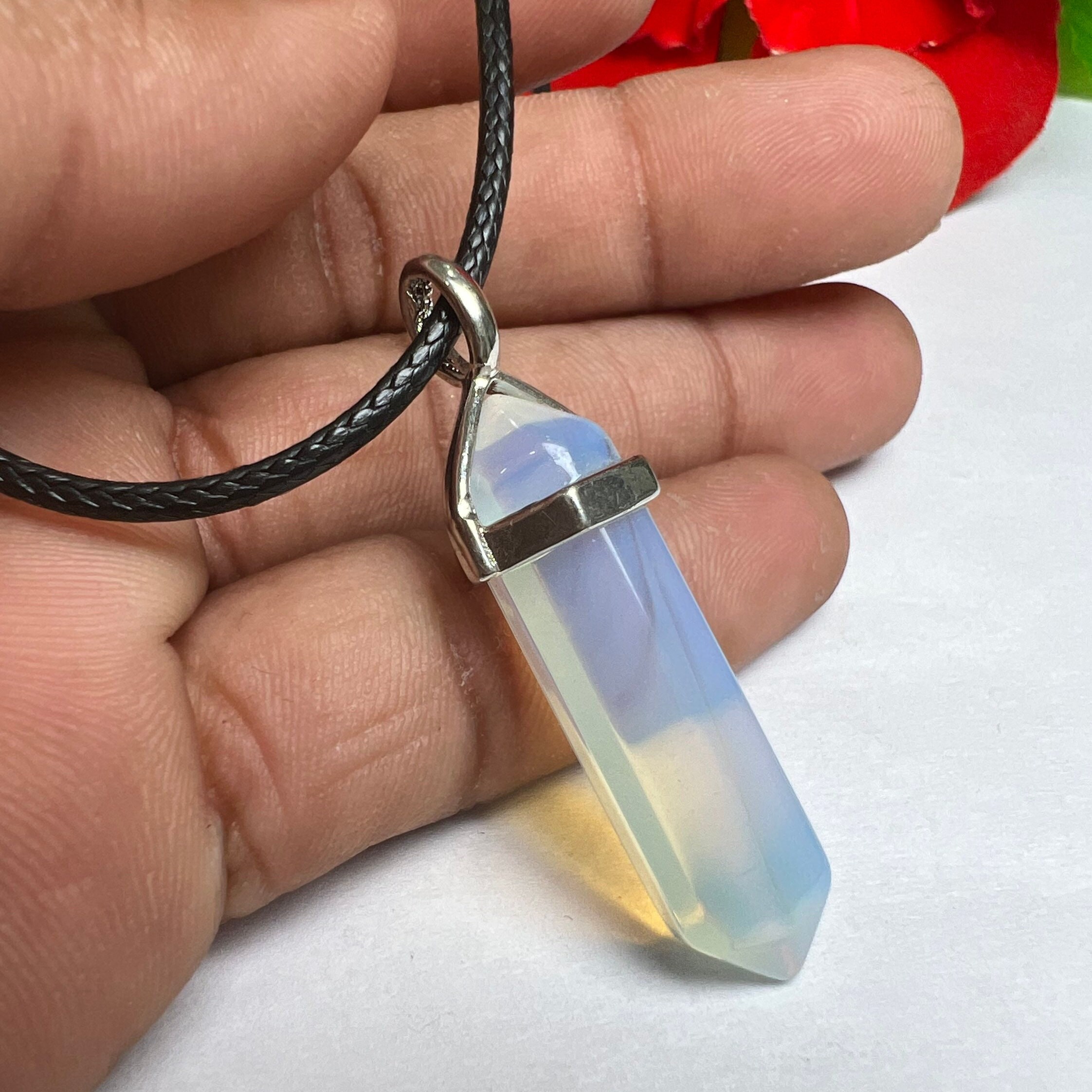Opalite Stone Healing Double Terminated Point Pendant With Silver Plated Bail Natural stone Pencil Point Pendant