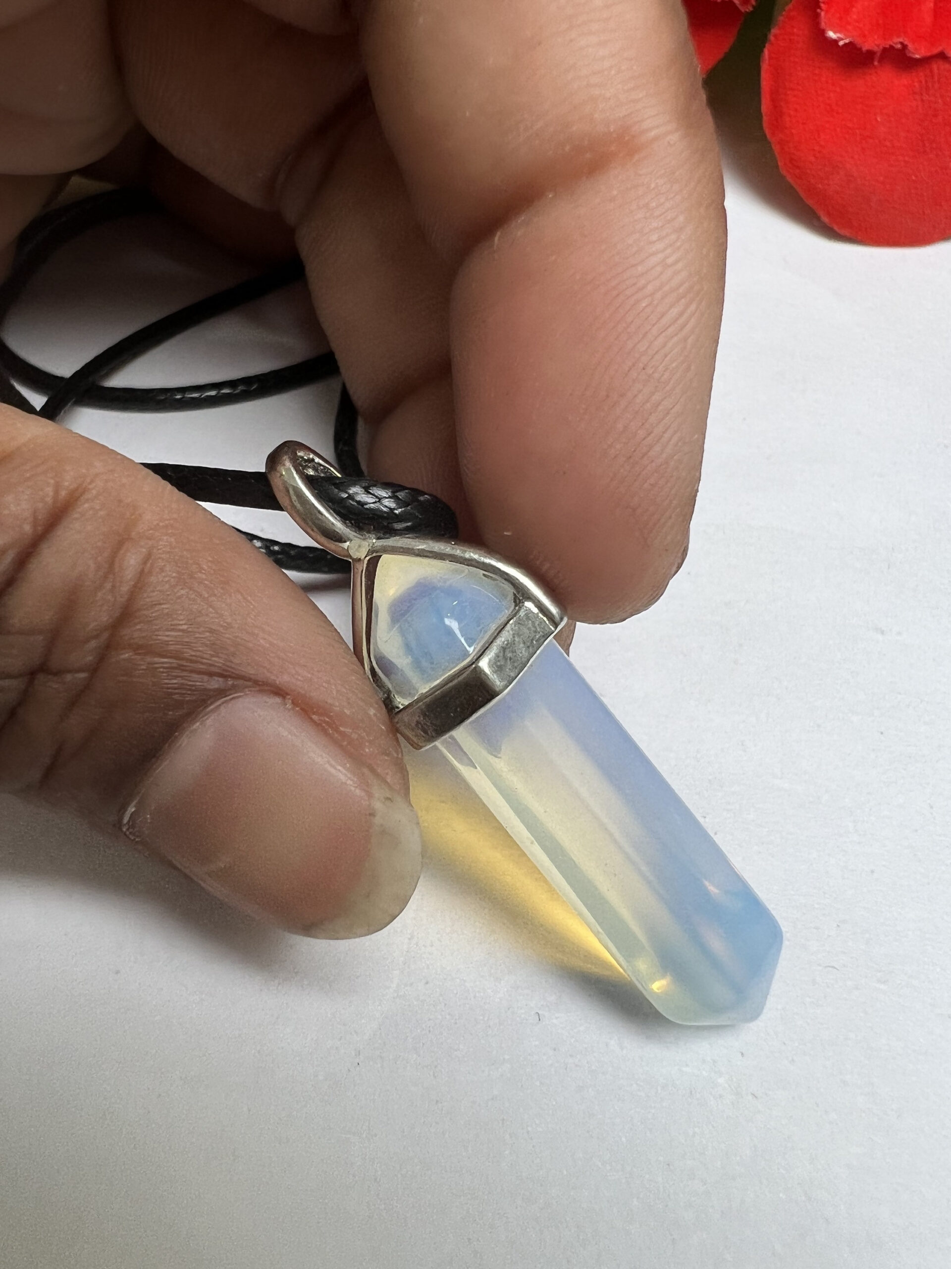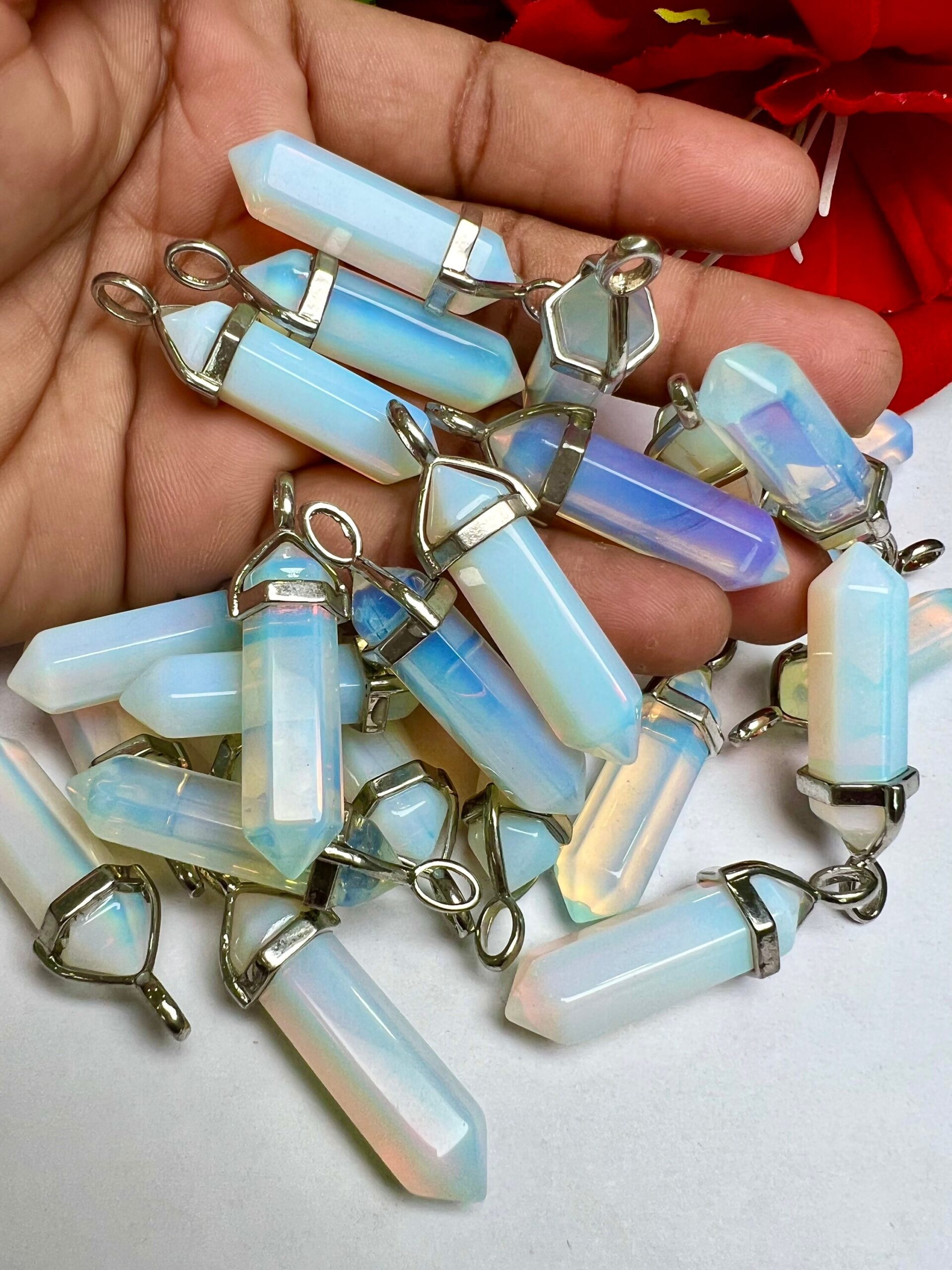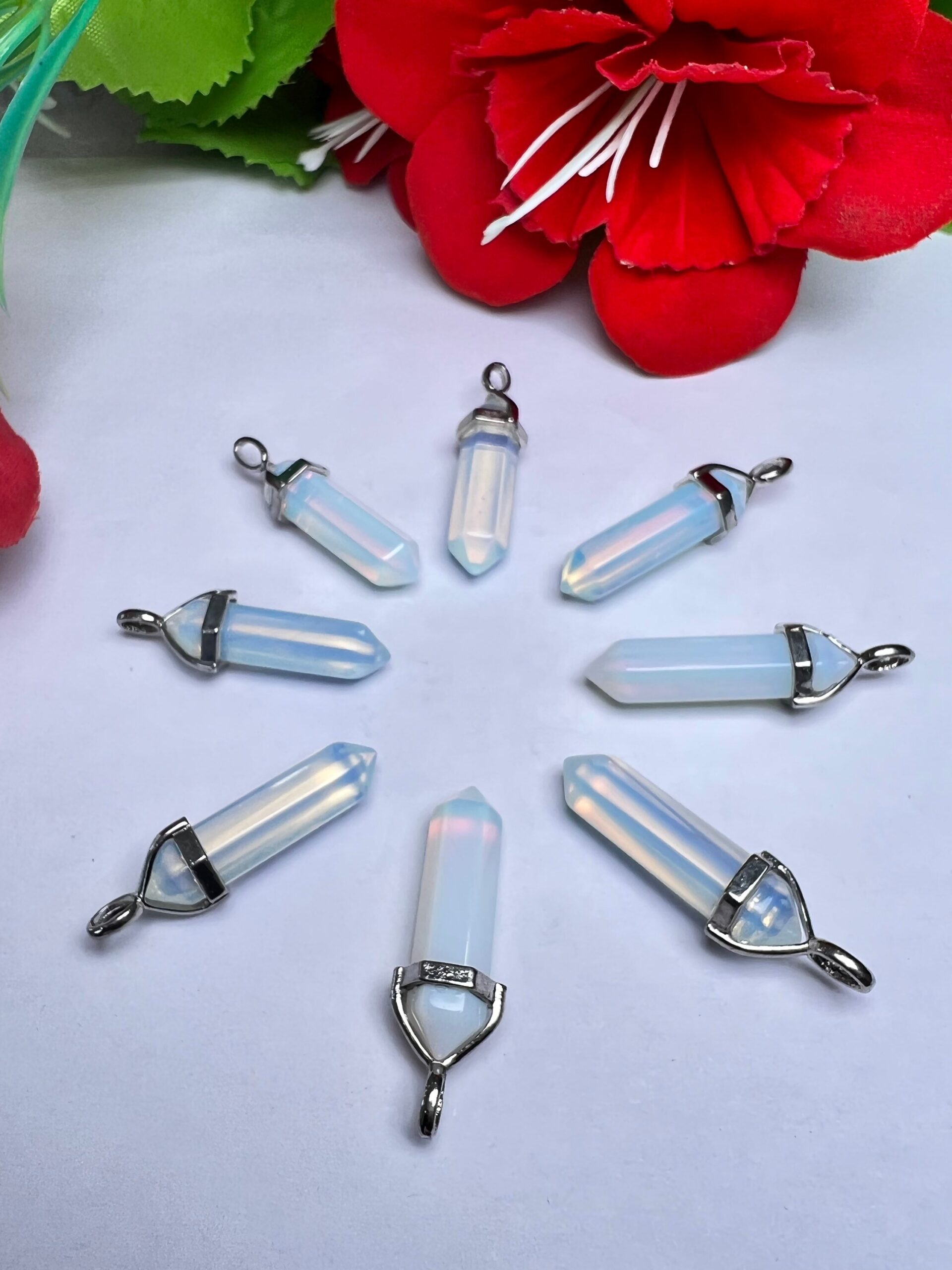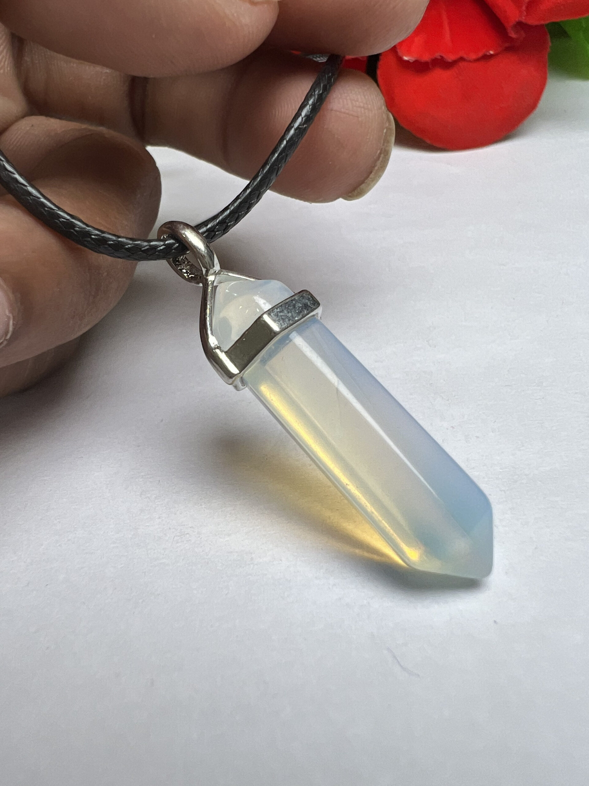 Opalite Stone Healing Double Terminated Point Pendant With Silver Plated Bail Natural stone Pencil Point Pendant