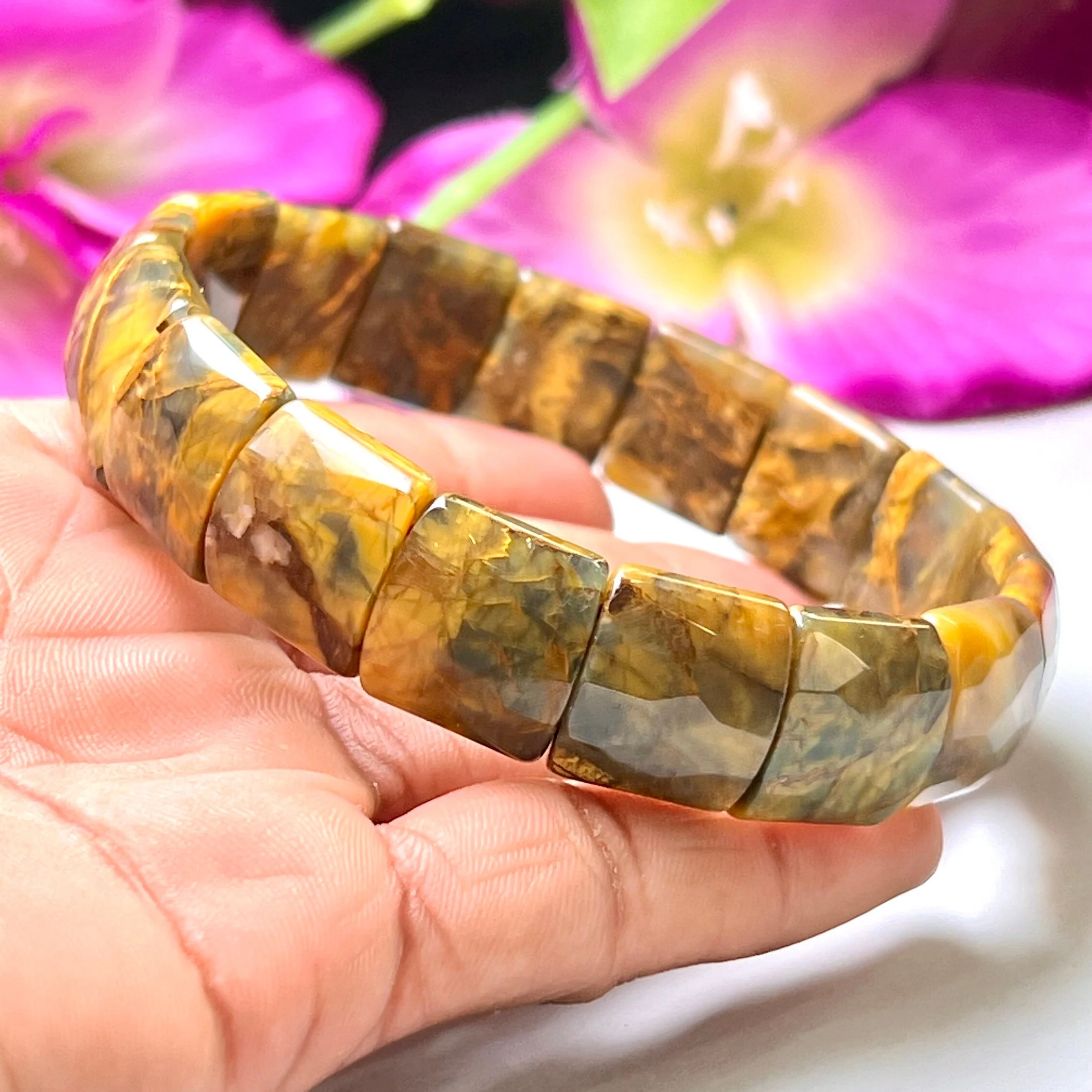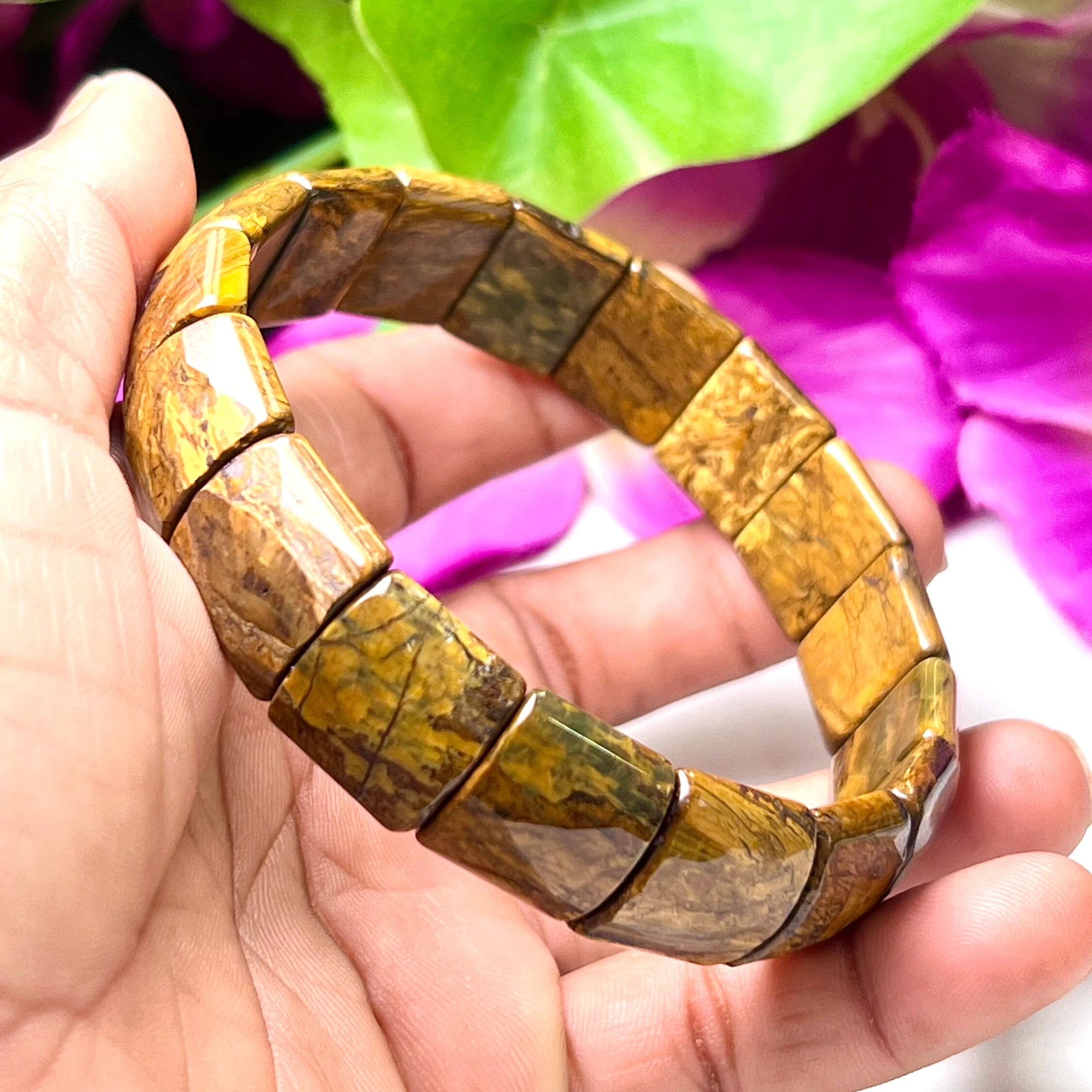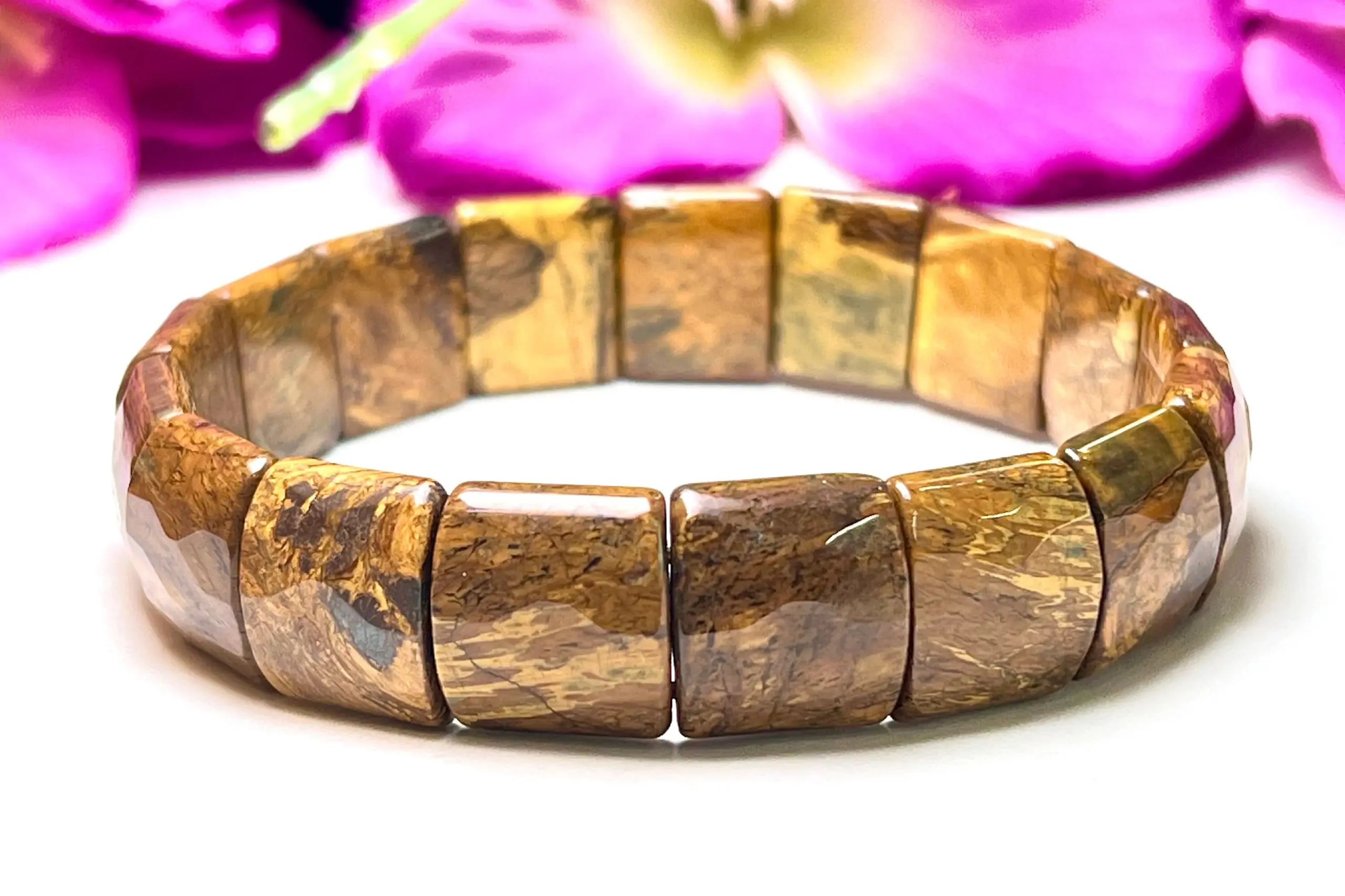 PIETERSITE Stone Rectangle Beaded Bracelet 15 MM Stretch Bracelet