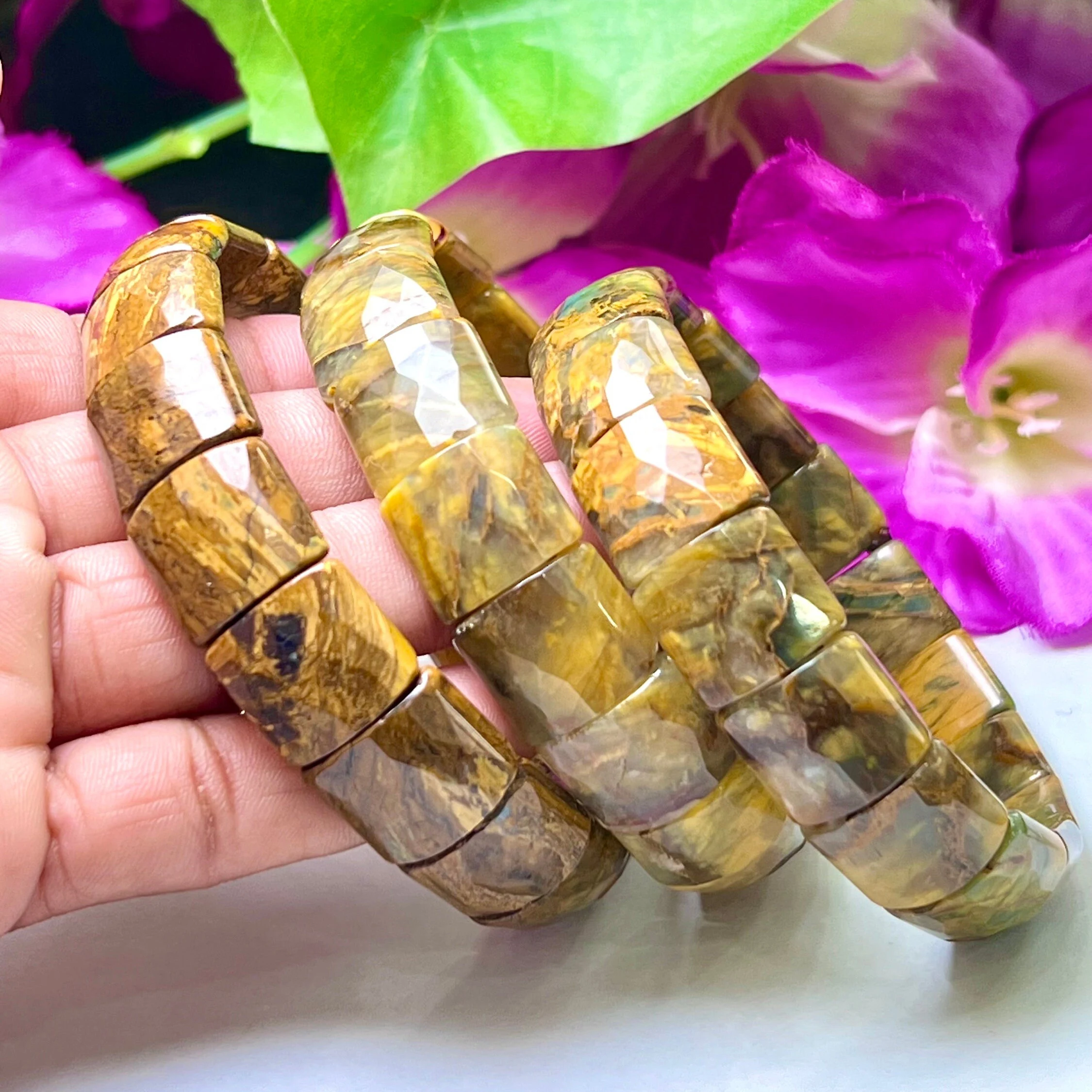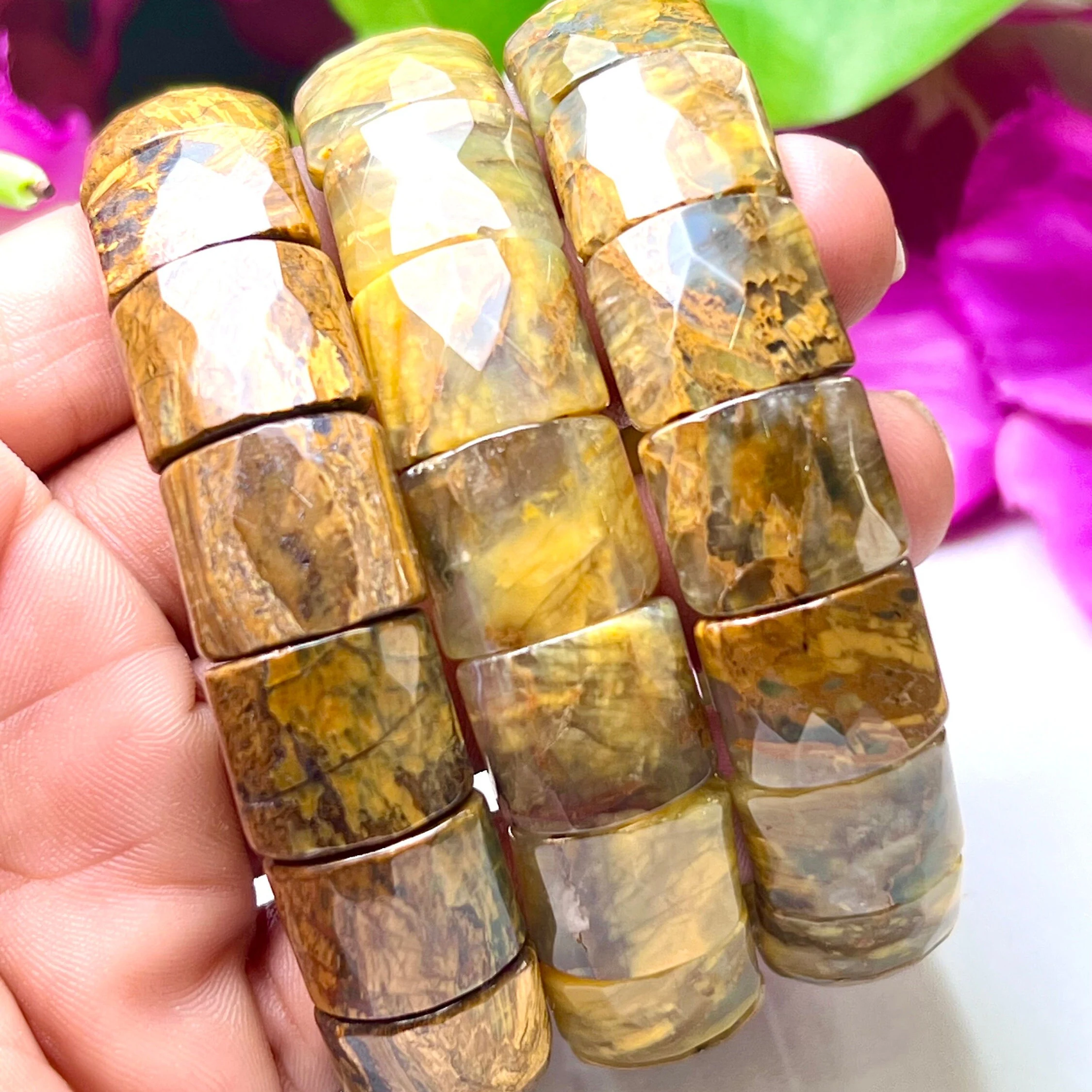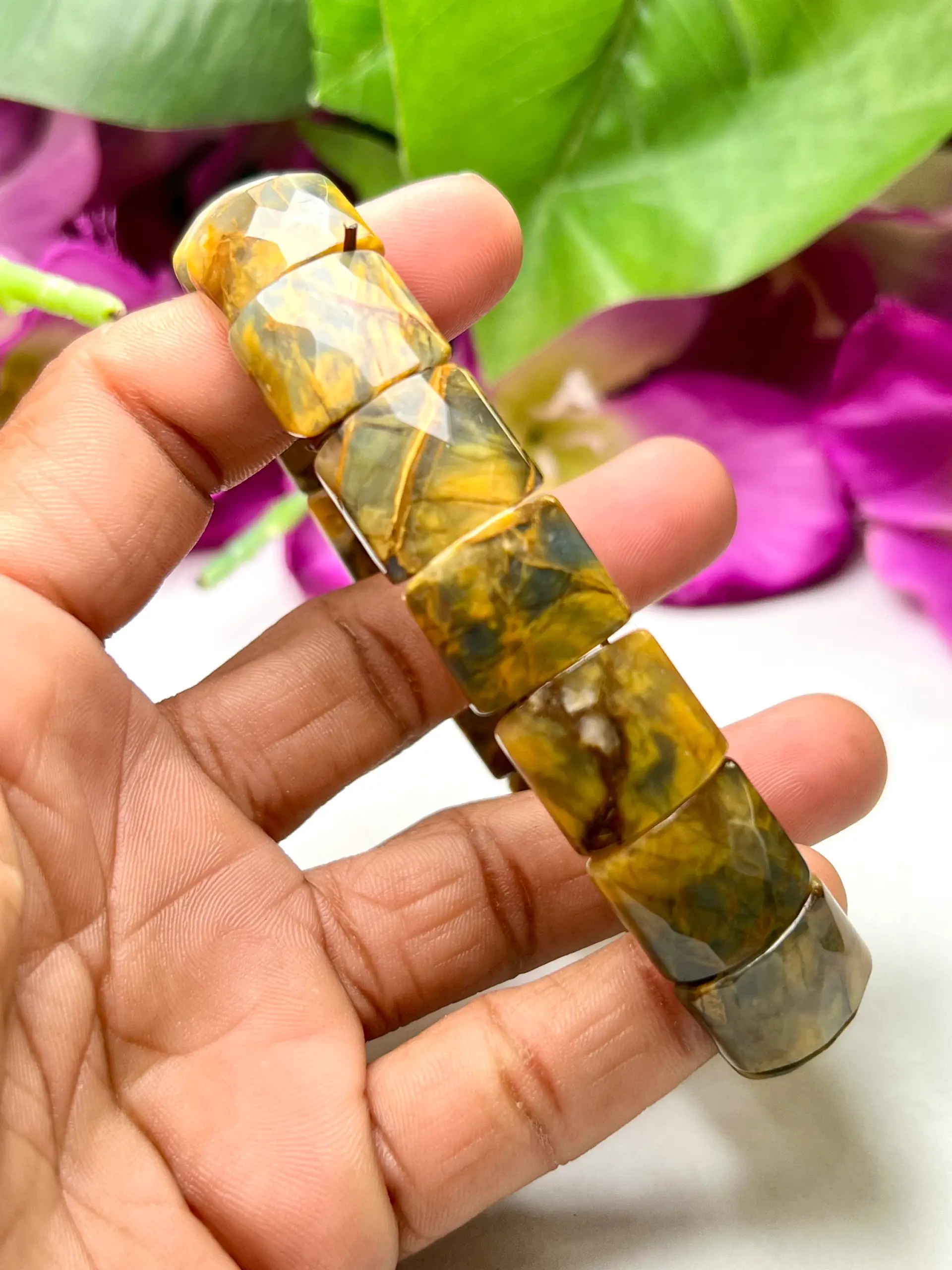 PIETERSITE Stone Rectangle Beaded Bracelet 15 MM Stretch Bracelet