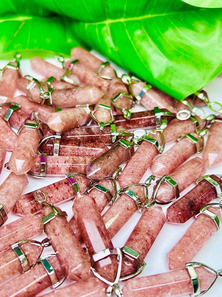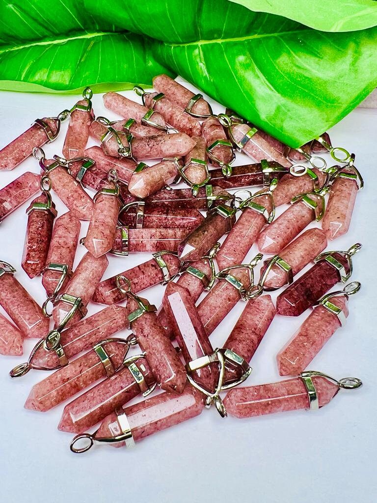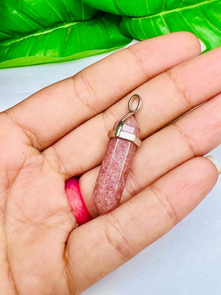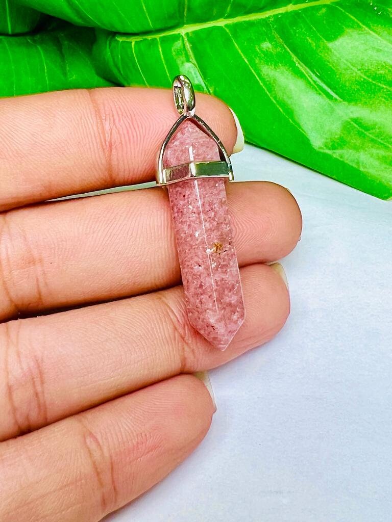 Pink Strawberry Quartz Stone Healing Double Terminated Point Pendant With Silver Plated Bail Natural stone Pencil Point Pendant