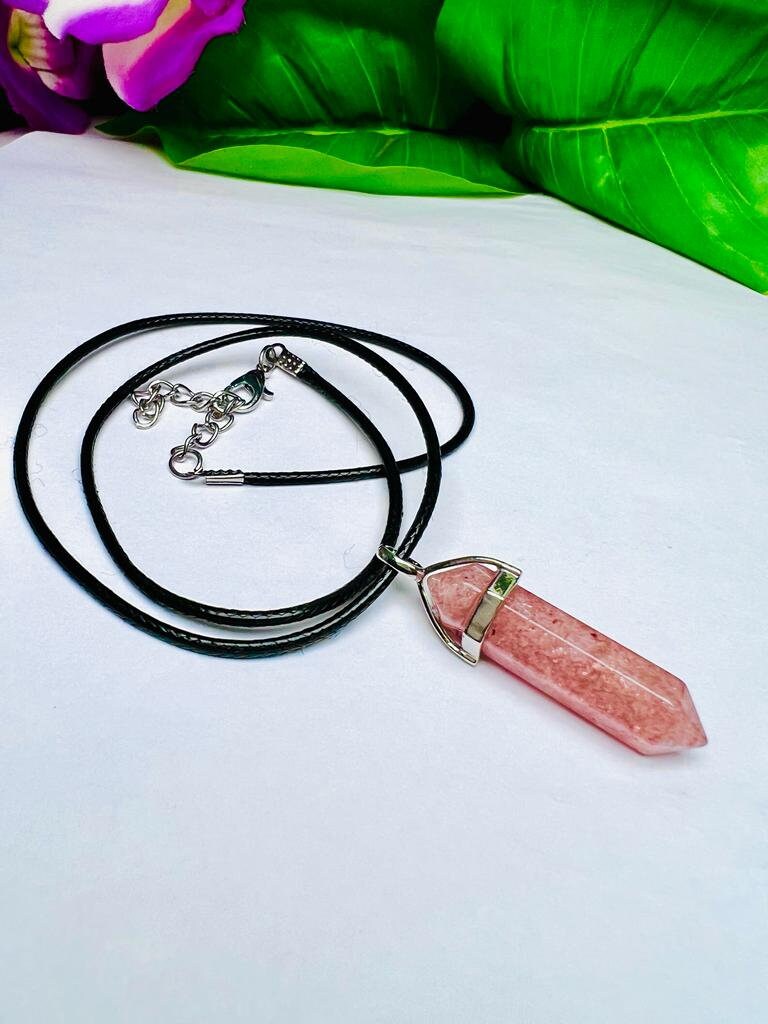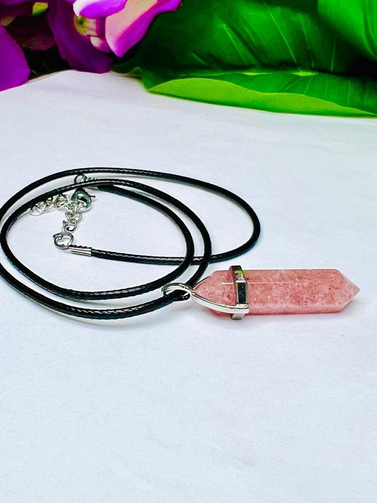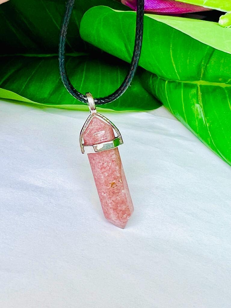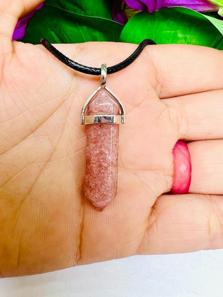 Pink Strawberry Quartz Stone Healing Double Terminated Point Pendant With Silver Plated Bail Natural stone Pencil Point Pendant