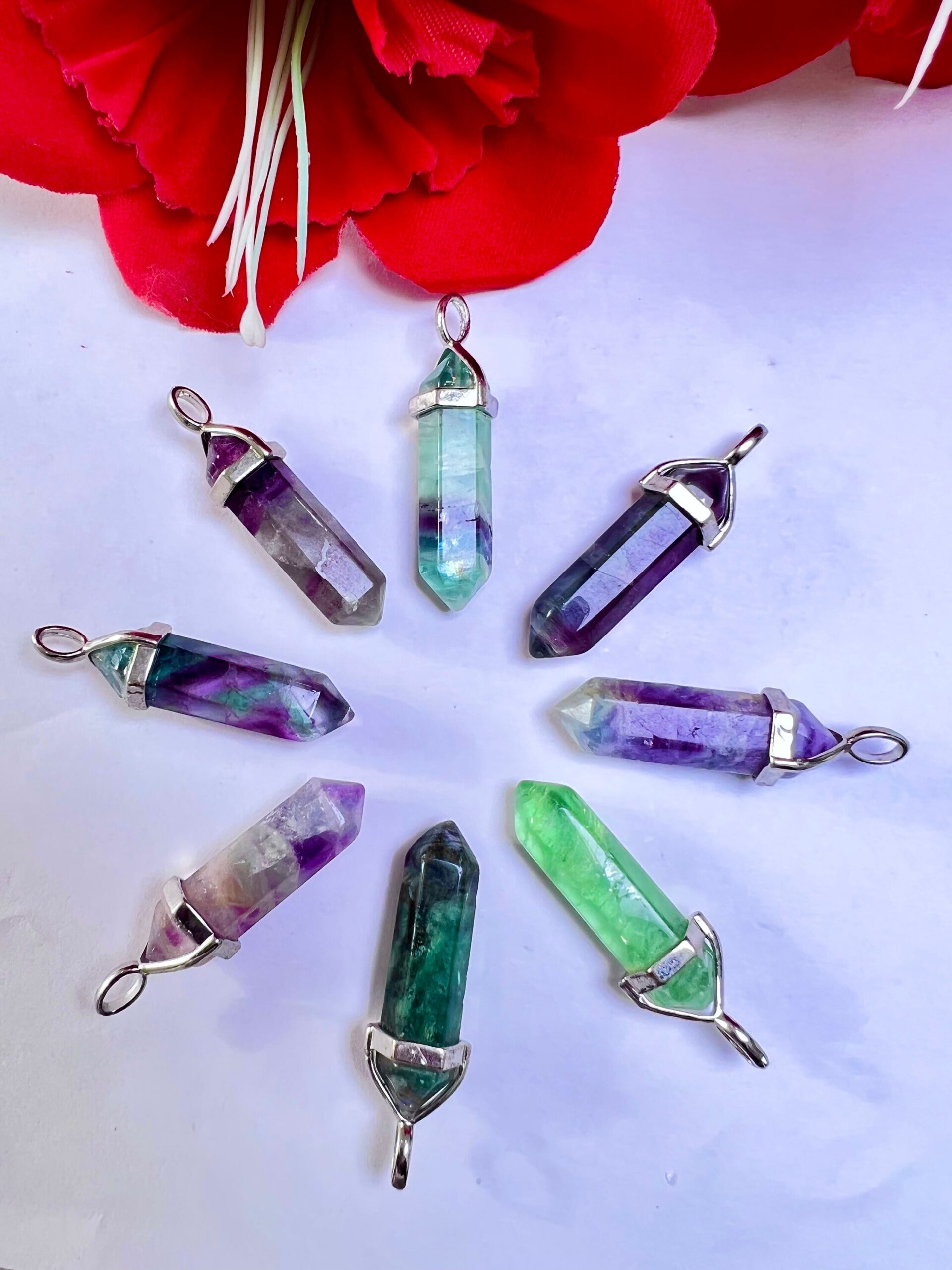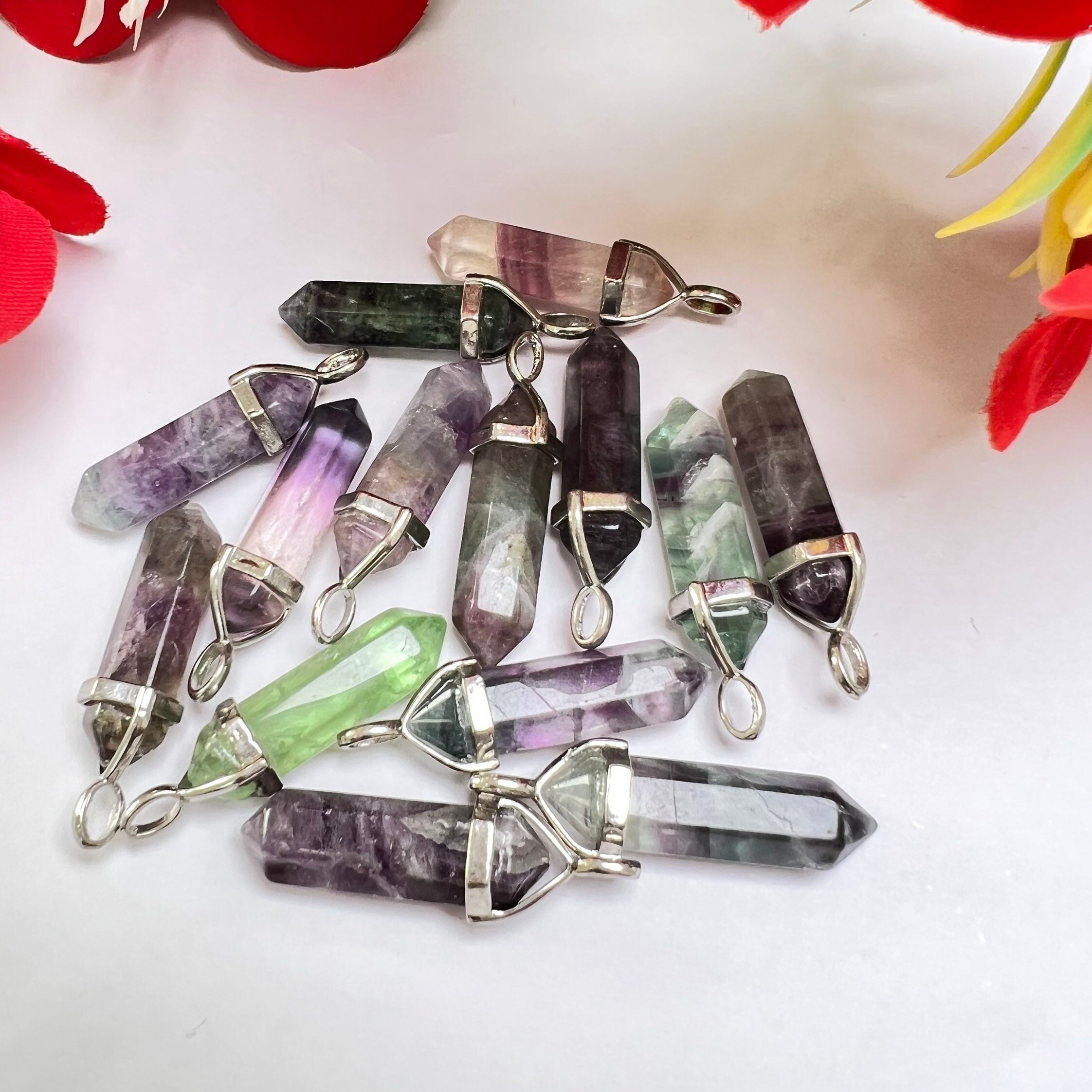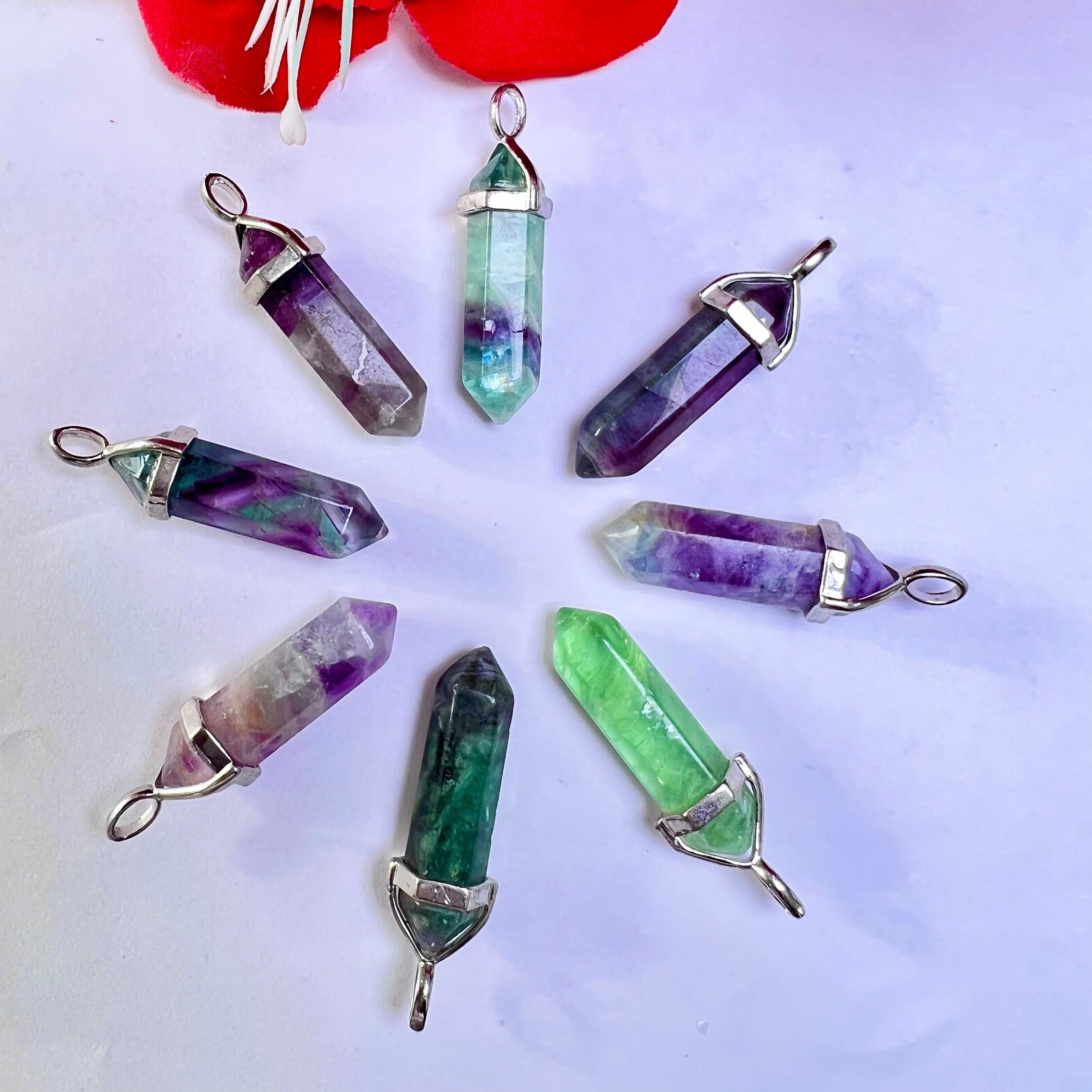 Rainbow Fluorite Stone Healing Double Terminated Point Pendant With Silver Plated Bail Natural stone Pencil Point Pendant