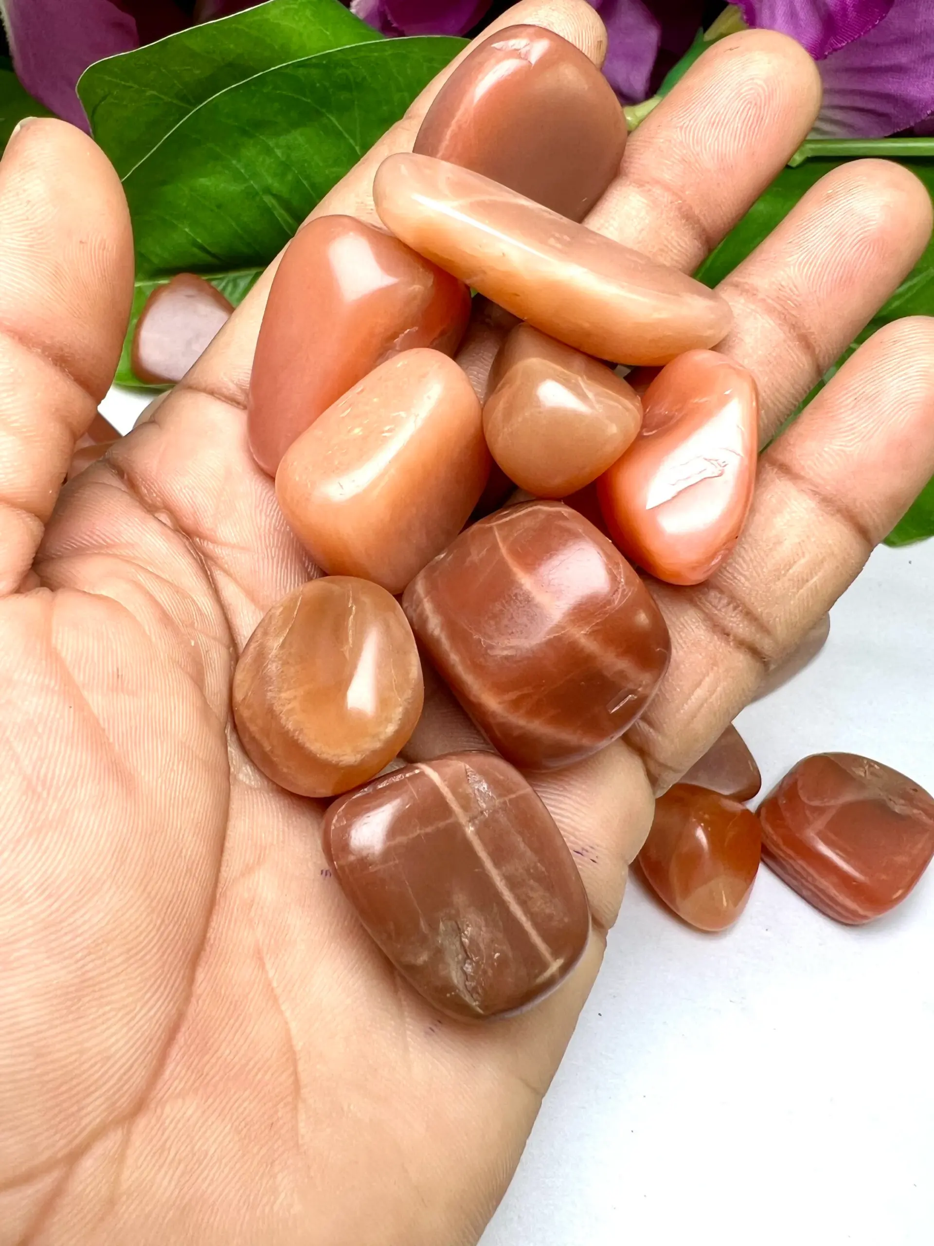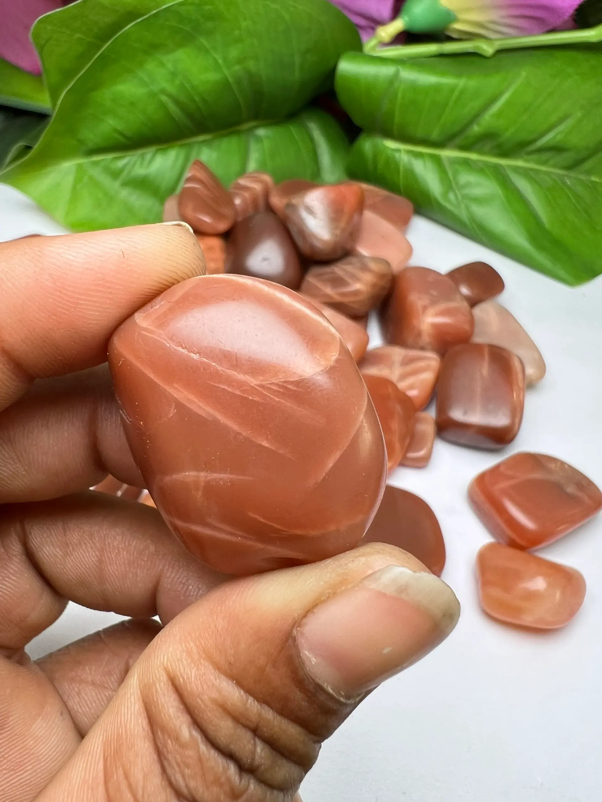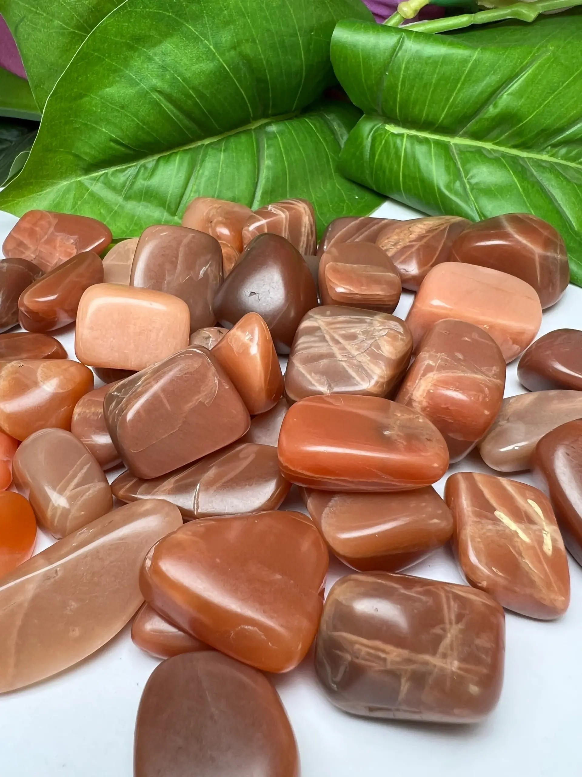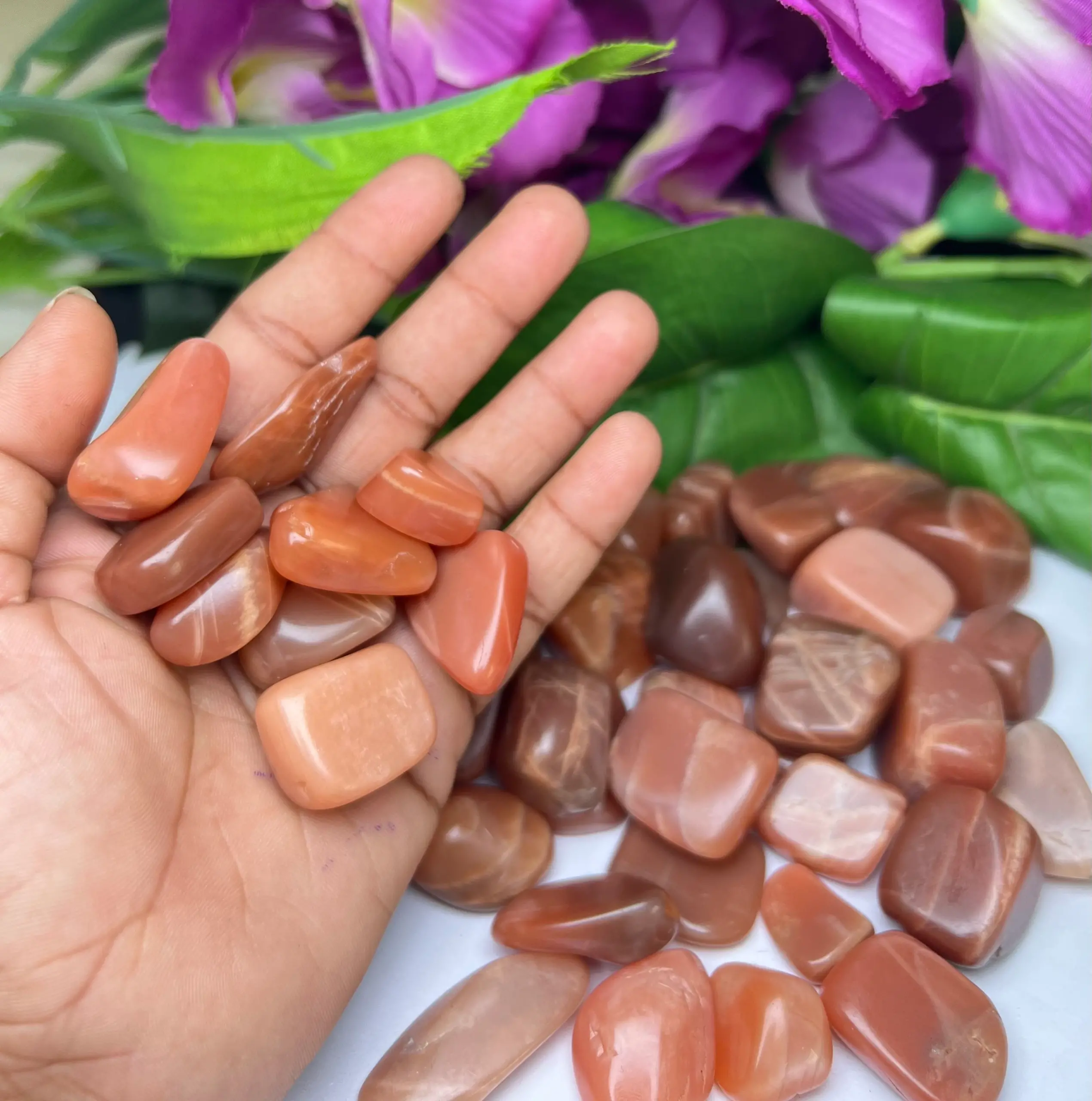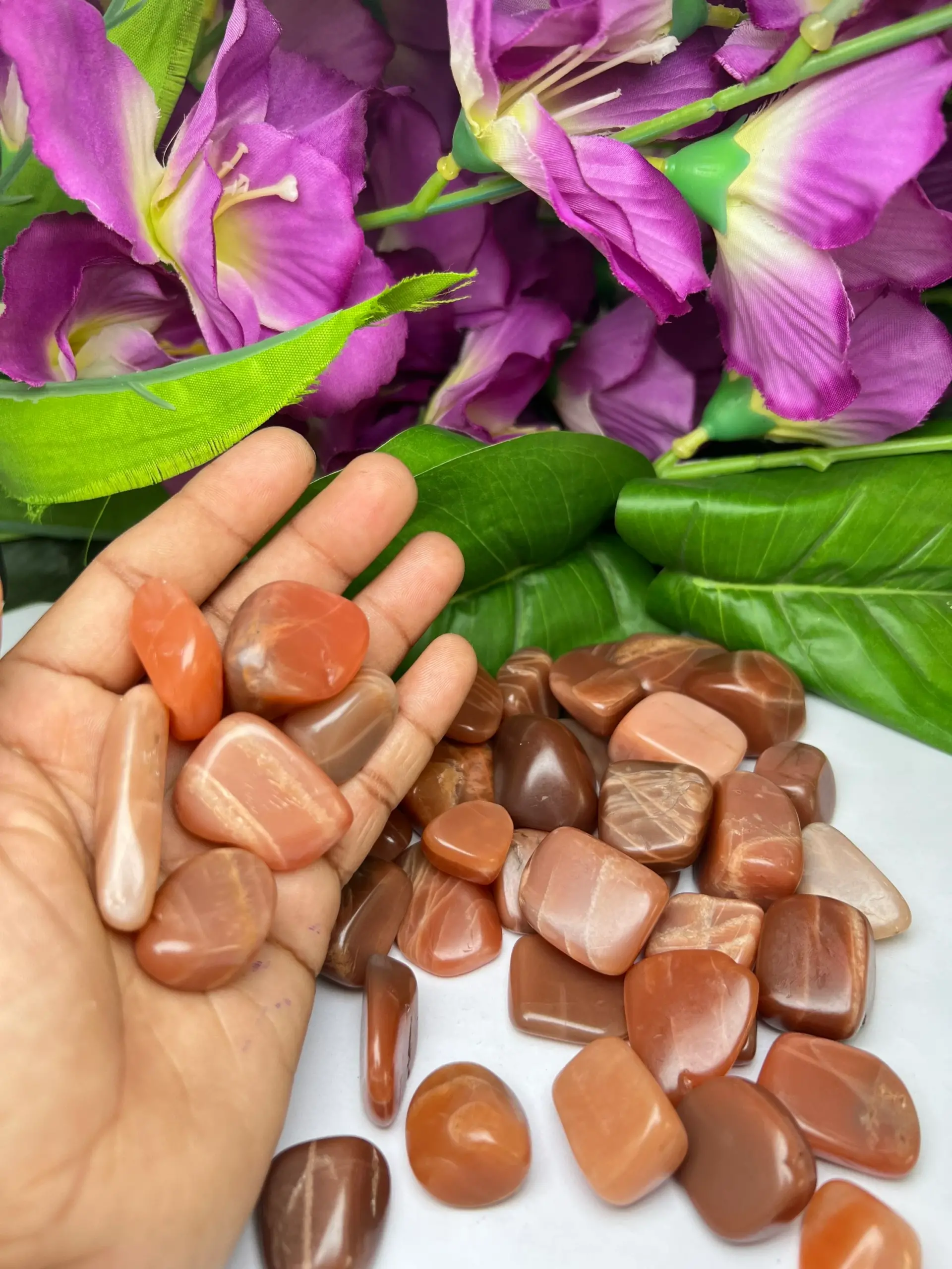 RED ORANGE Moonstone Tumbled Stones Healing Crystals in pack sizes of 1,3,5, and 10 Pieces Quality AAAAA +++++