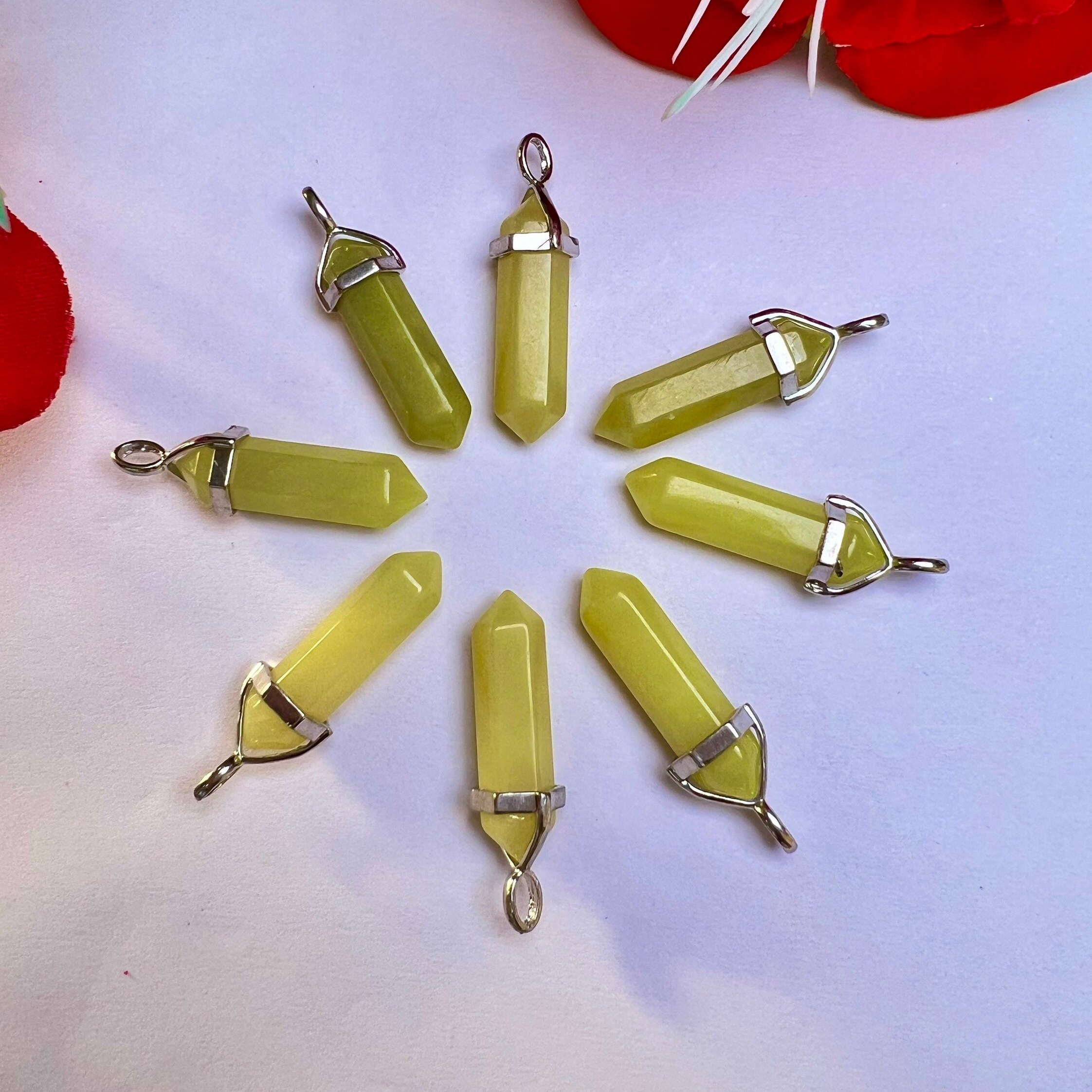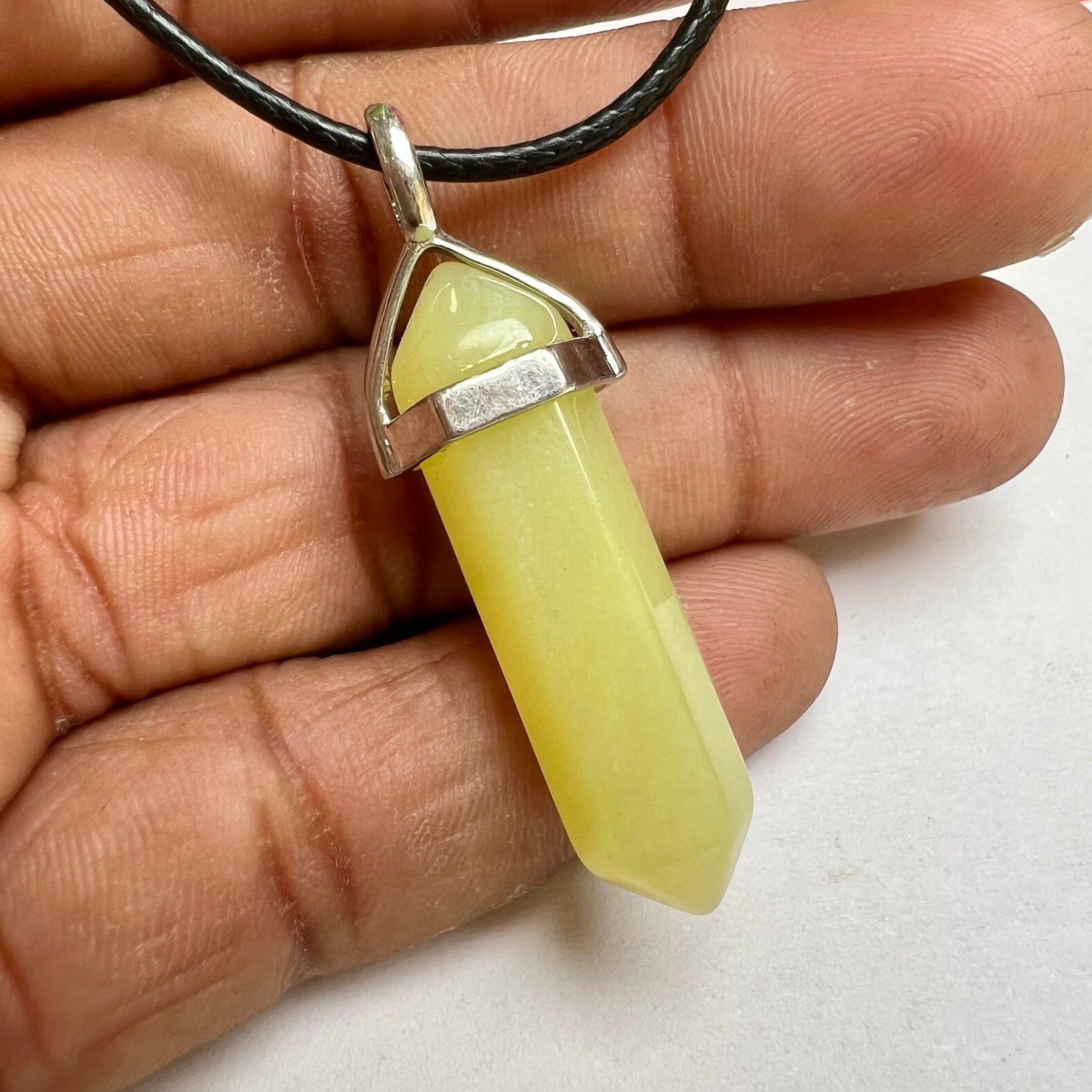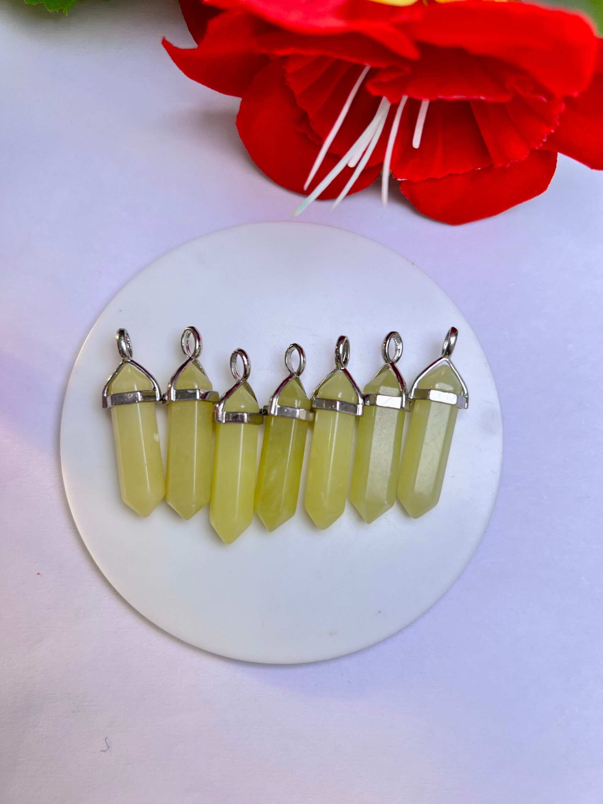 Serpentine Stone Healing Double Terminated Point Pendant With Silver Plated Bail Natural stone Pencil Point Pendant