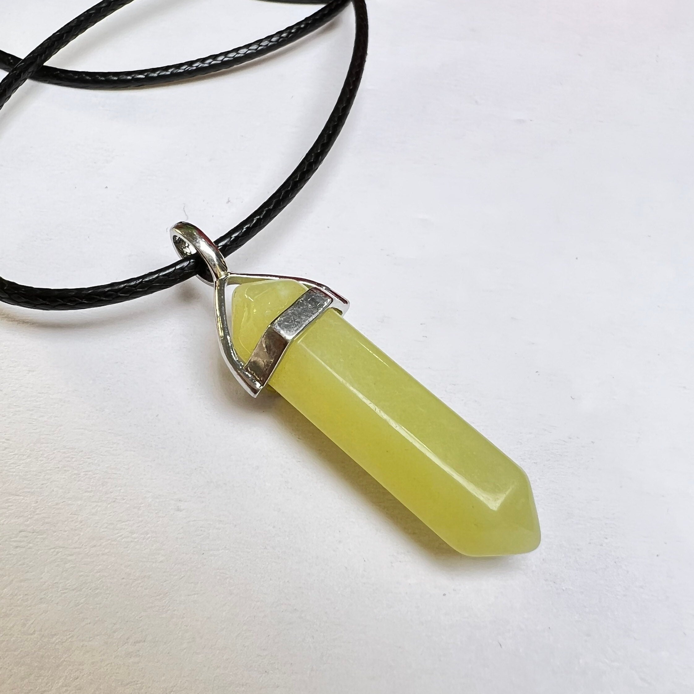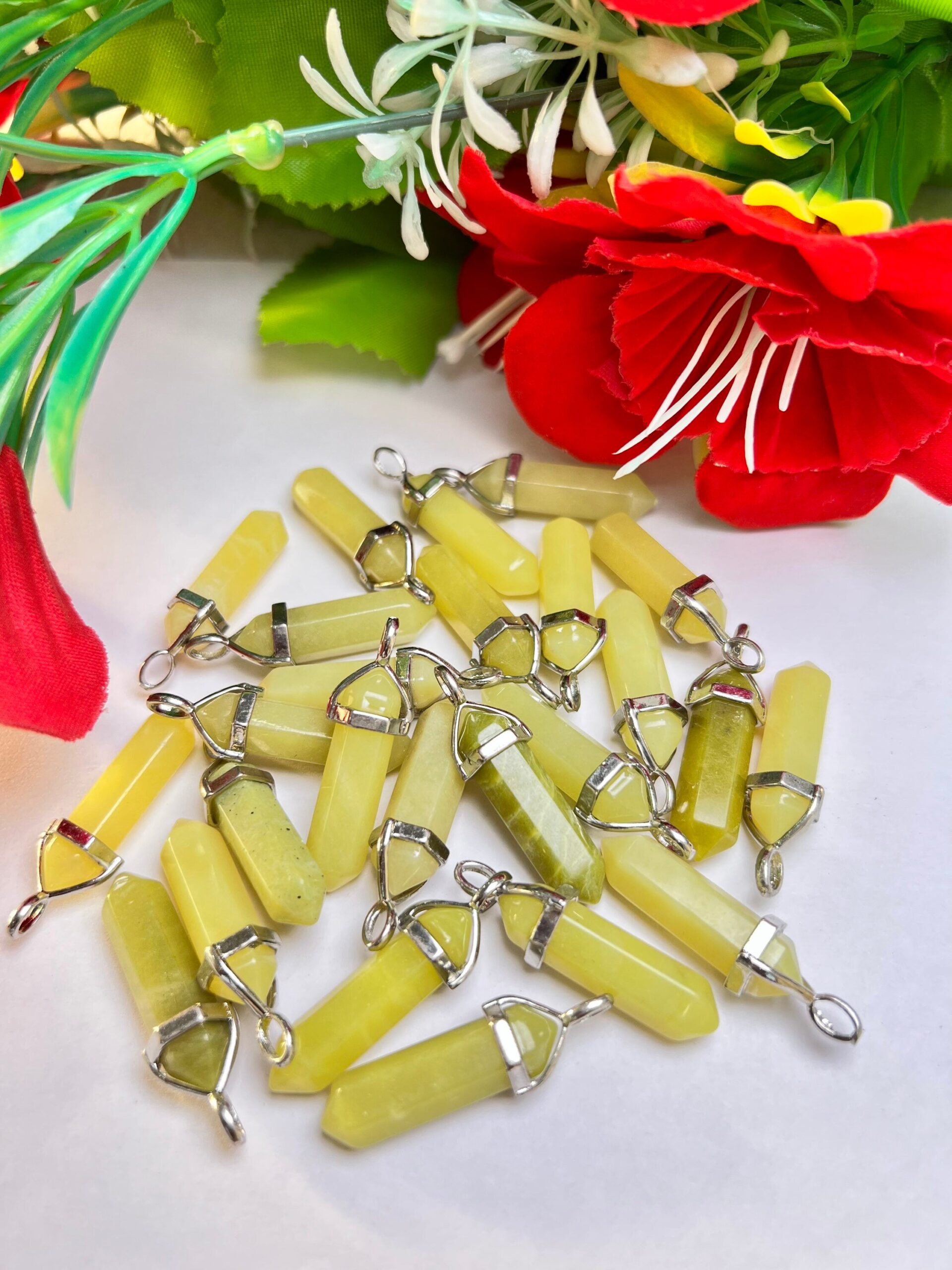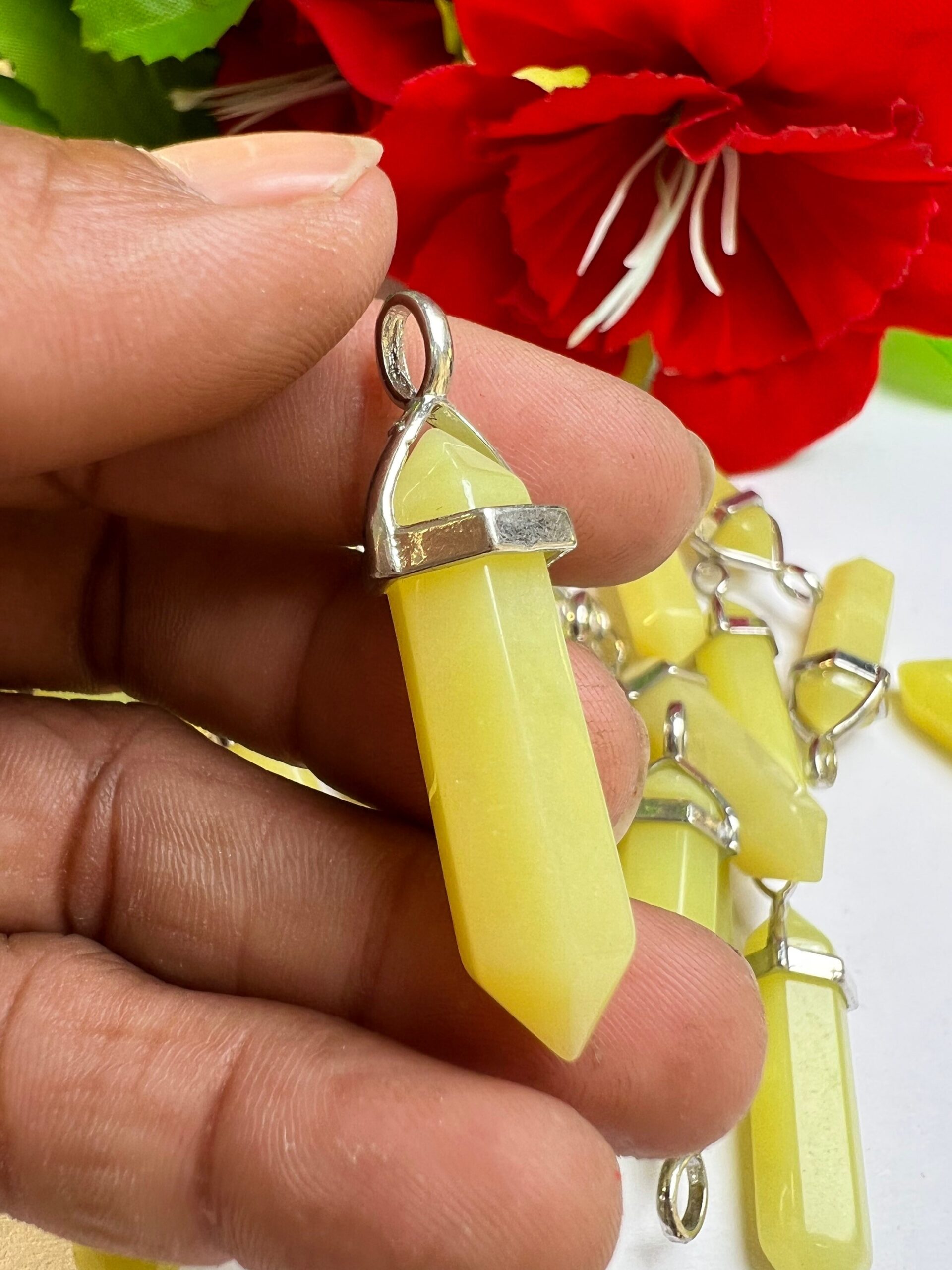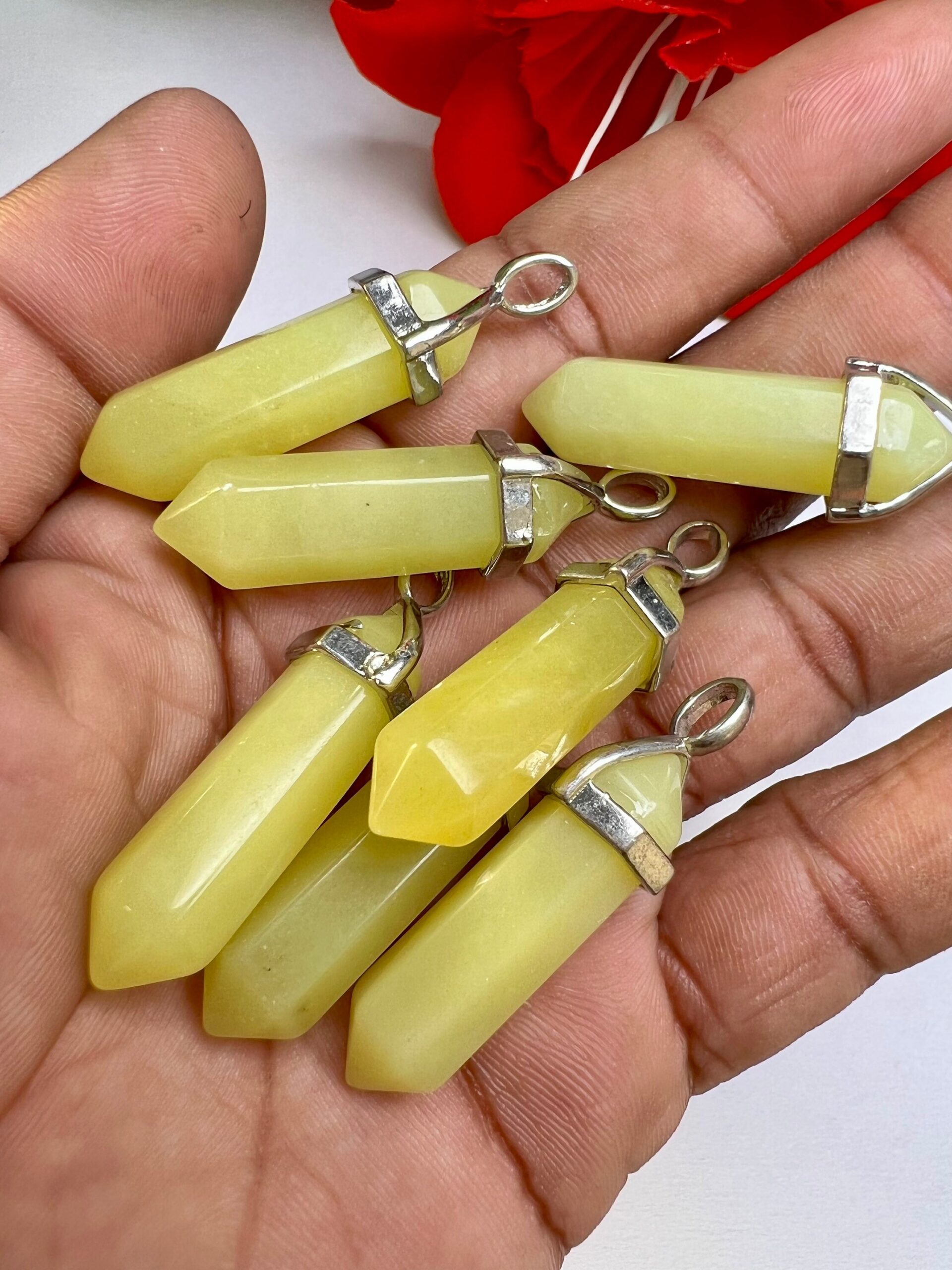 Serpentine Stone Healing Double Terminated Point Pendant With Silver Plated Bail Natural stone Pencil Point Pendant