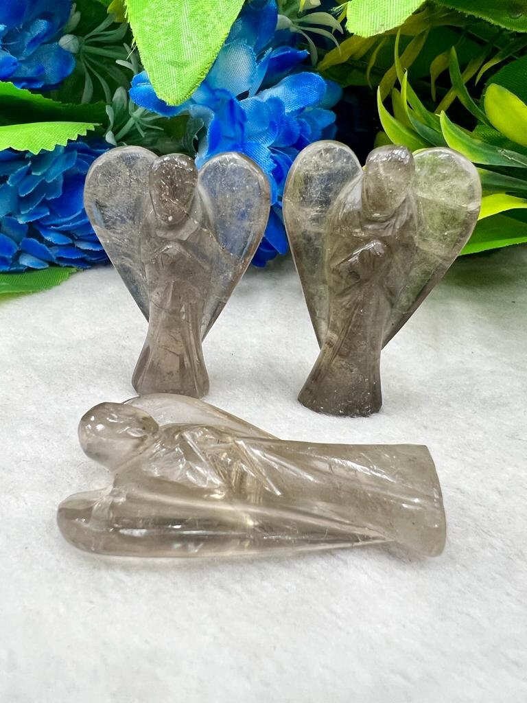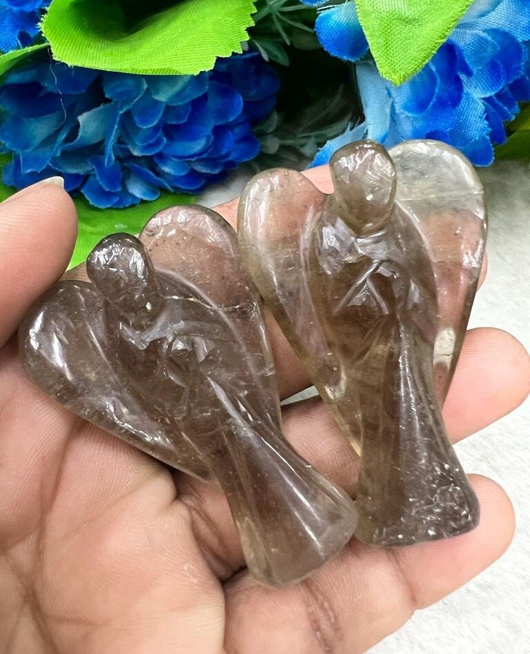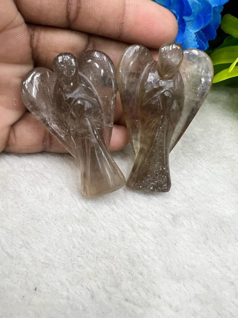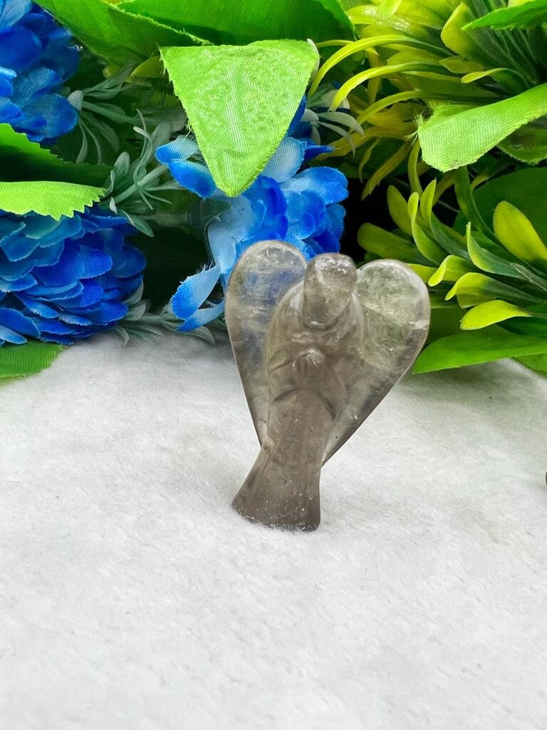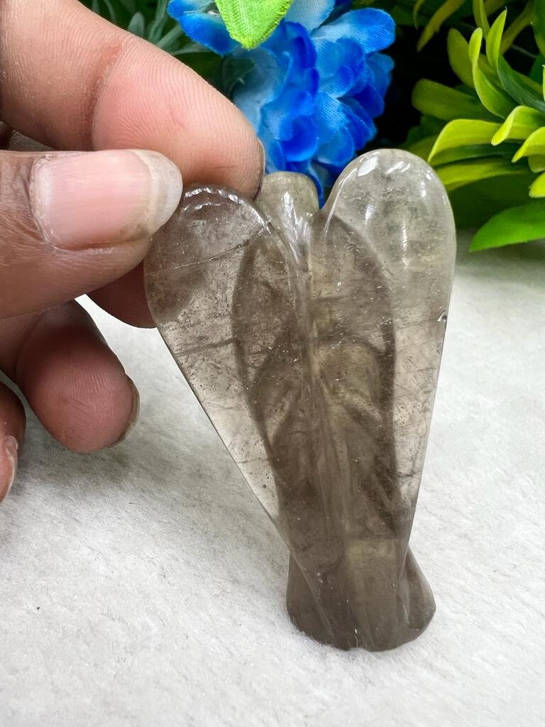 Smoky Quartz Stone 2 inch free standing guardian angel crystal Reiki energy blessed handcarved Pocket Angel Angelic connection