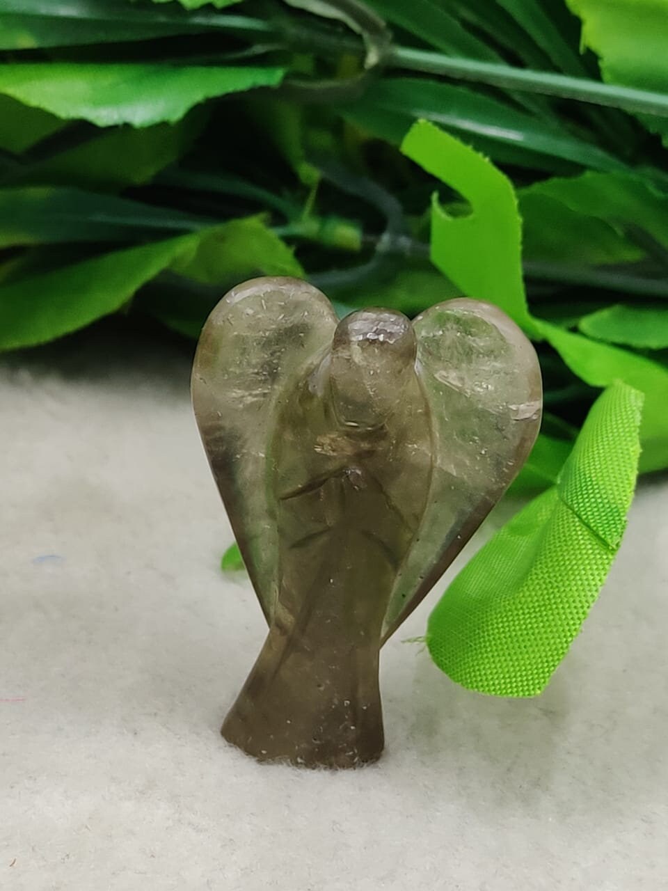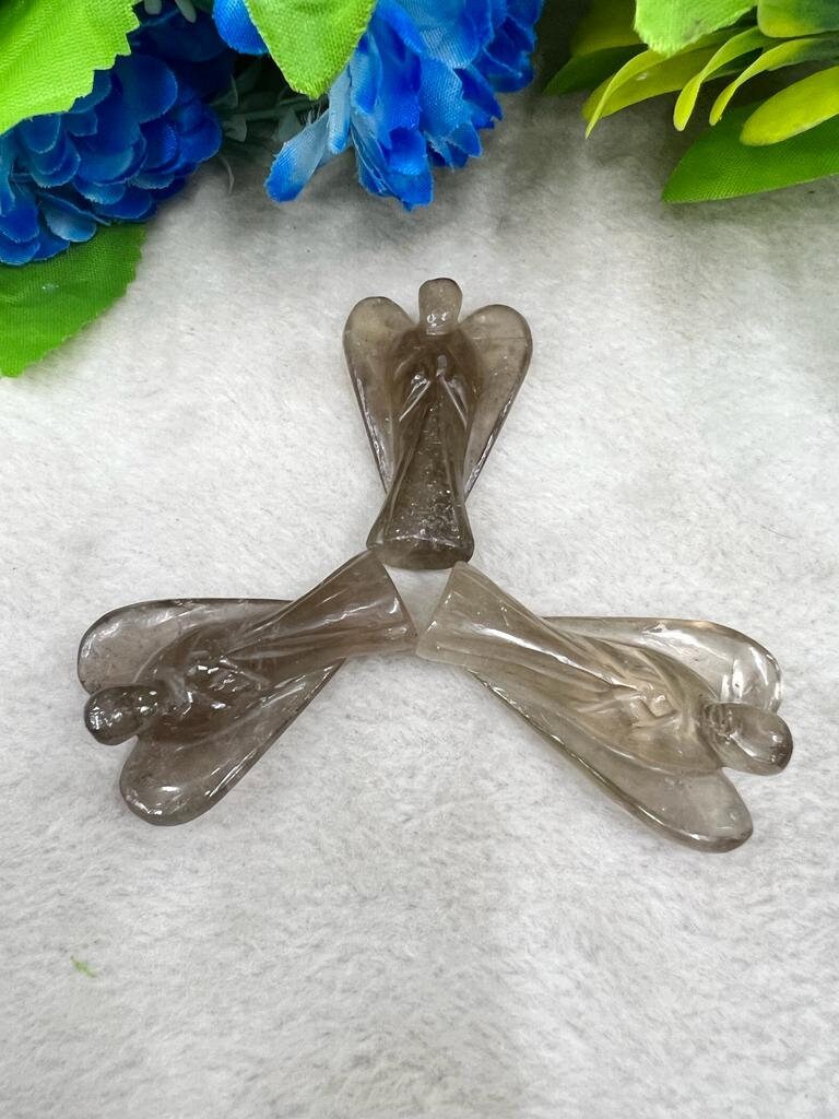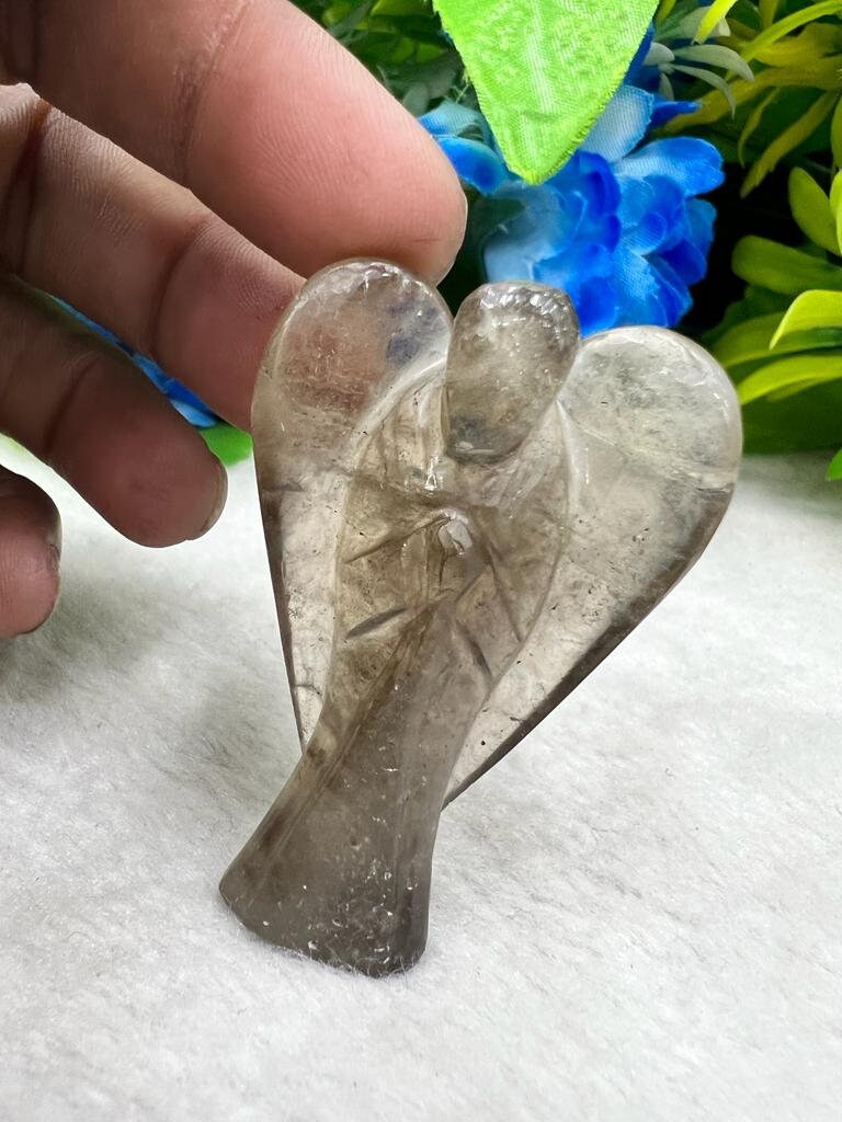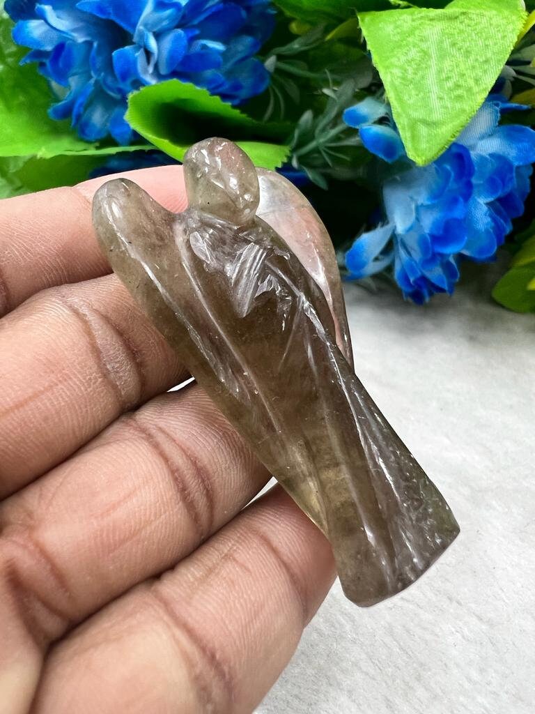 Smoky Quartz Stone 2 inch free standing guardian angel crystal Reiki energy blessed handcarved Pocket Angel Angelic connection
