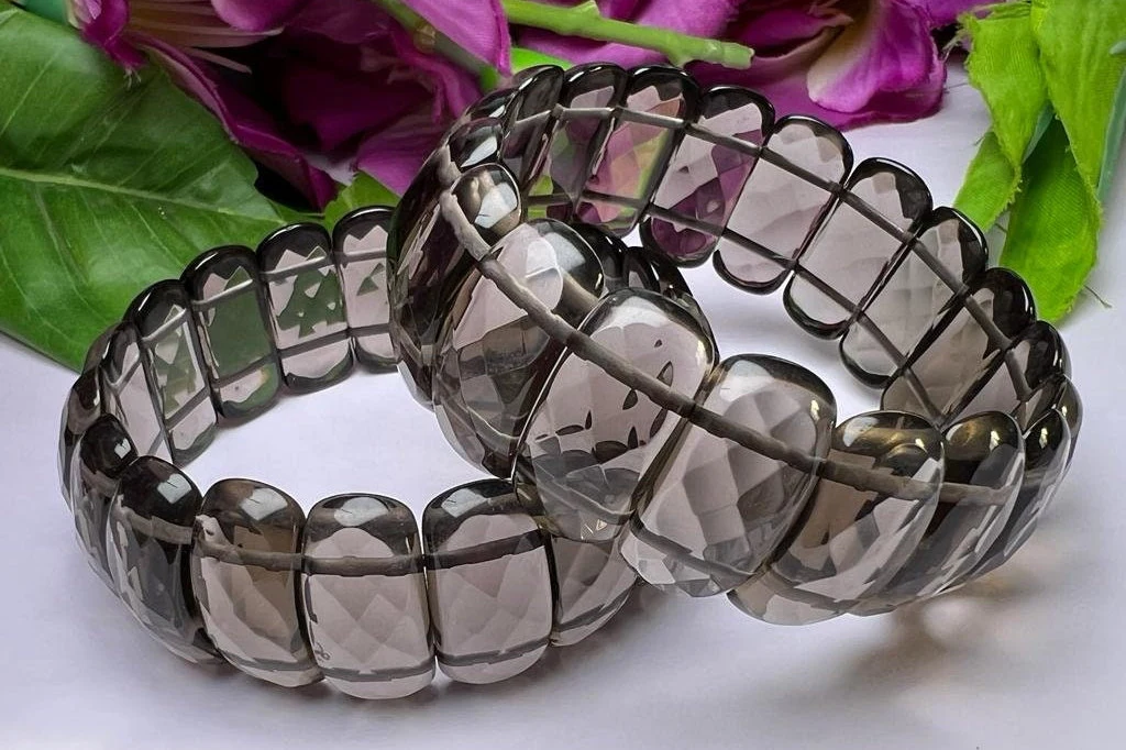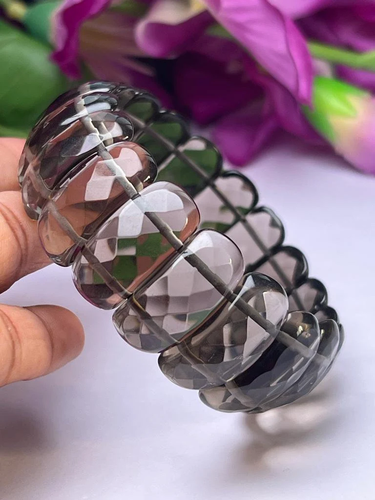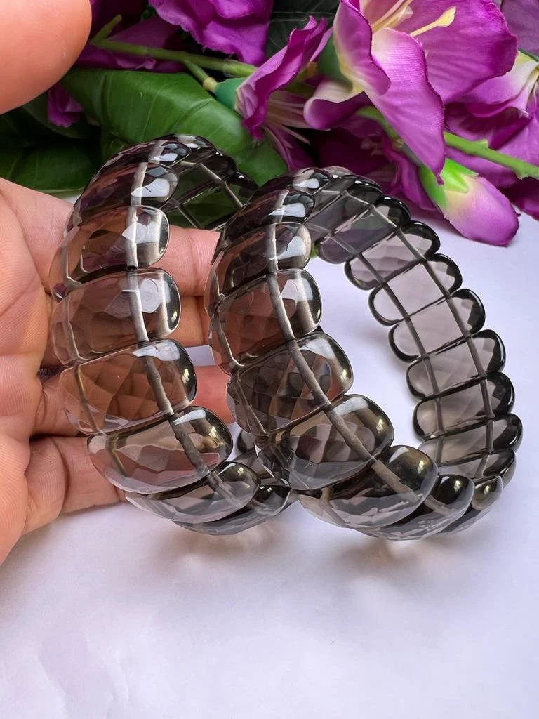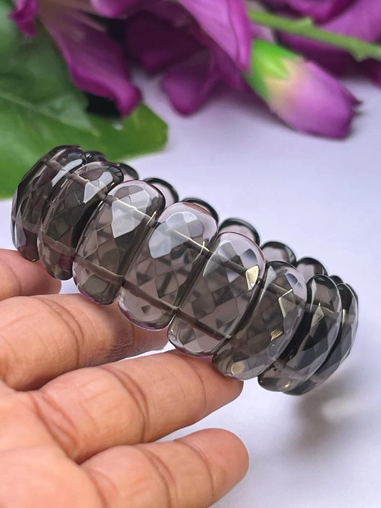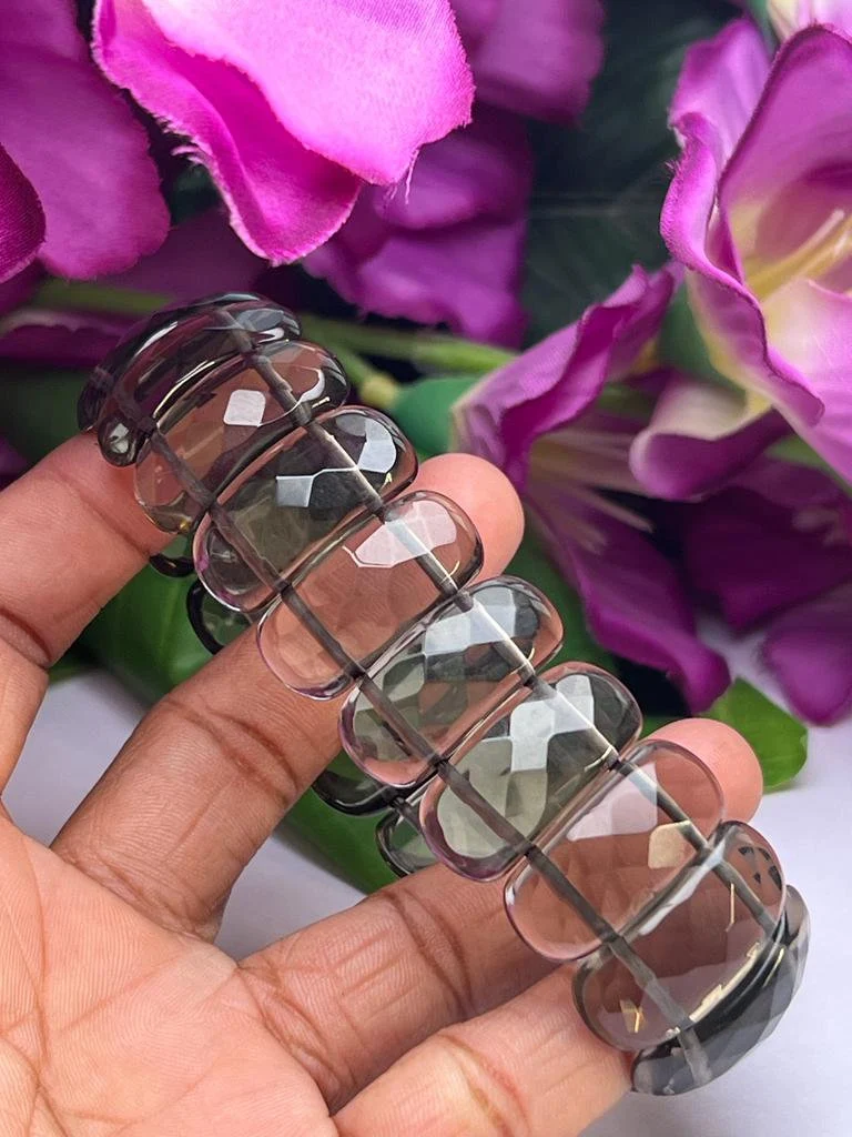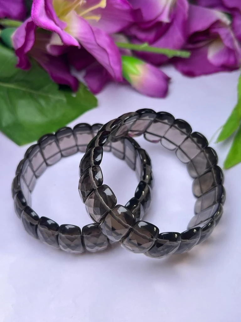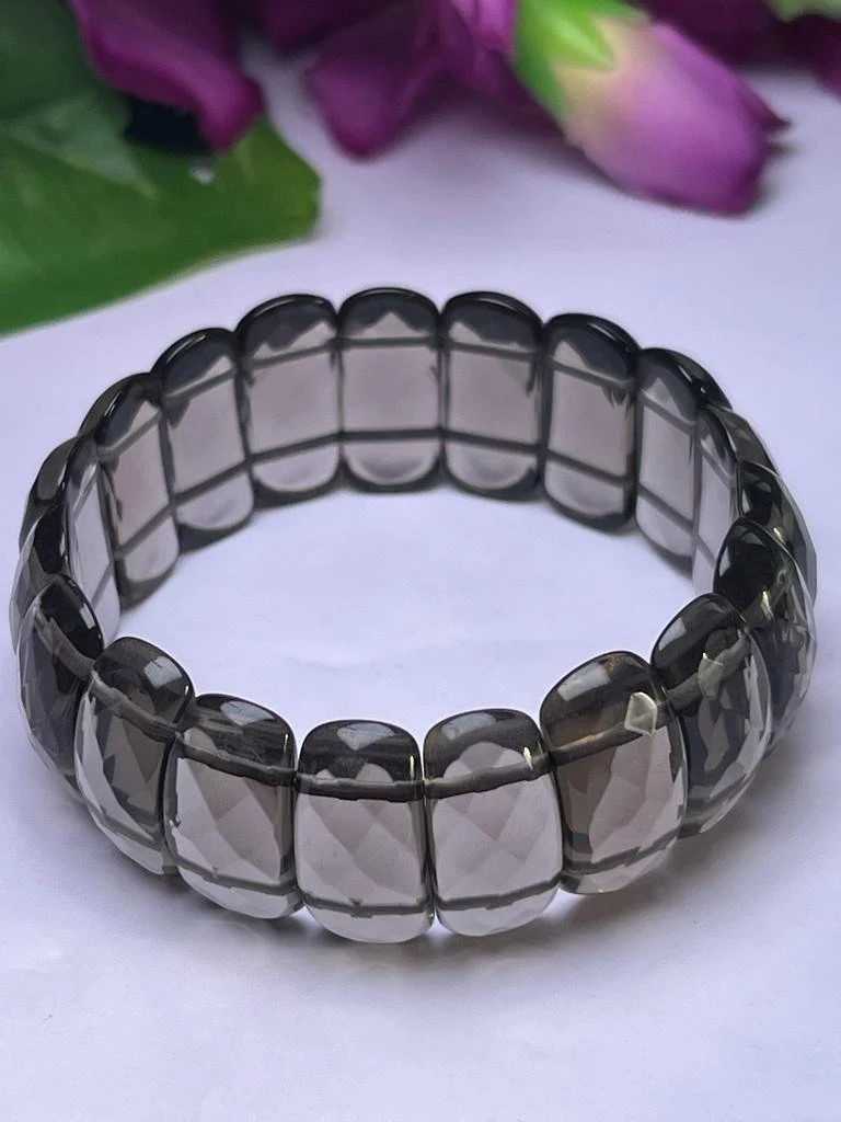Smoky Quartz Stone Rectangle Beaded Bracelet 25 MM