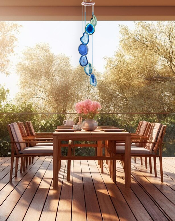 Teal Blue Agate Slices Windchime Feng Shui Vastu , Home & Office Décor, Housewarming Gift