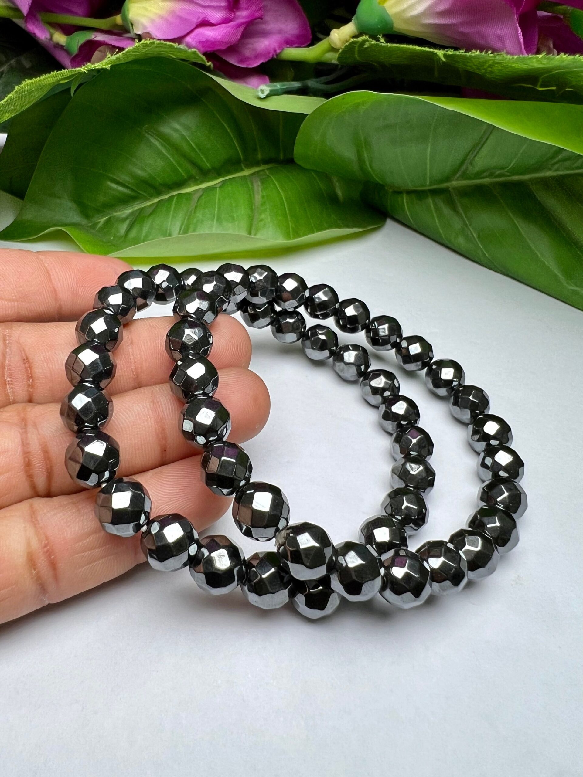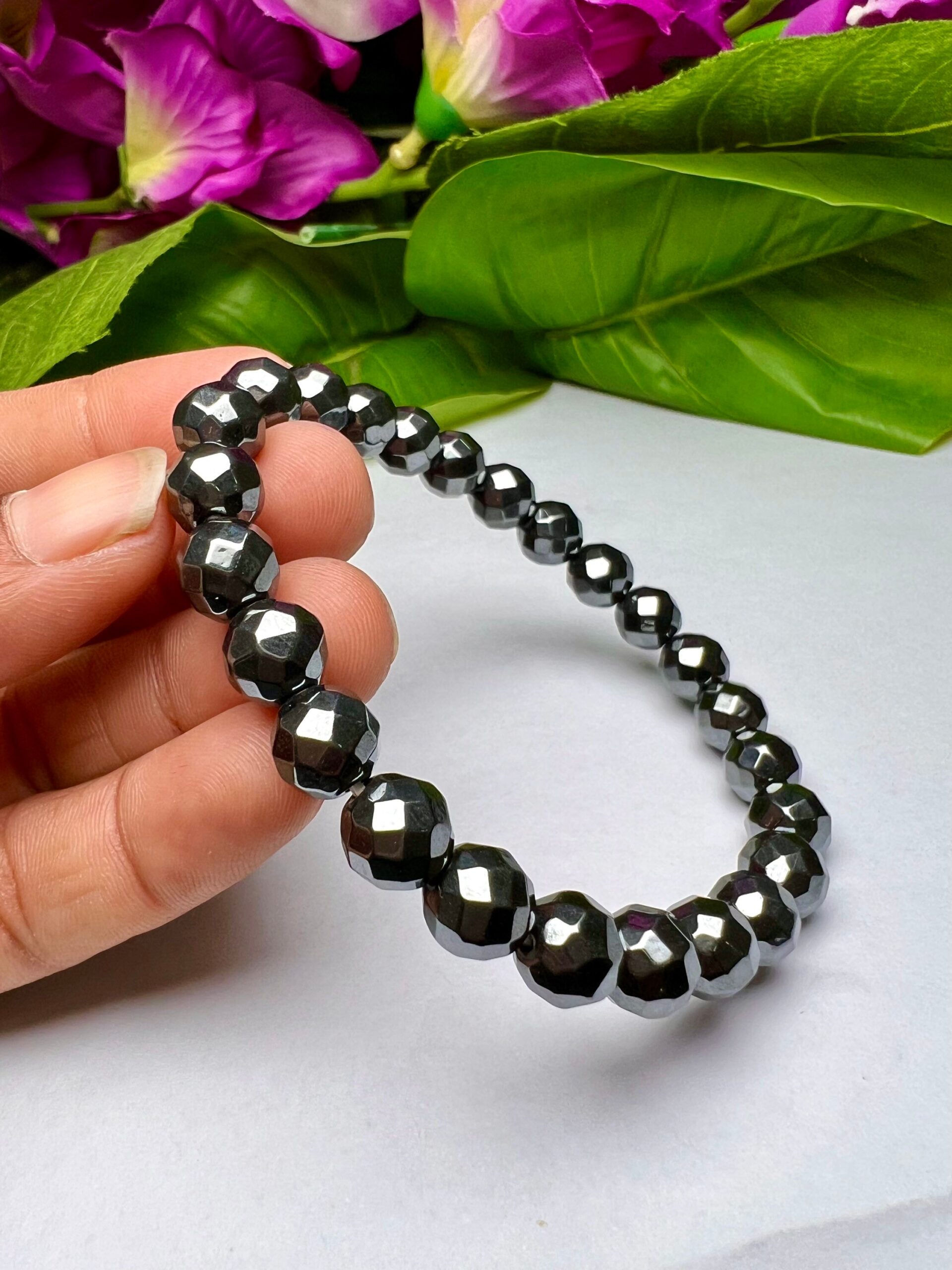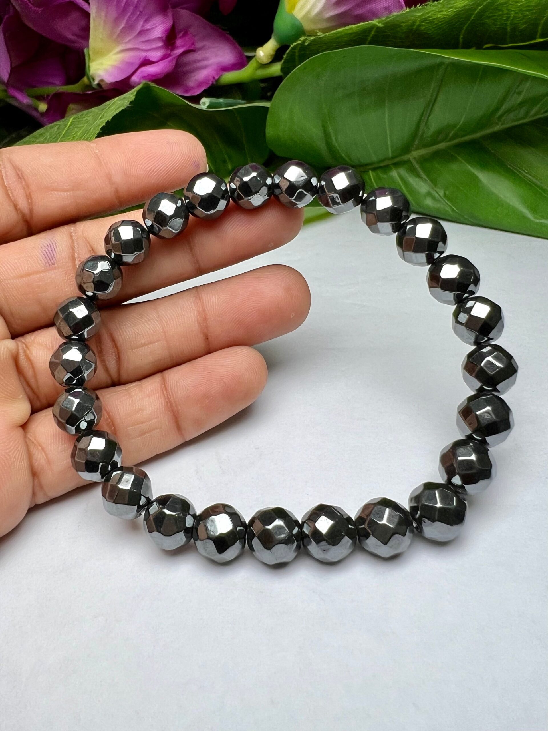 Terahertz Faceted Beaded Crystal Stone Bracelet 8 MM