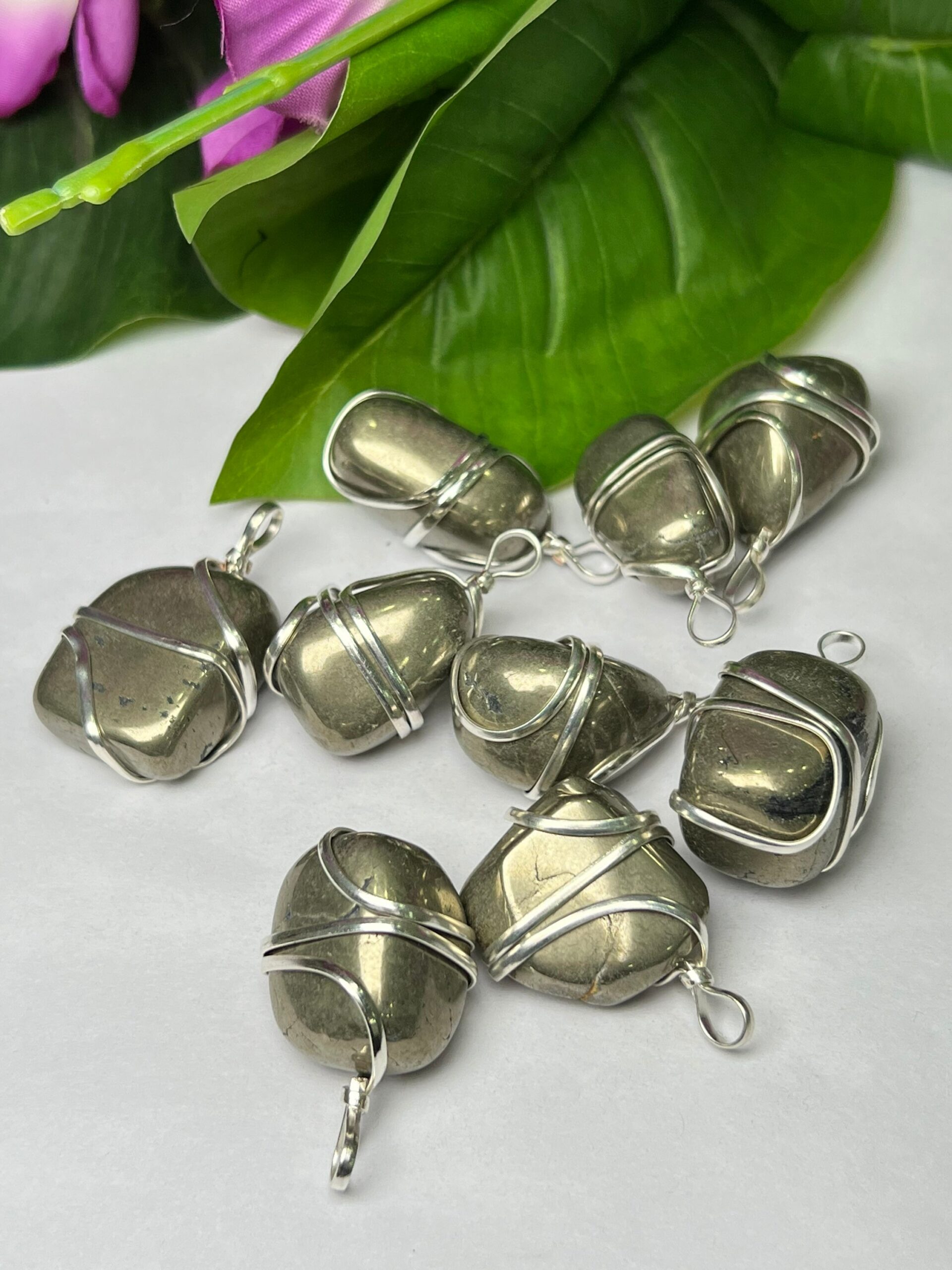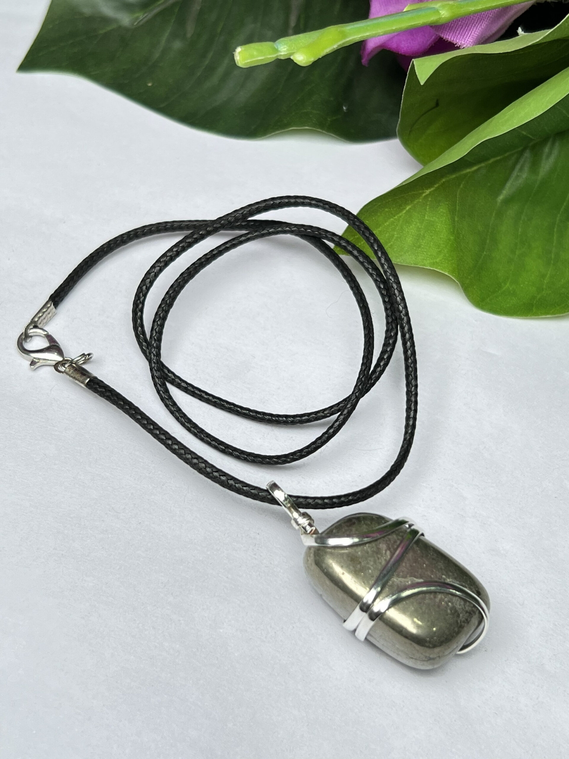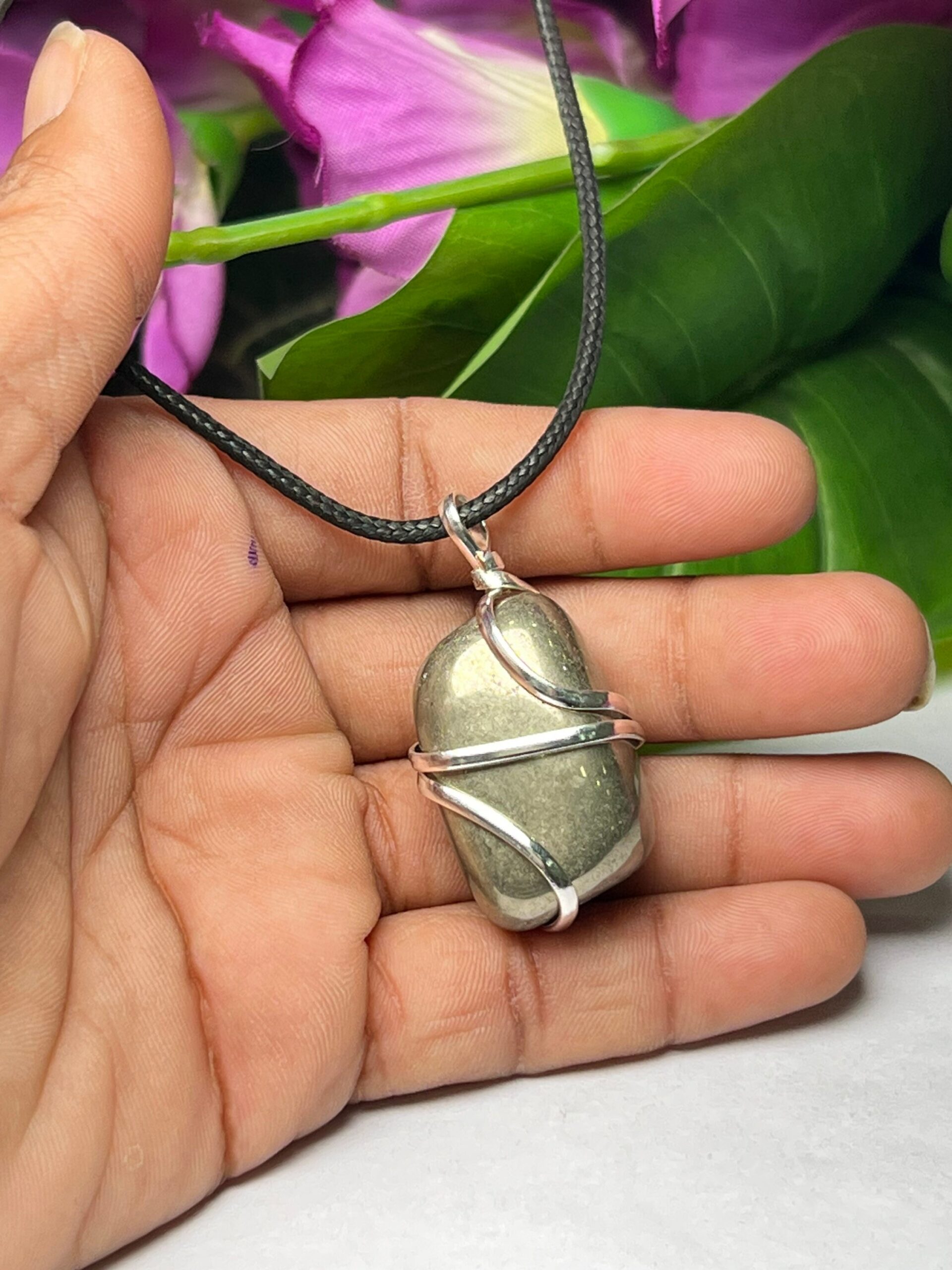 Wire Wrapped Golden Pyrite Tumbled Stone Pendant Crystal Pendant, Tumbled Stone Necklace