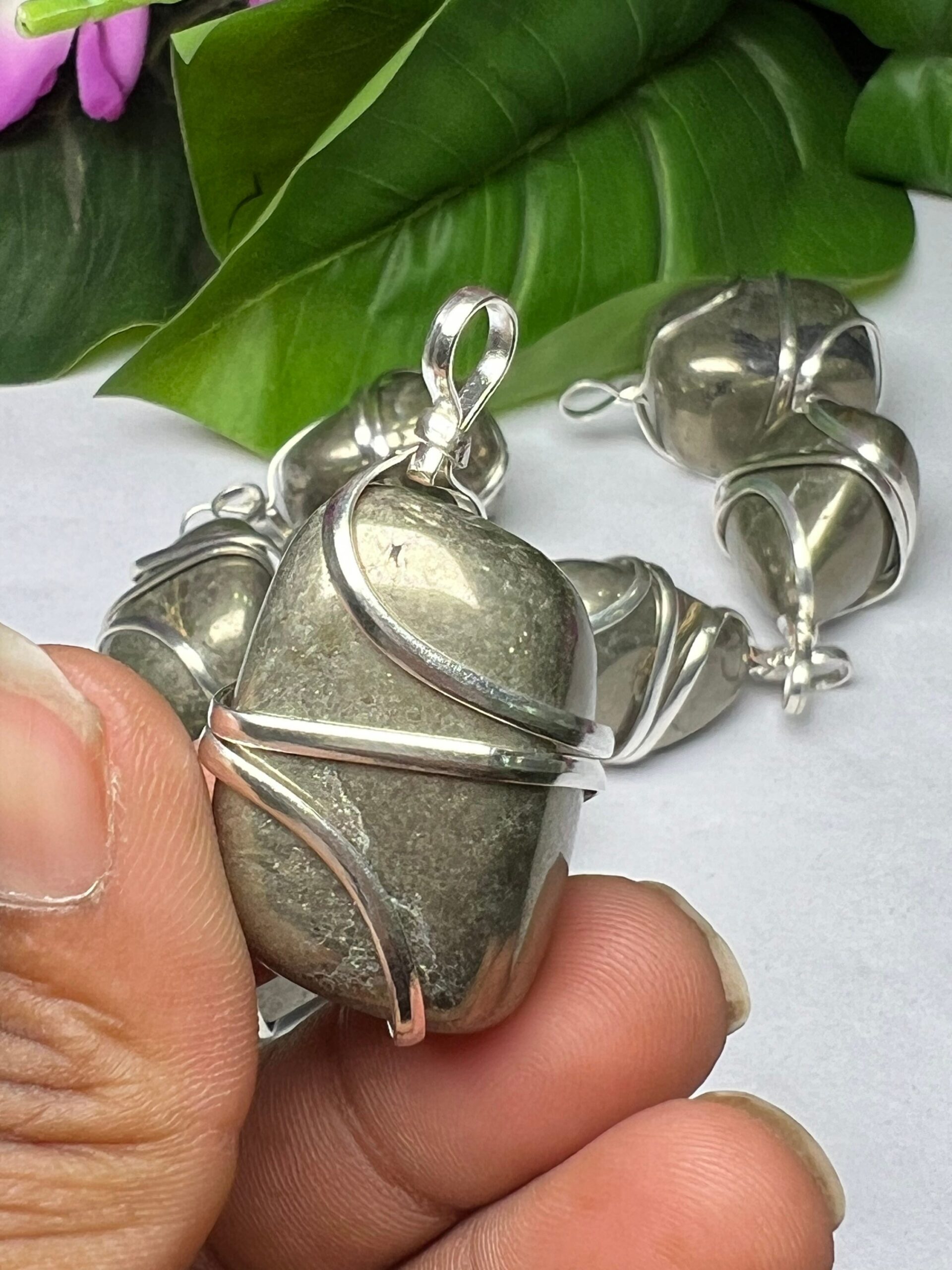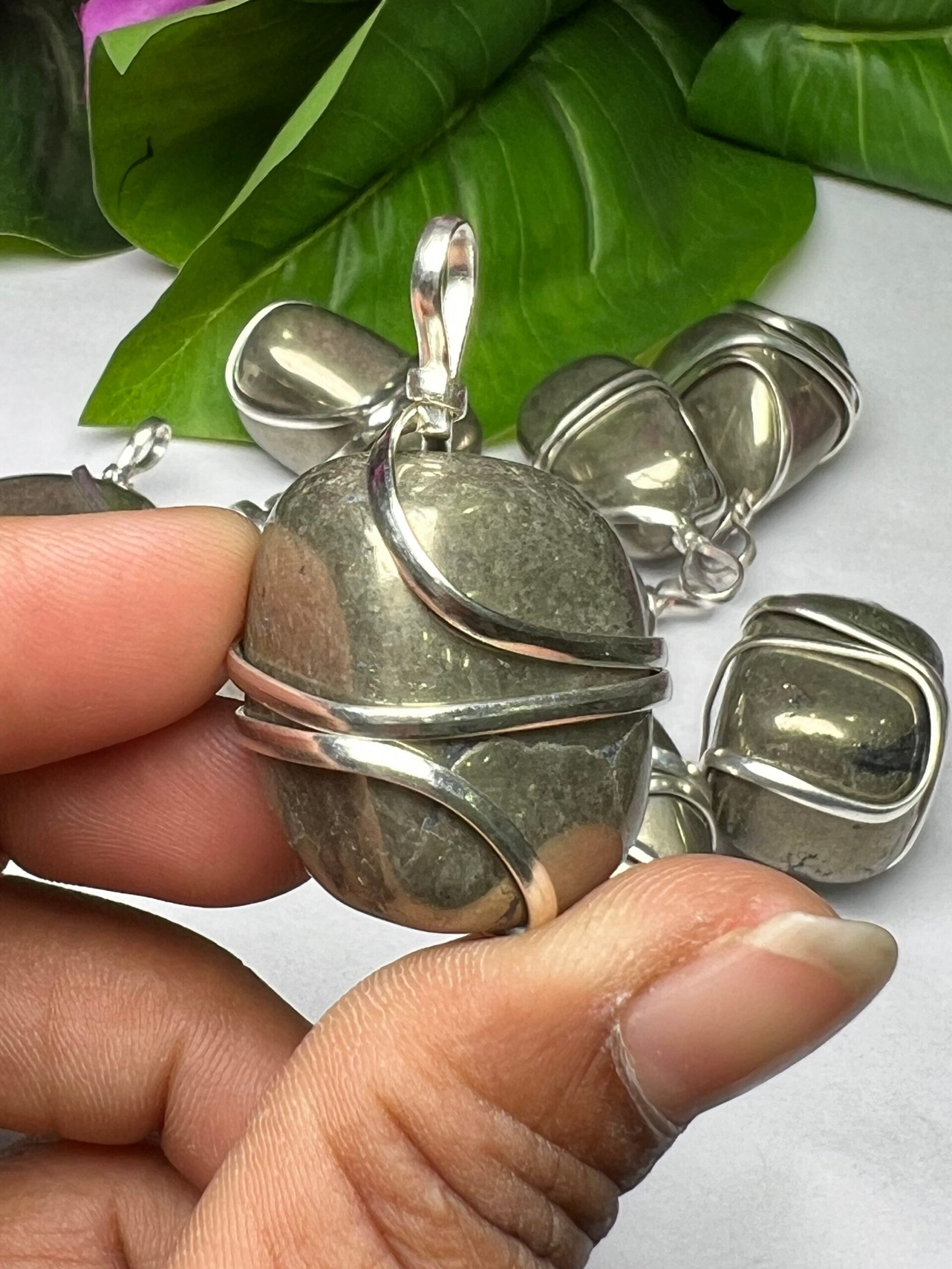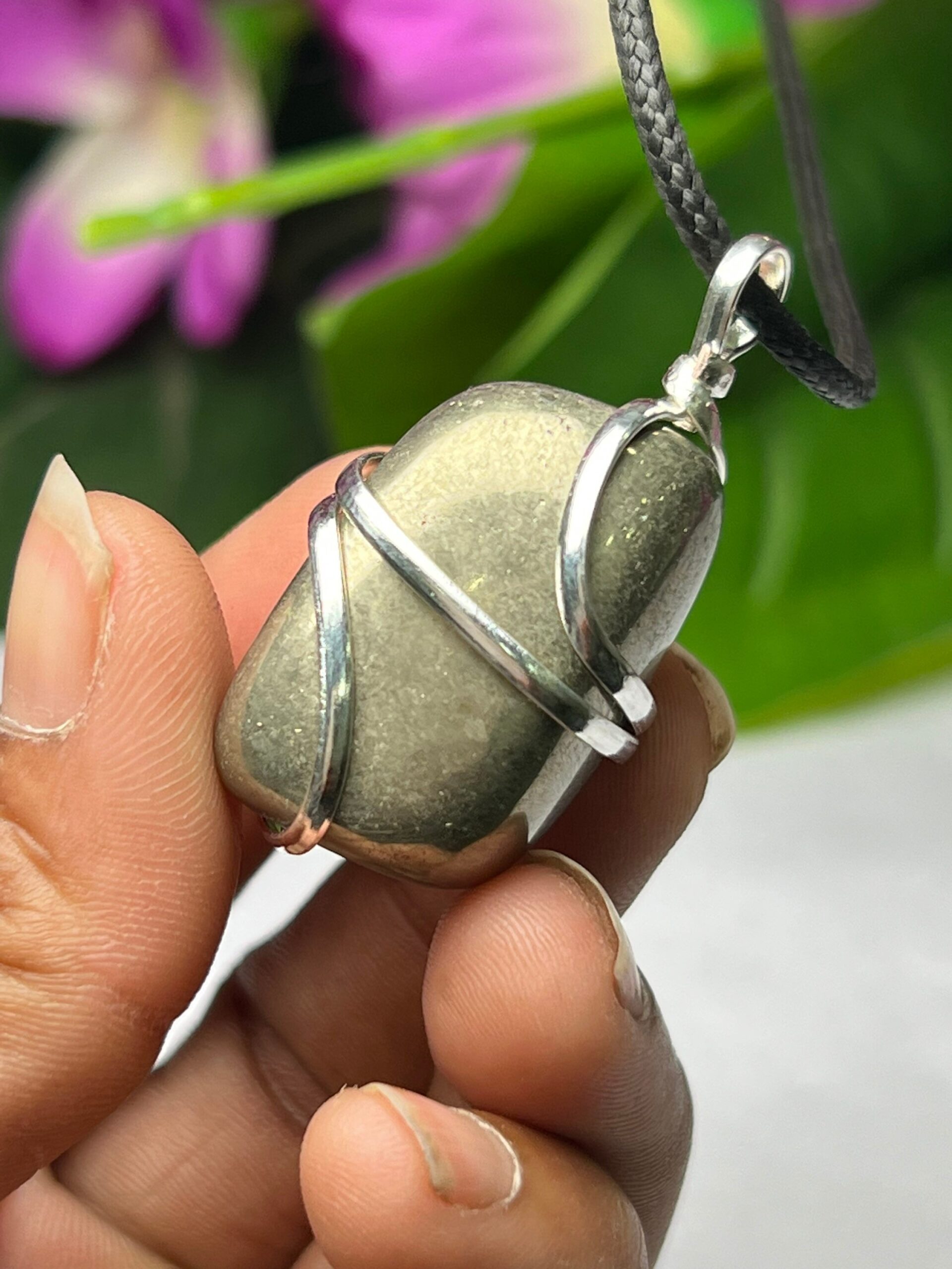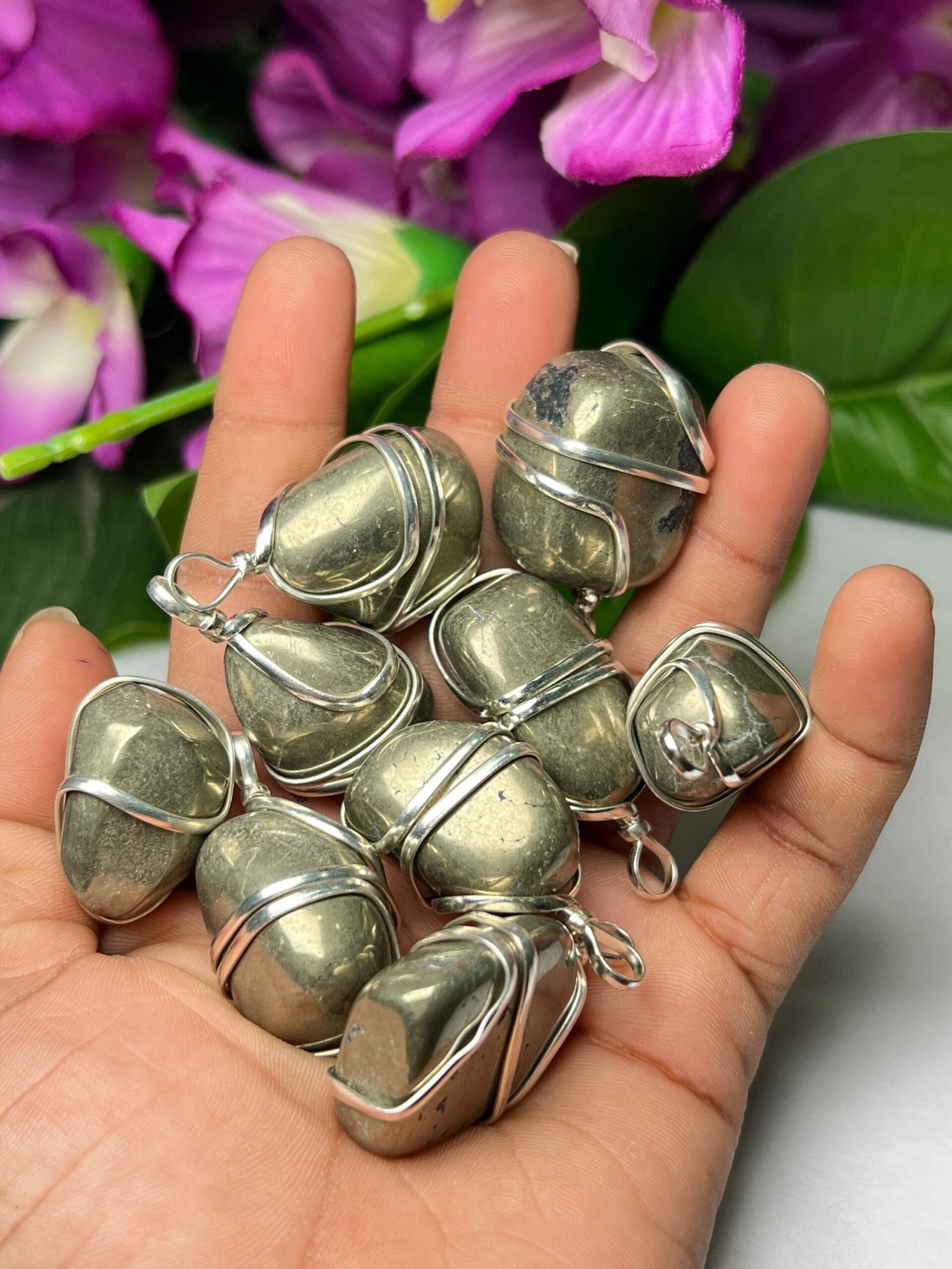 Wire Wrapped Golden Pyrite Tumbled Stone Pendant Crystal Pendant, Tumbled Stone Necklace