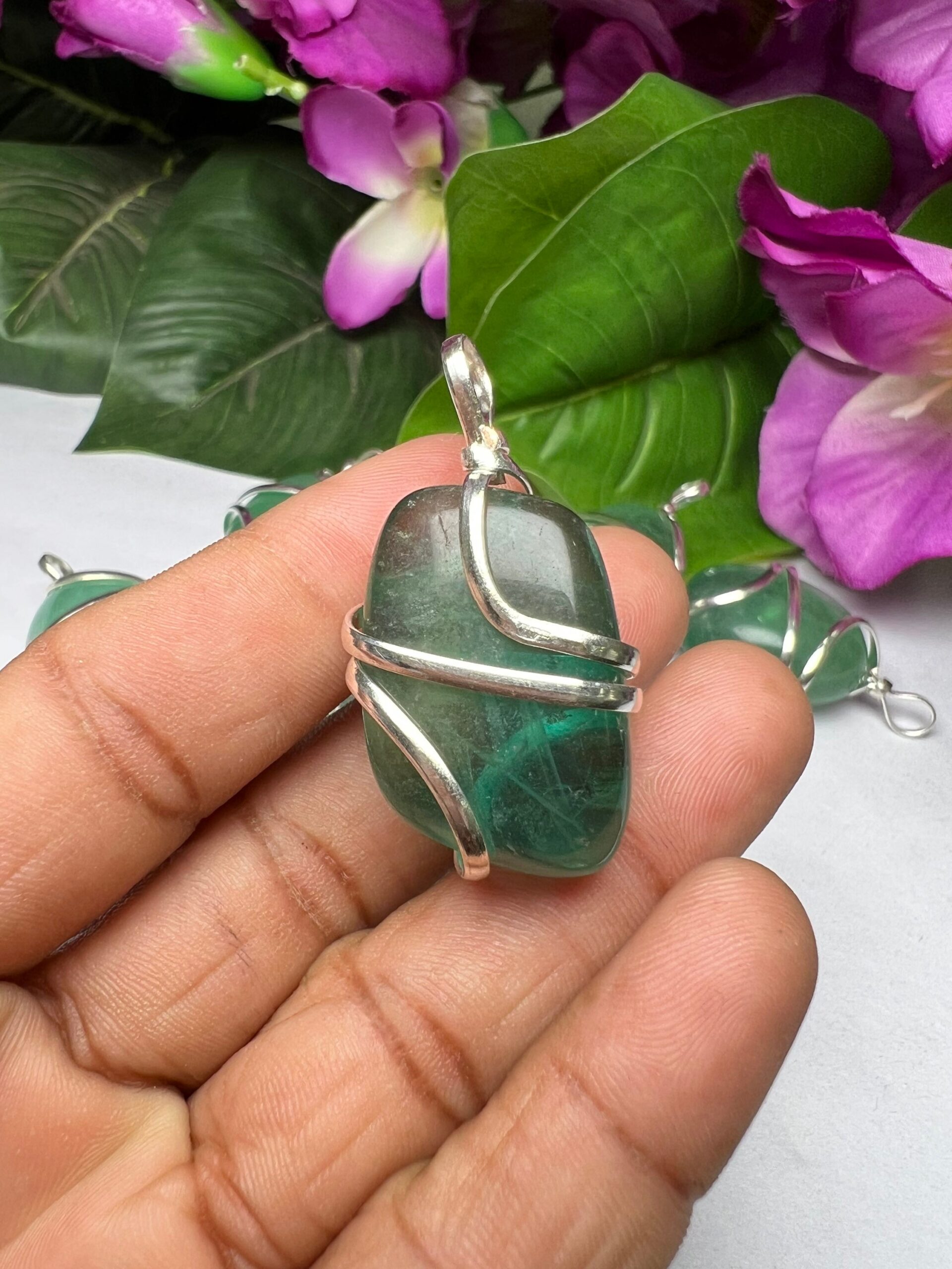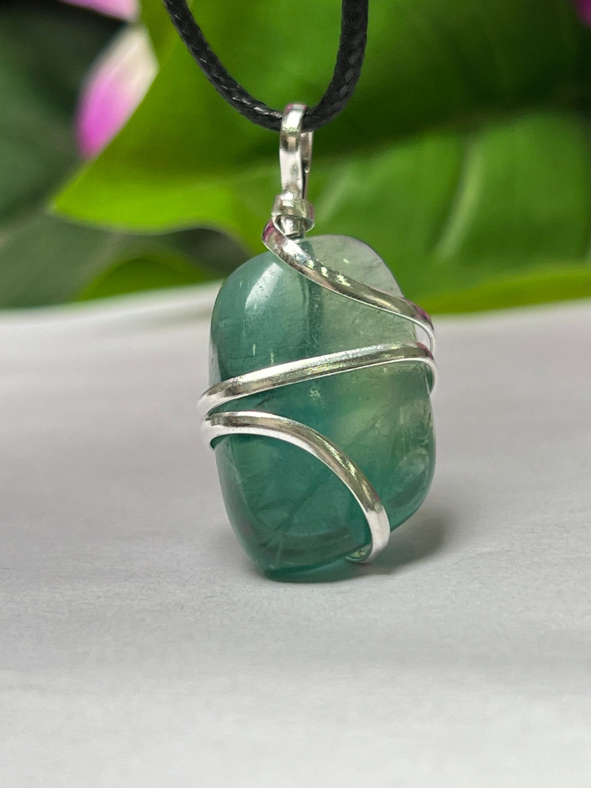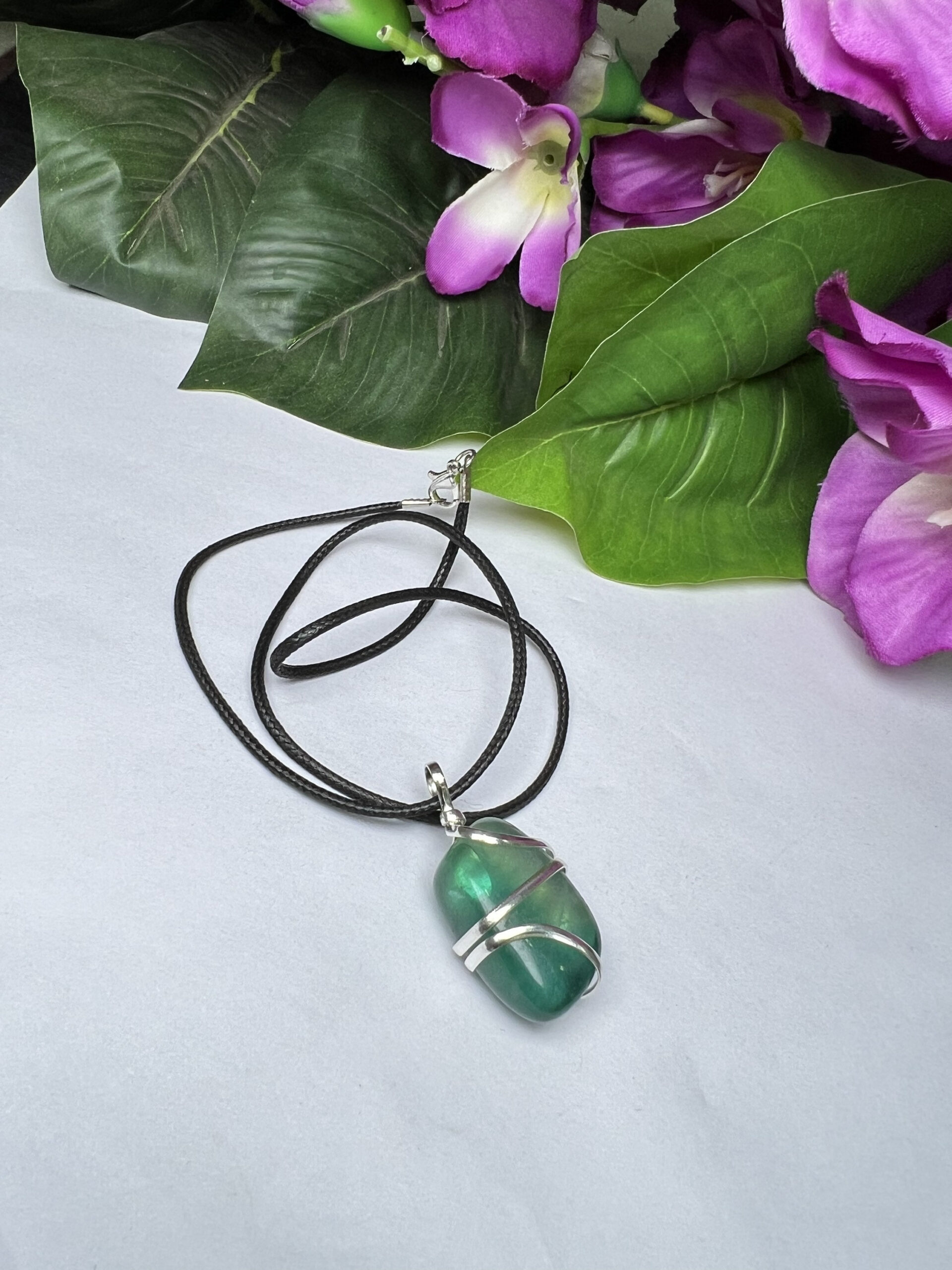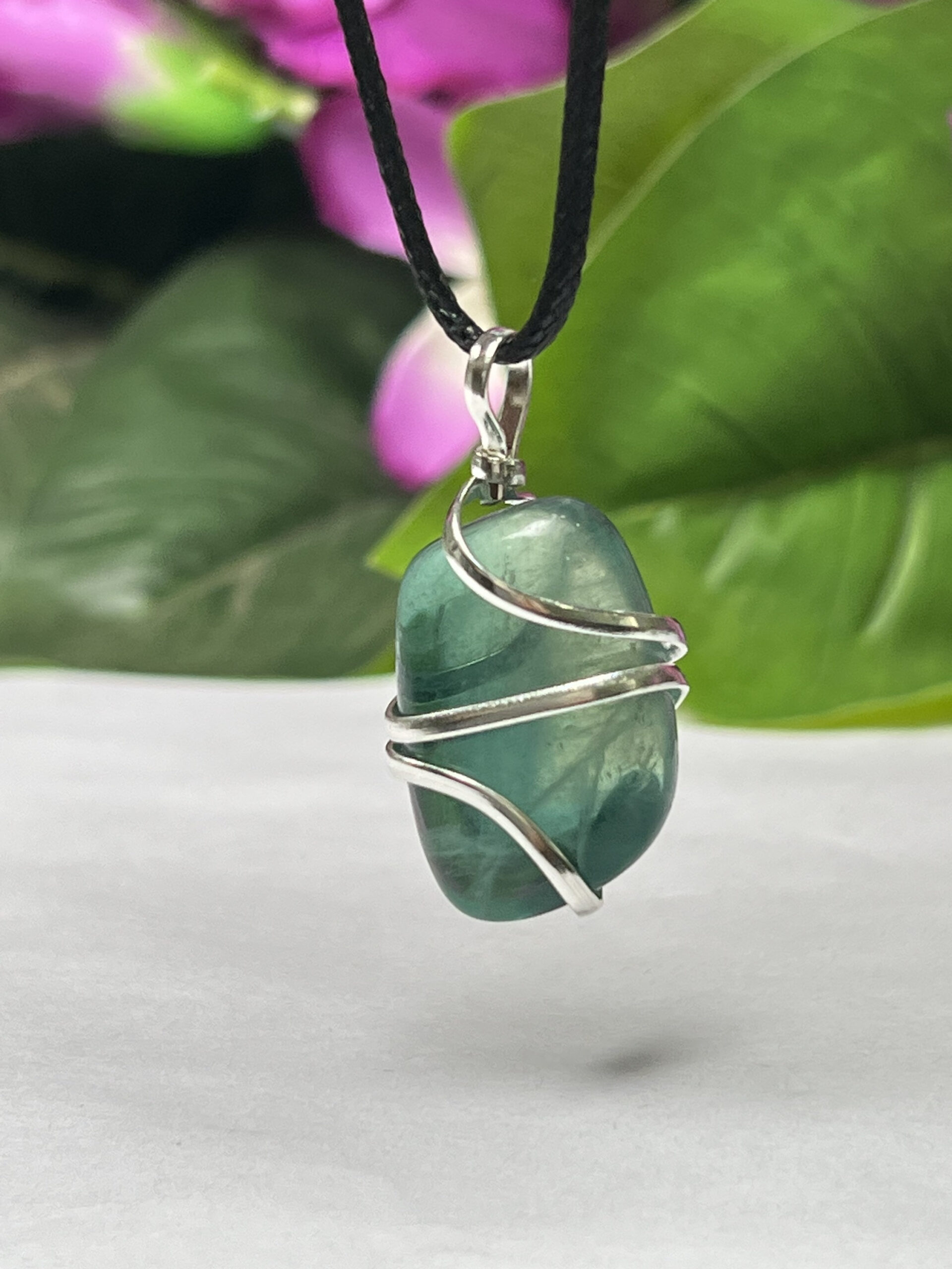 Wire Wrapped Green Fluorite Tumbled Stone Pendant Crystal Pendant, Tumbled Stone Necklace