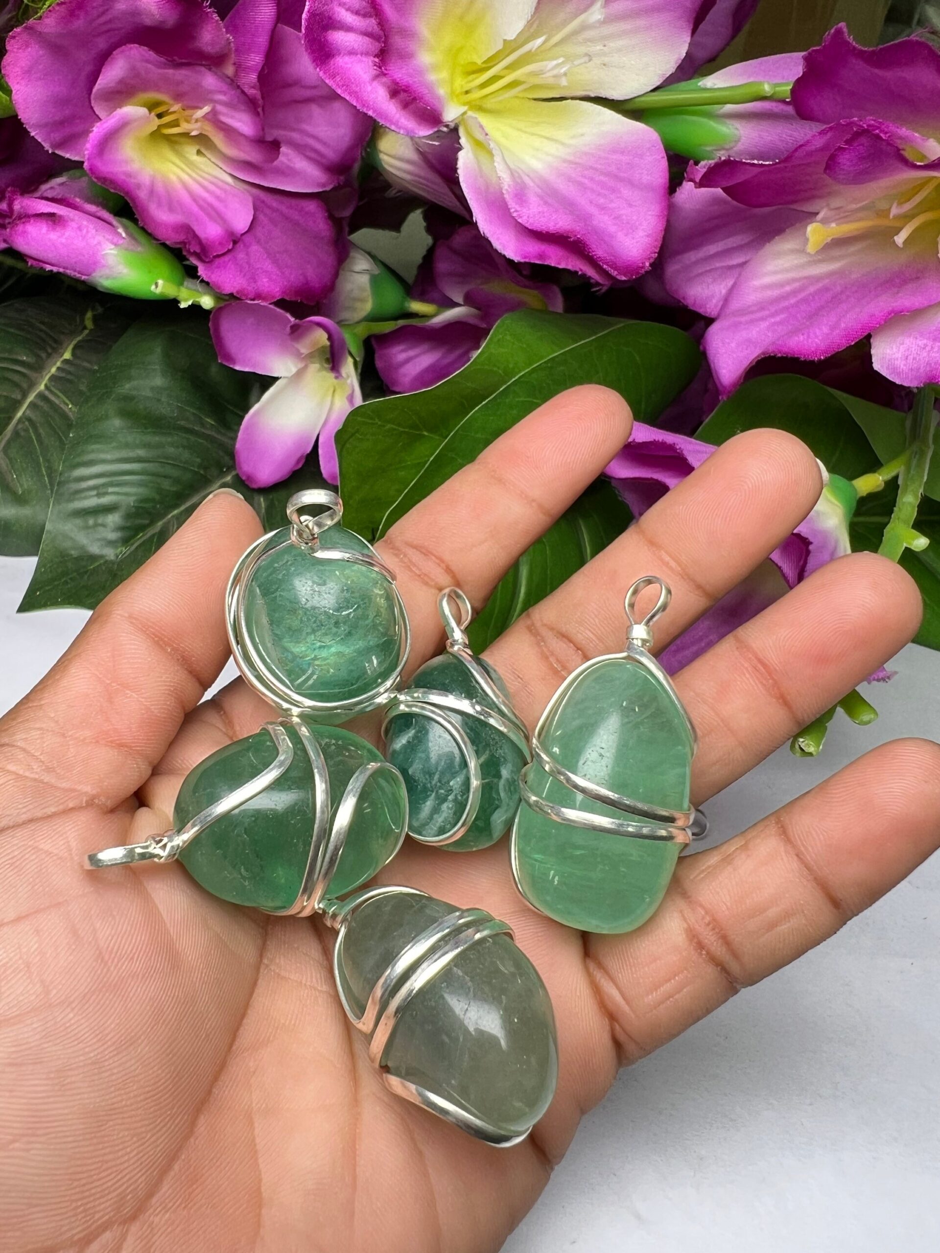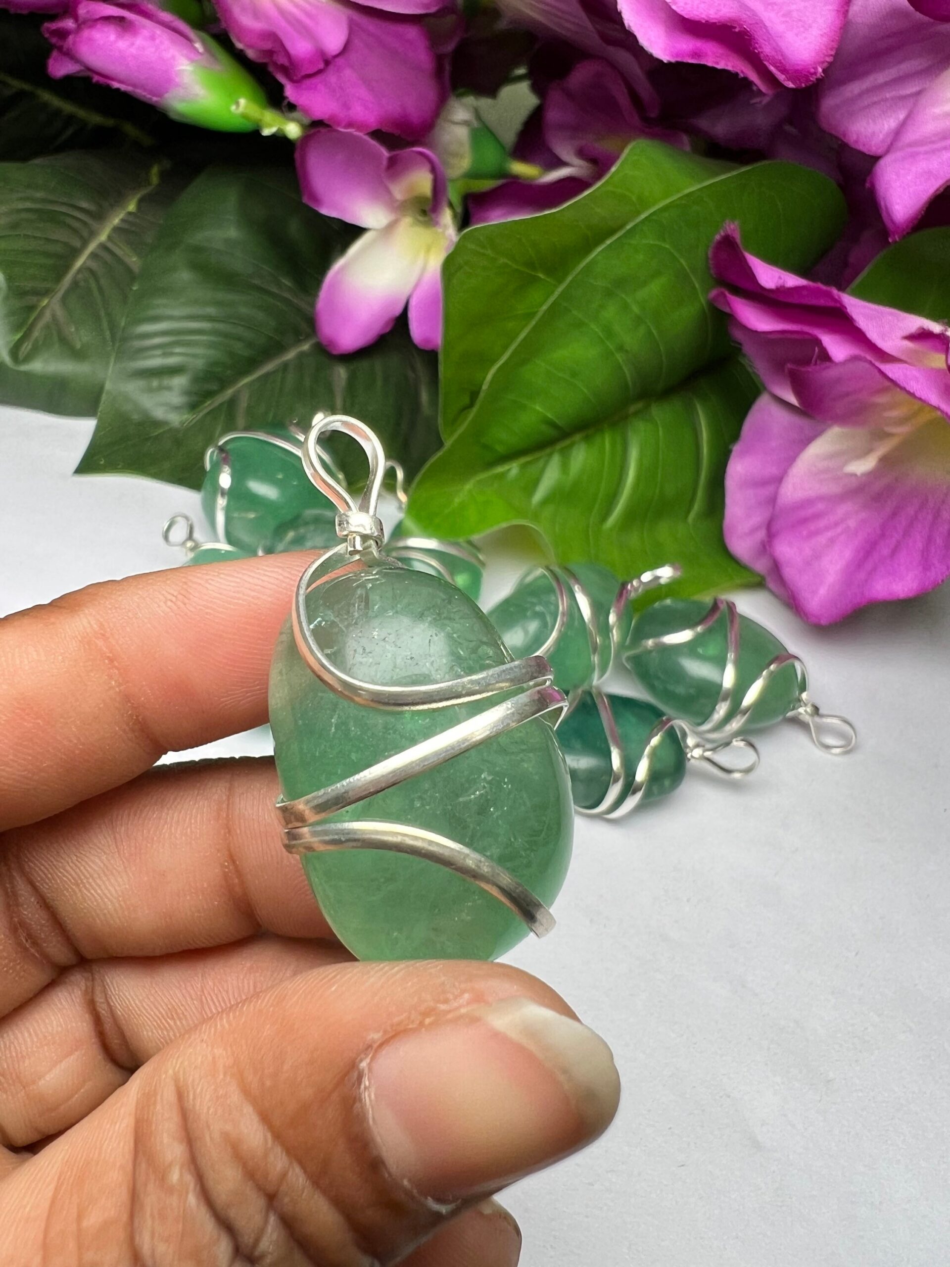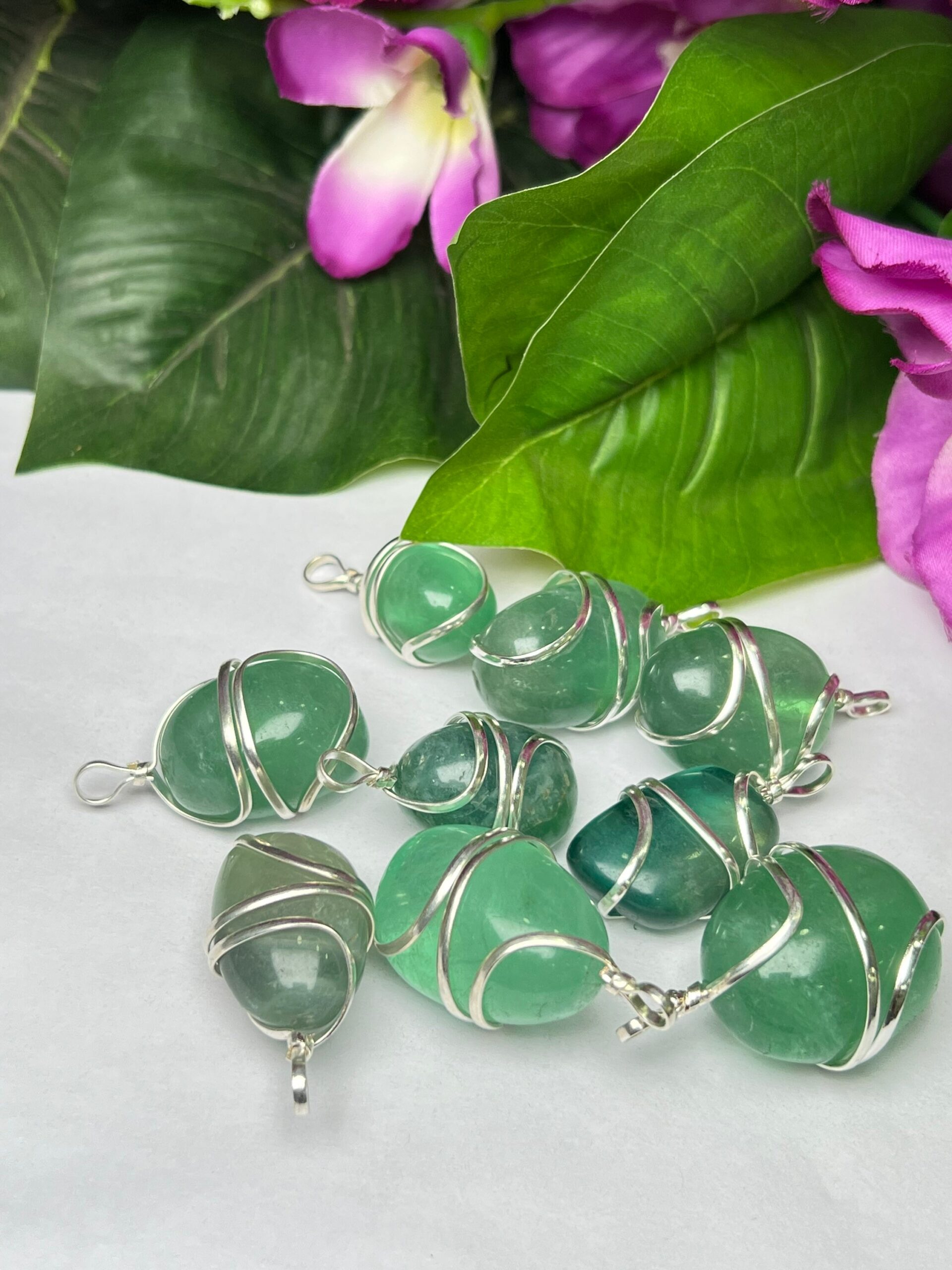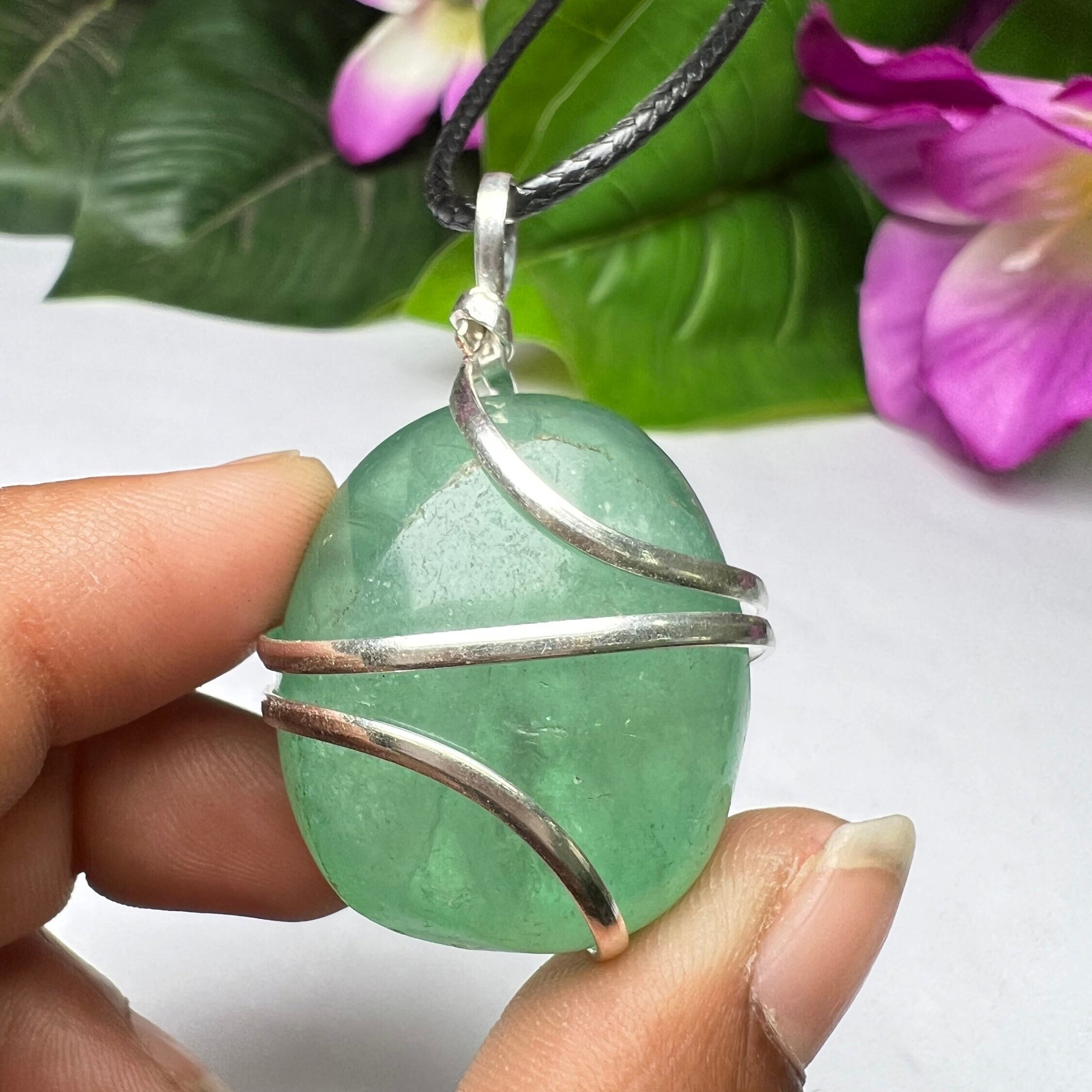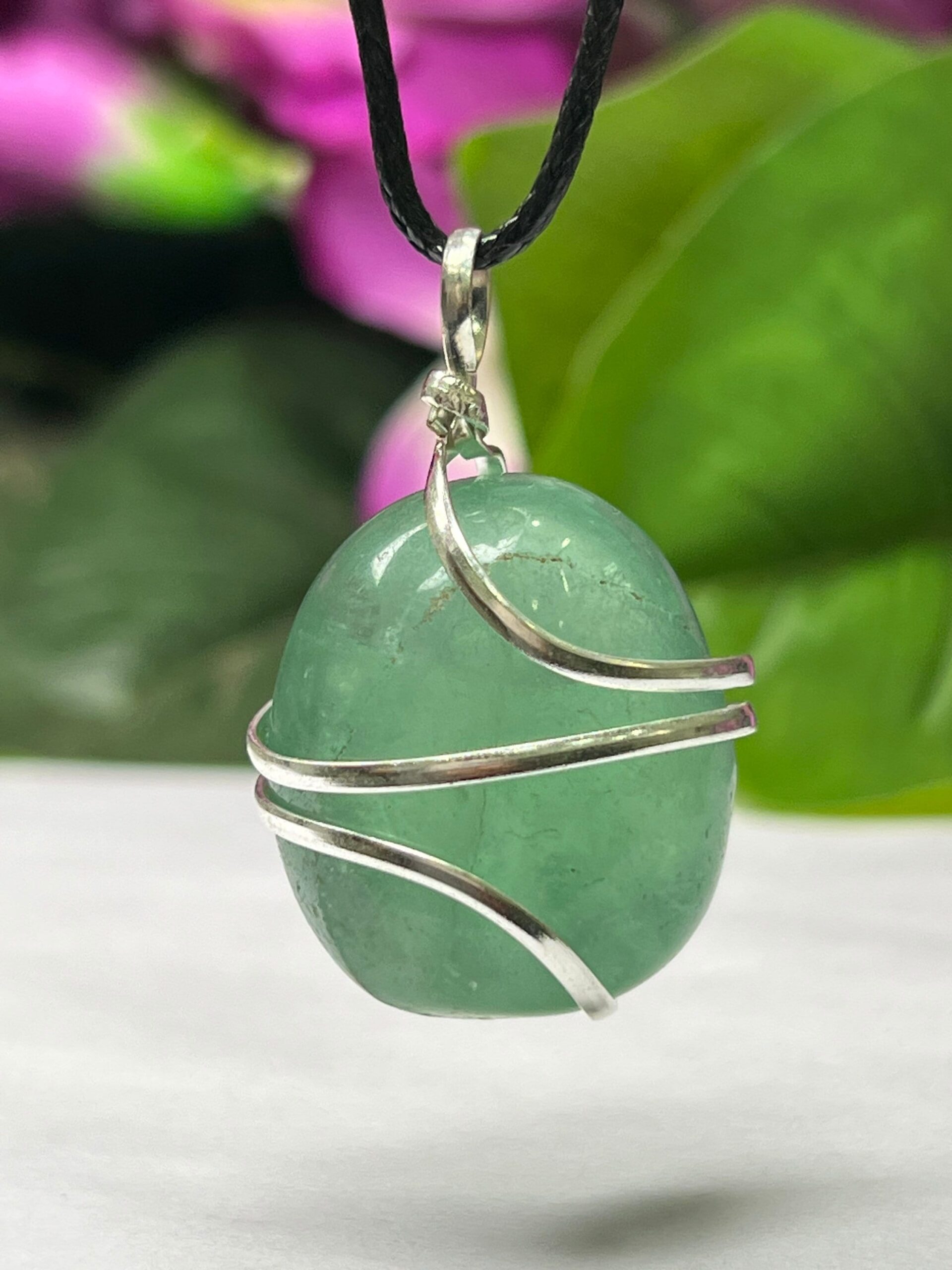 Wire Wrapped Green Fluorite Tumbled Stone Pendant Crystal Pendant, Tumbled Stone Necklace