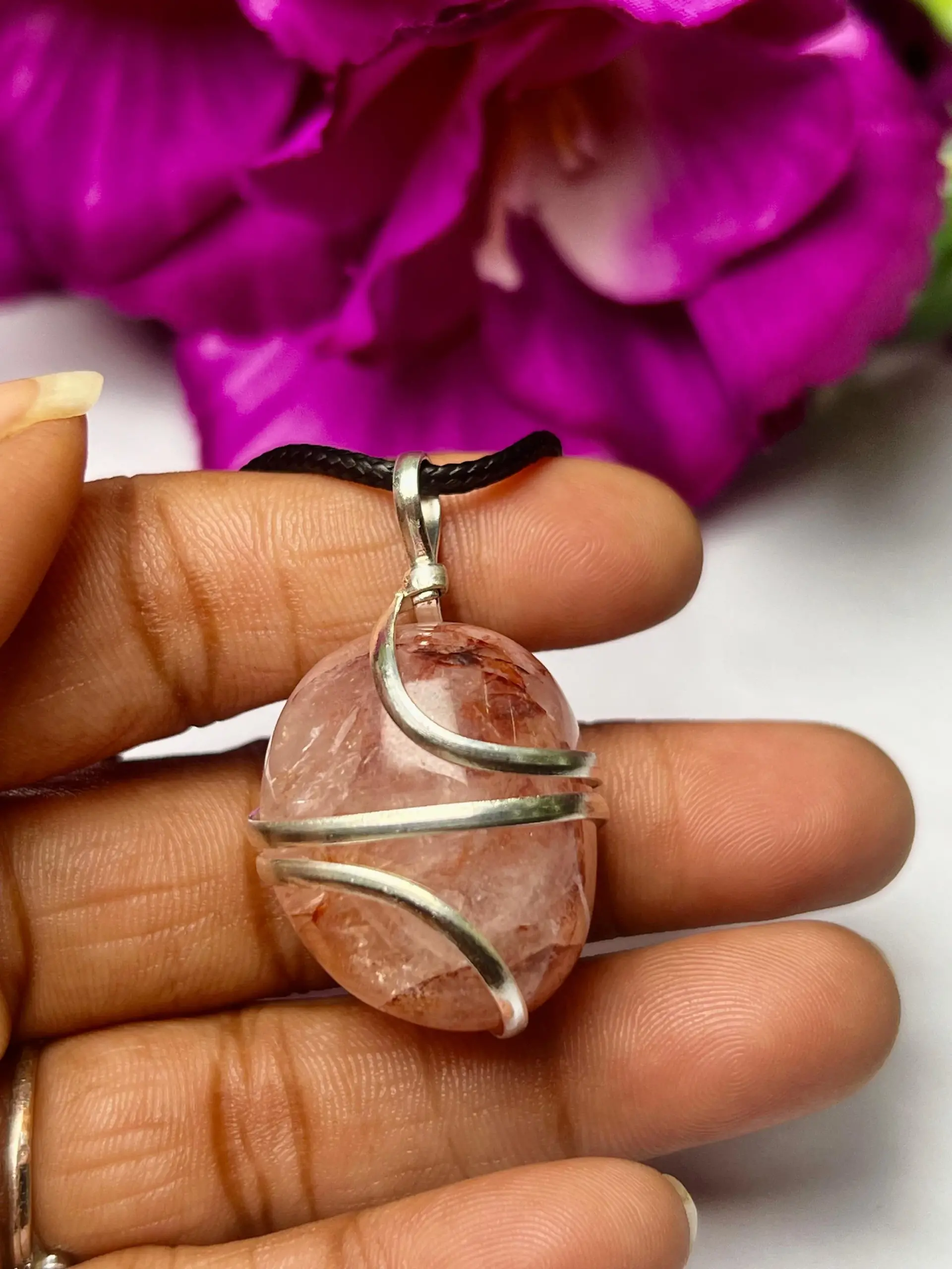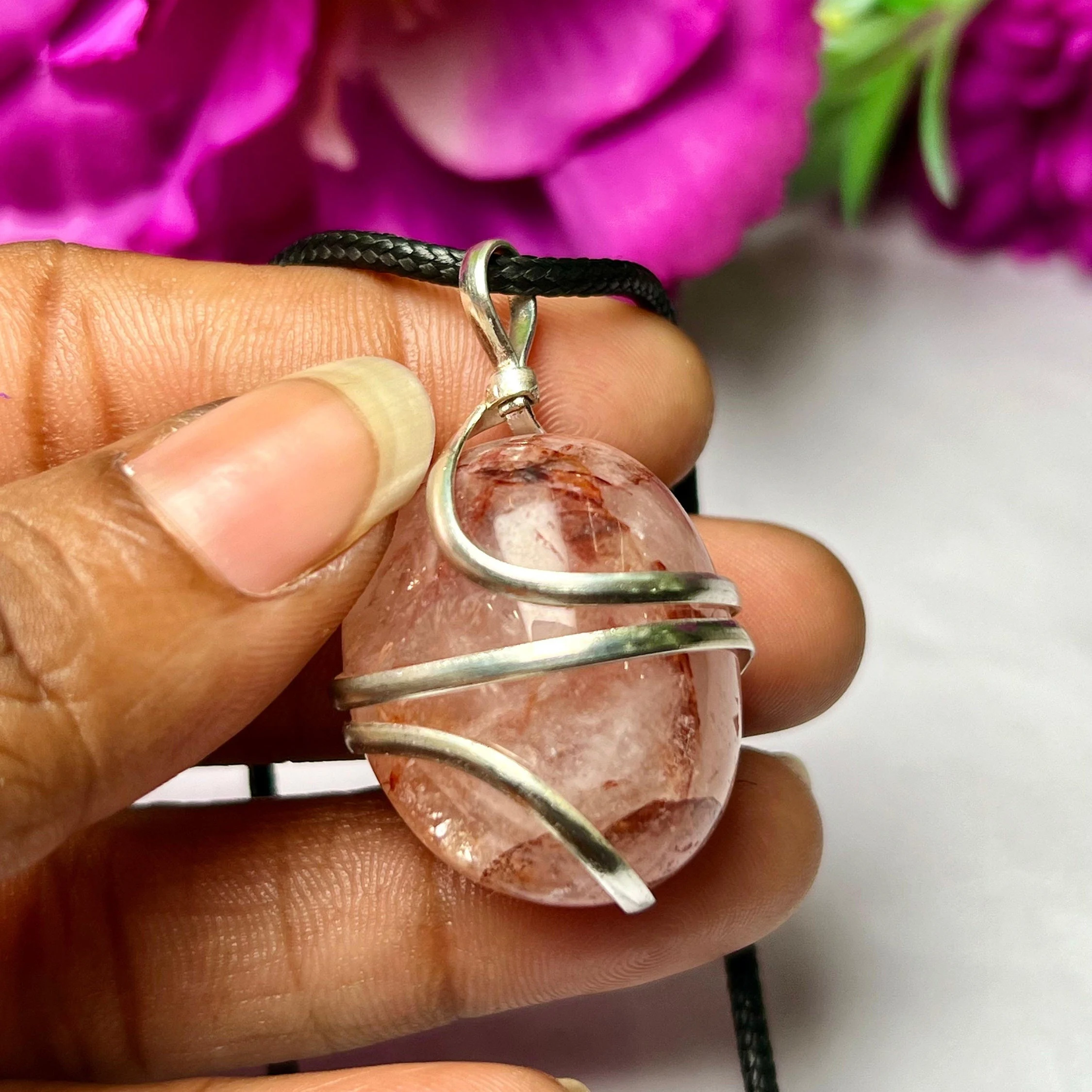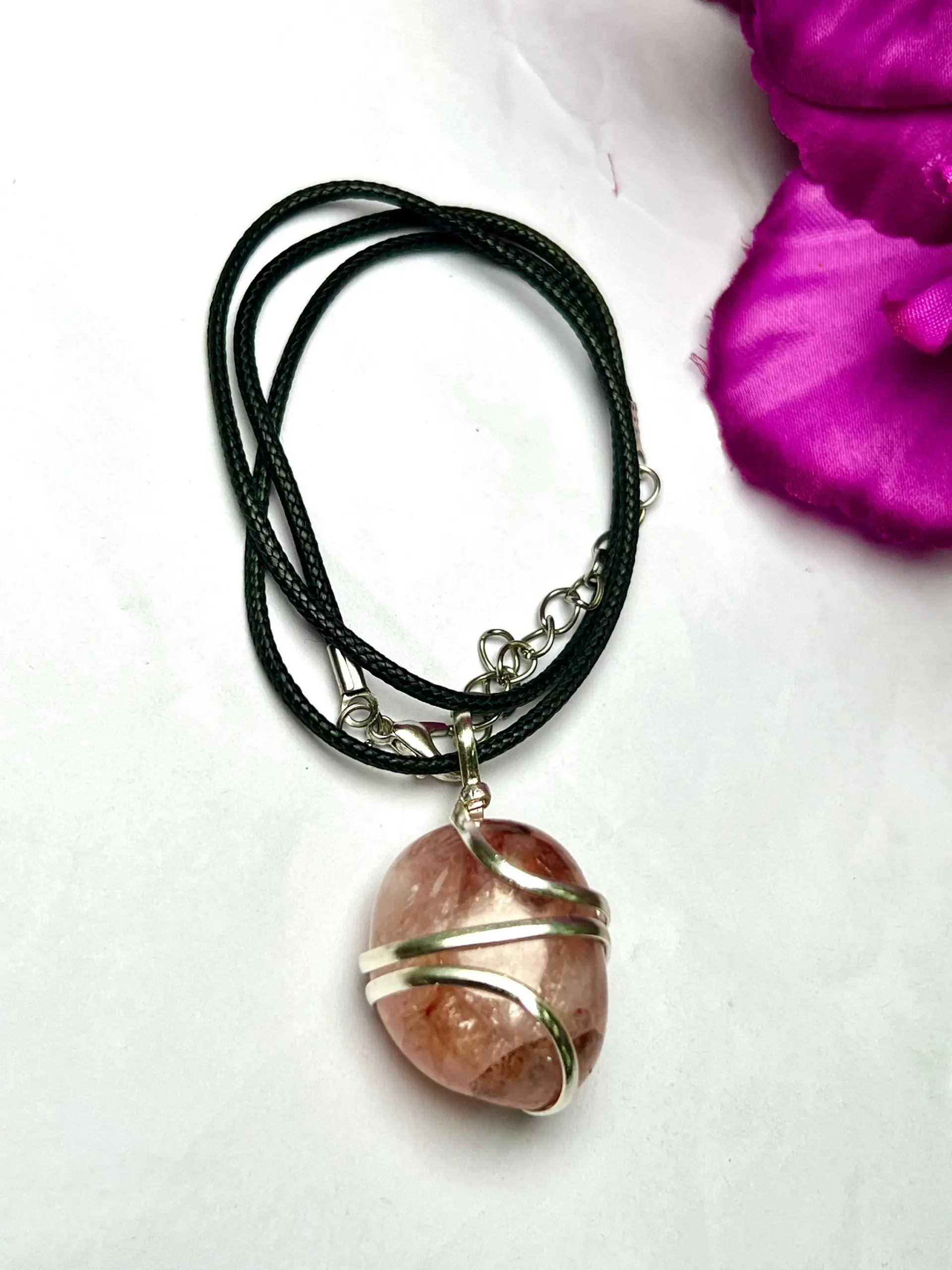 Wire Wrapped Lithium Quartz Tumbled Stone Pendant Crystal Pendant, Tumbled Stone Necklace