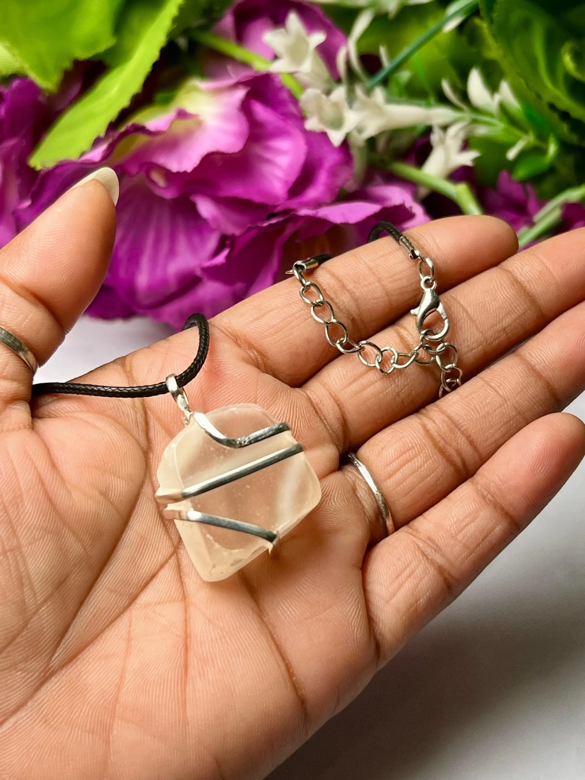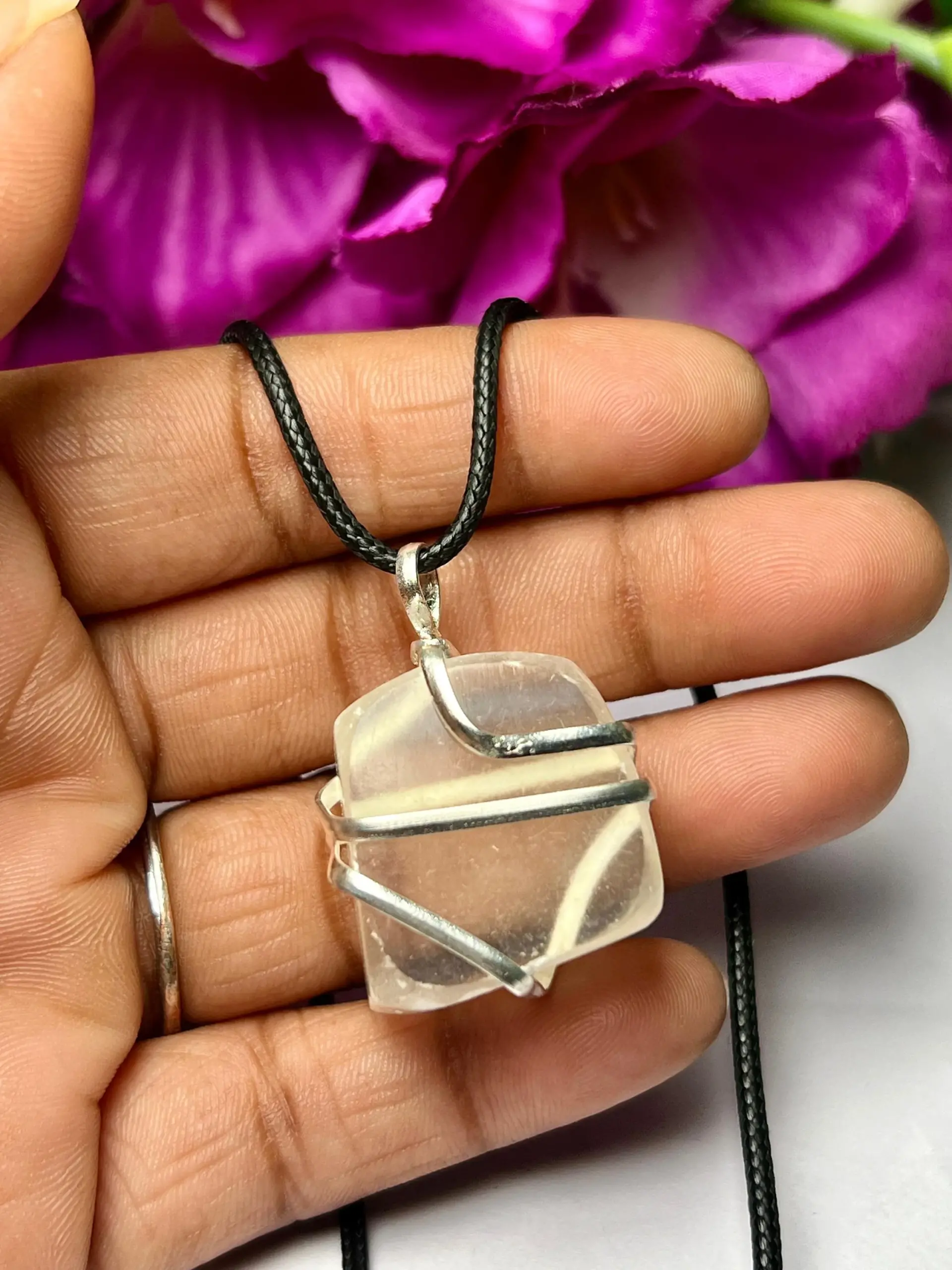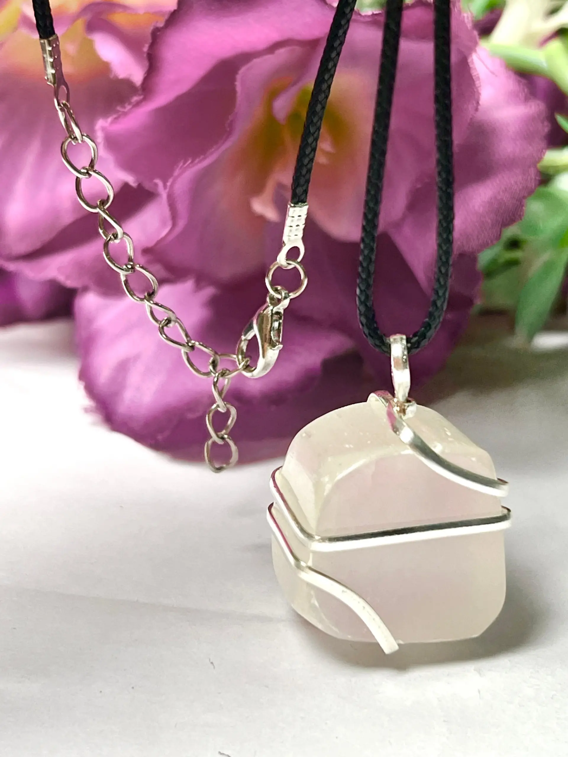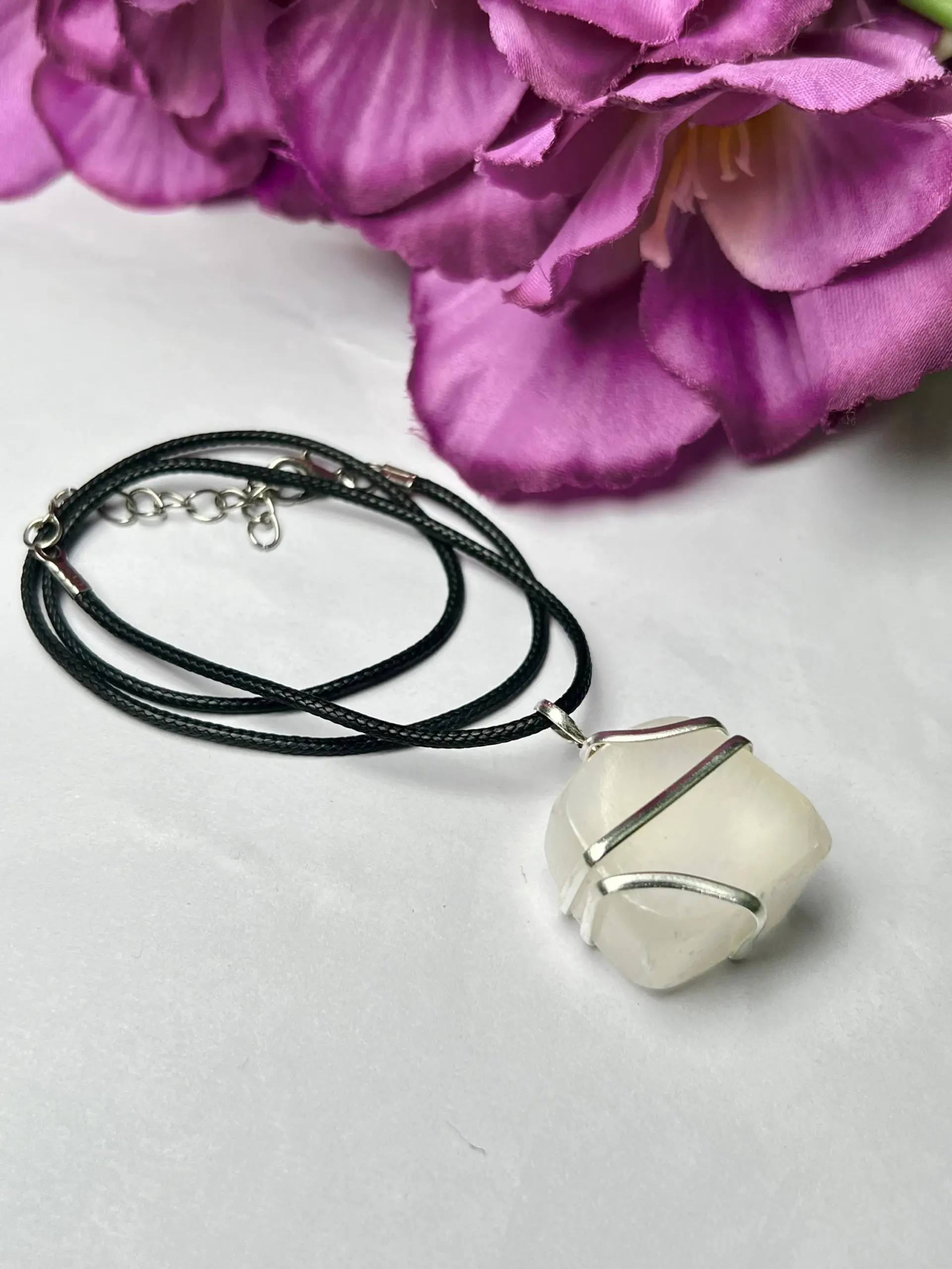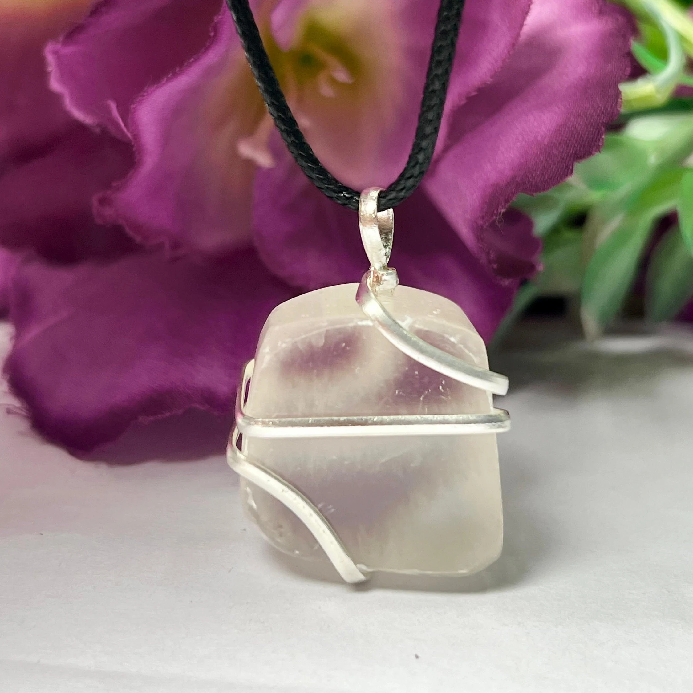 Wire Wrapped Selenite Tumbled Stone Pendant Crystal Pendant, Tumbled Stone Necklace
