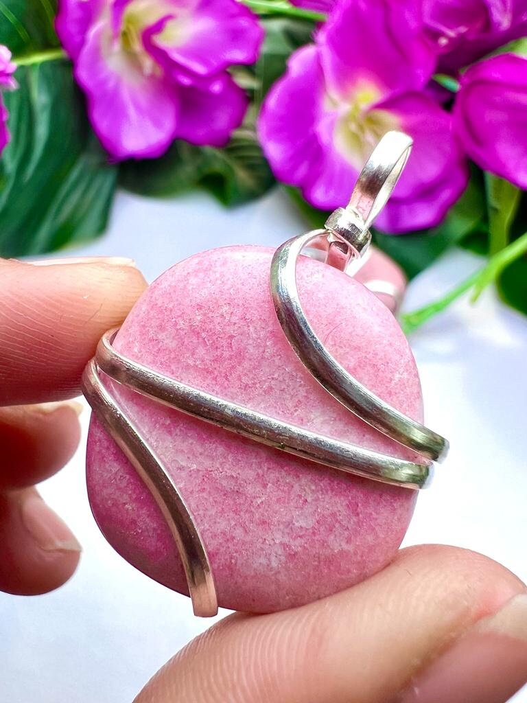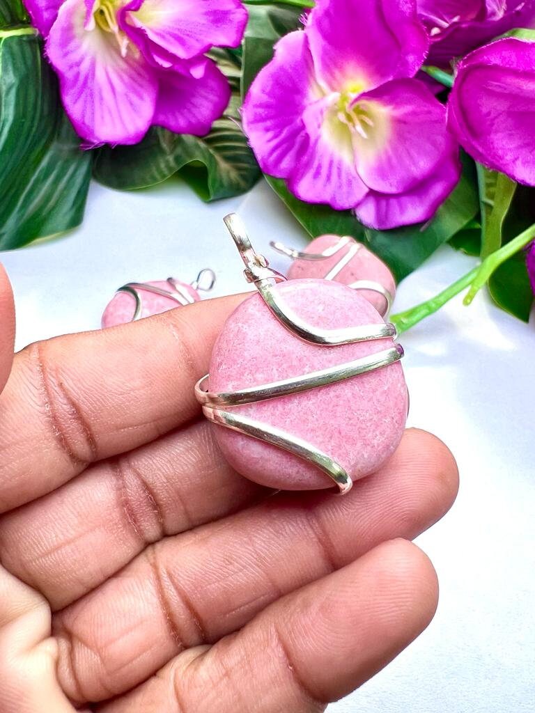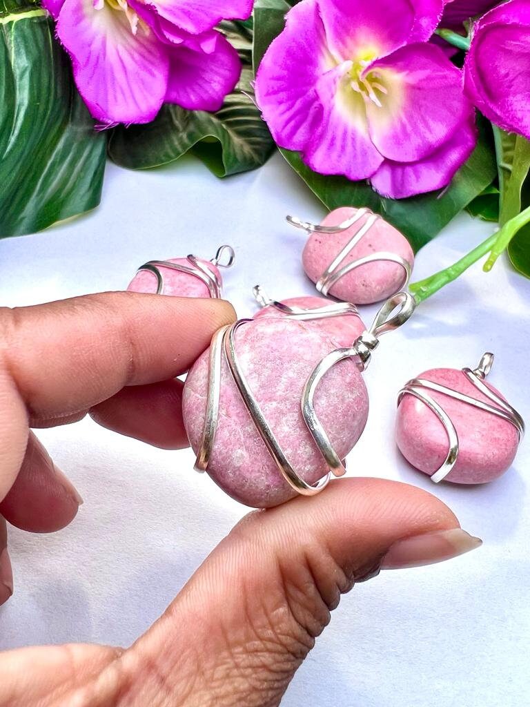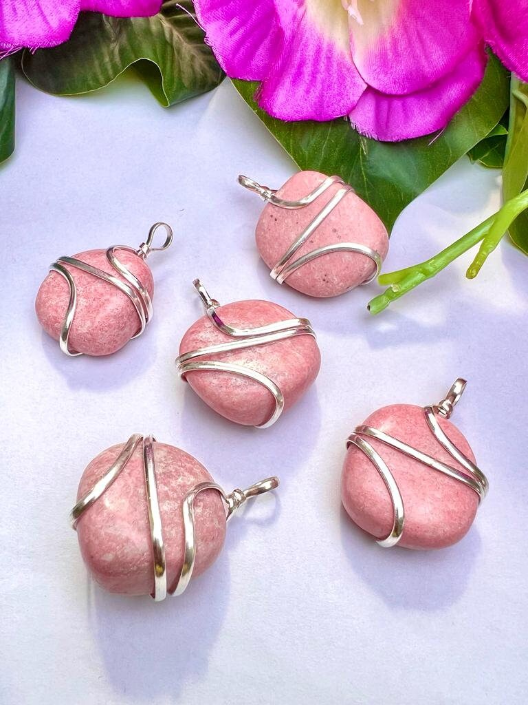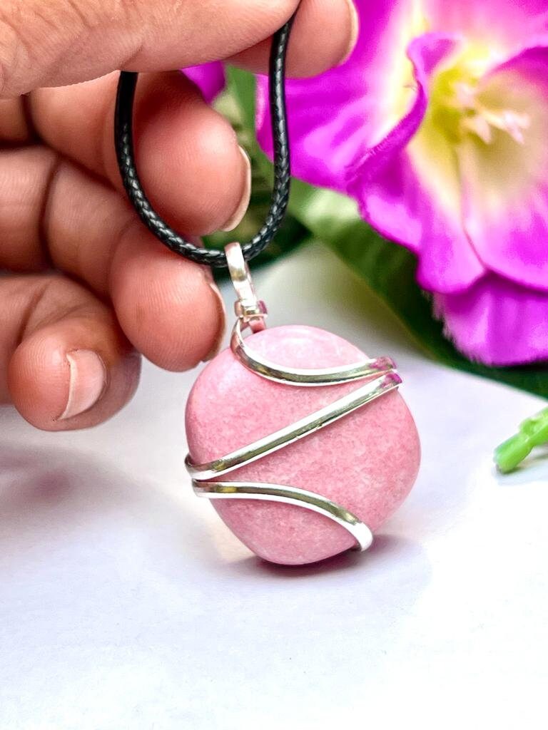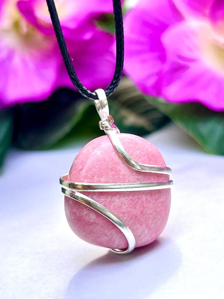 Wire Wrapped Thulite Tumbled Stone Pendant Crystal Pendant, Tumbled Stone Necklace