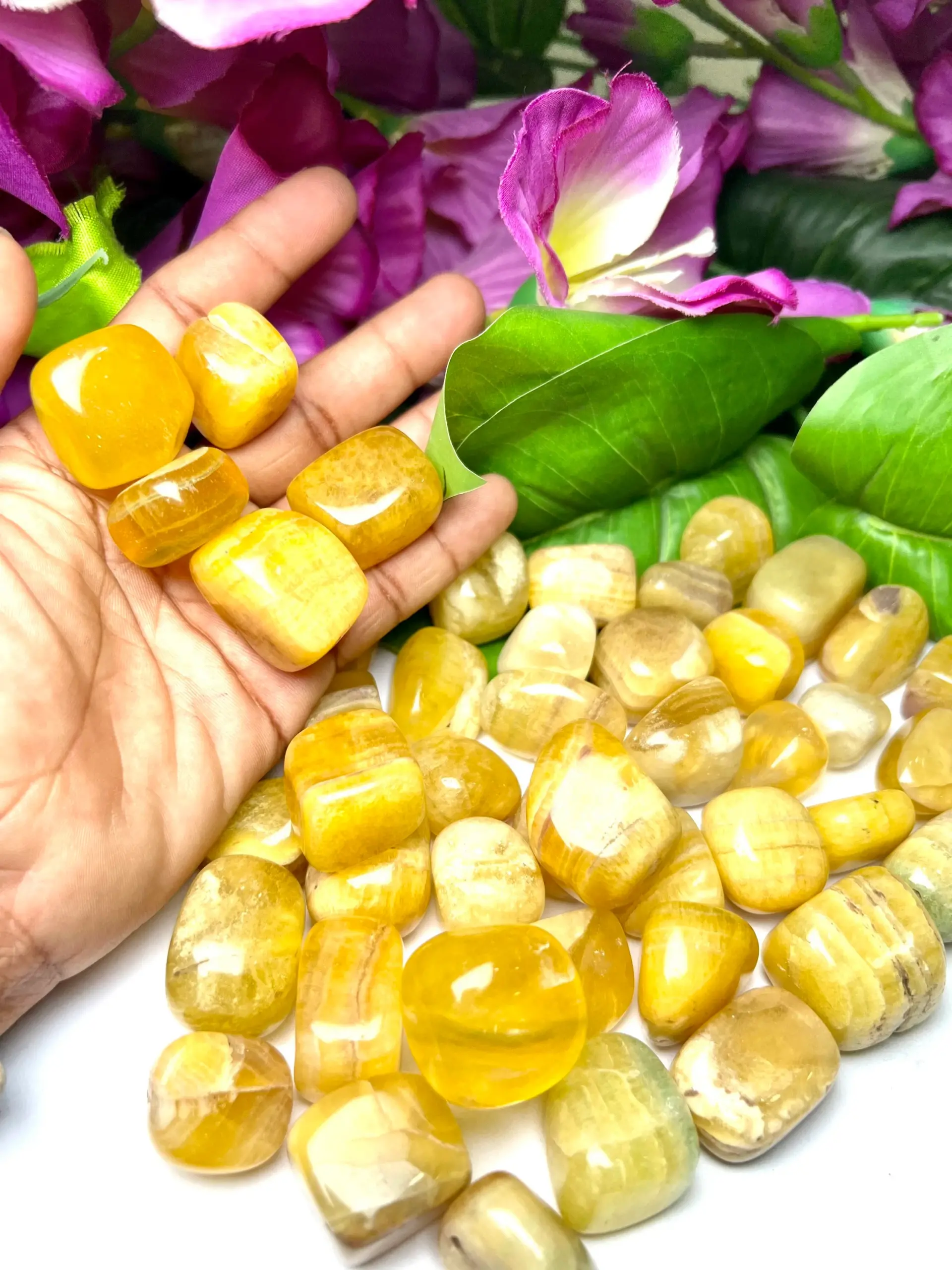 YELLOW Fluorite Tumbled Stones Healing Crystals in pack sizes of 1,3,5, and 10 Pieces Quality AAAAA +++++