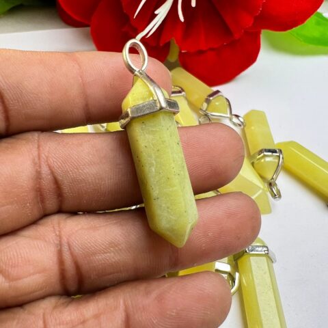 Serpentine Stone Healing Double Terminated Point Pendant With Silver Plated Bail Natural stone Pencil Point Pendant