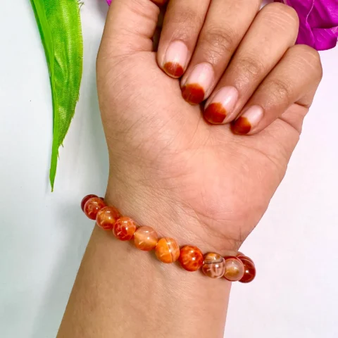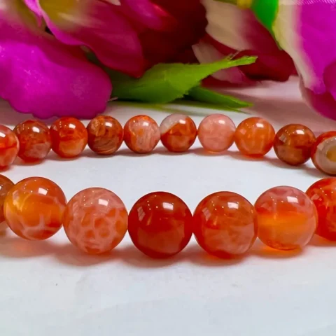 Fire Agate Stone Round Beaded Bracelet 8 MM Stretch Bracelet