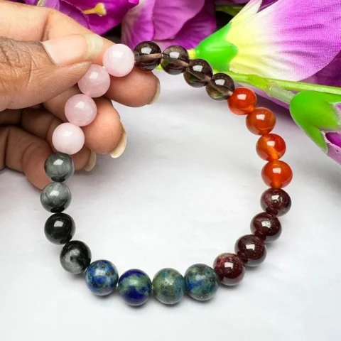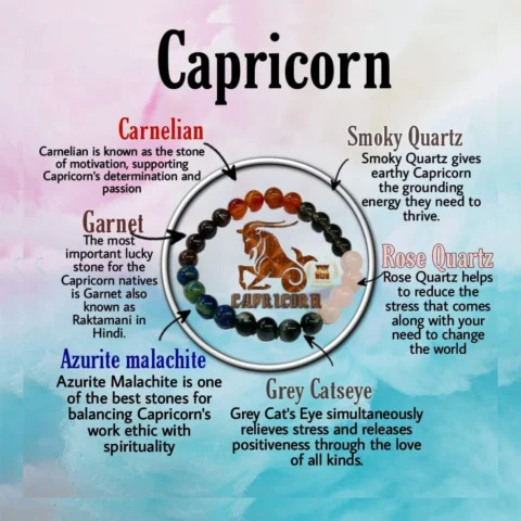 Capricorn Zodiac Sign Crystal Stone Bracelet 8 mm Rose Quartz , Smoky Quartz , Carnelian ,Azurite-malachite , Garnet , Gray Cat’s Eye