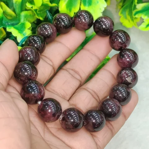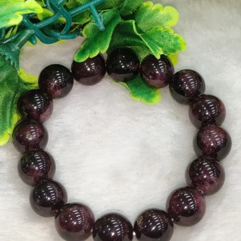 Garnet Stone Bracelet Round Beaded Bracelet 12 MM Stretch Bracelet